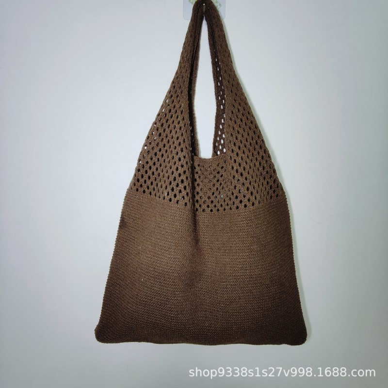 • シンプルレトロ中空バッグニットショルダーバッグレディースベストバッグおしゃれトートバッグ万能バッグ