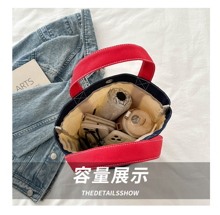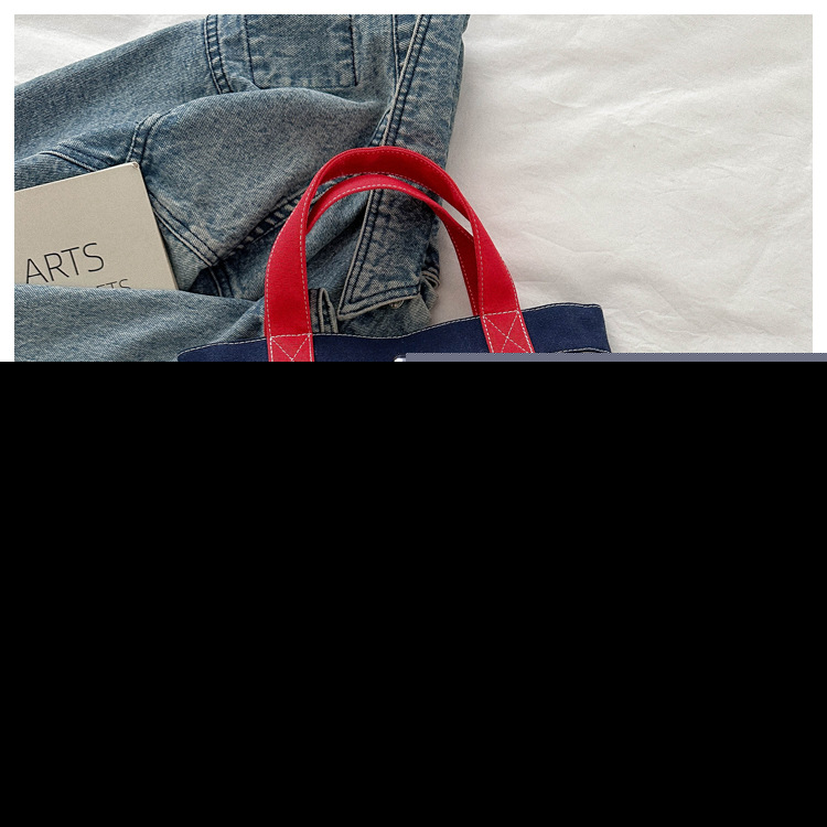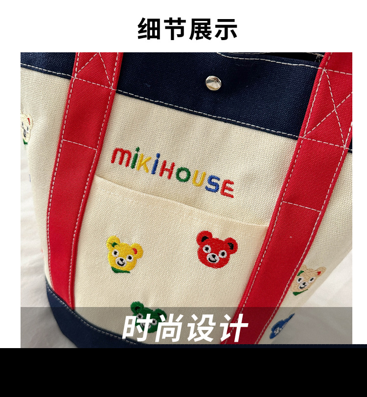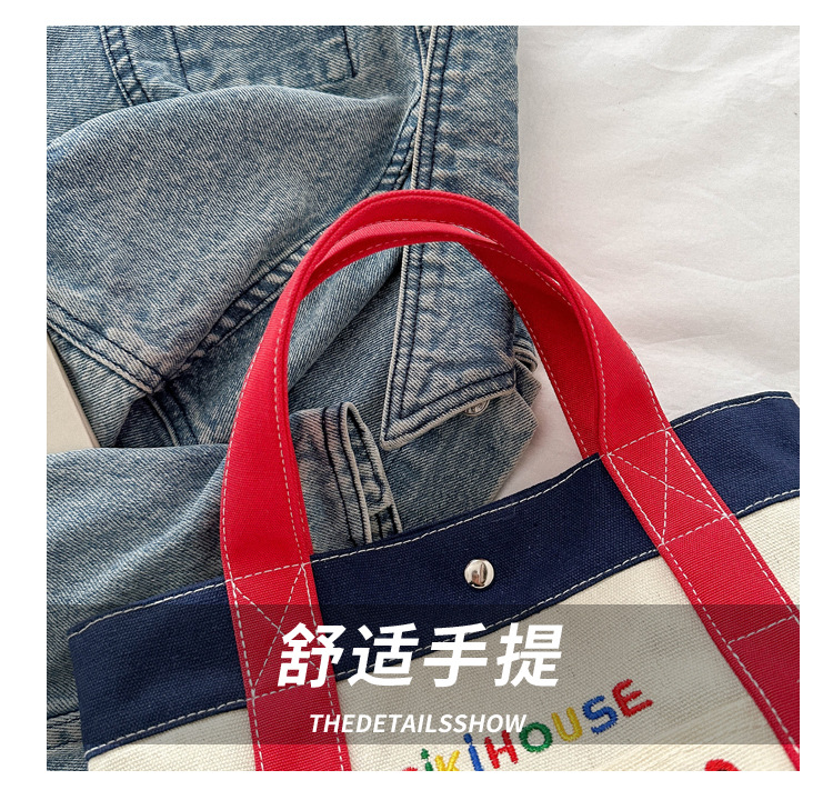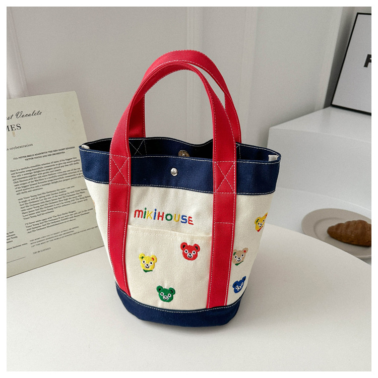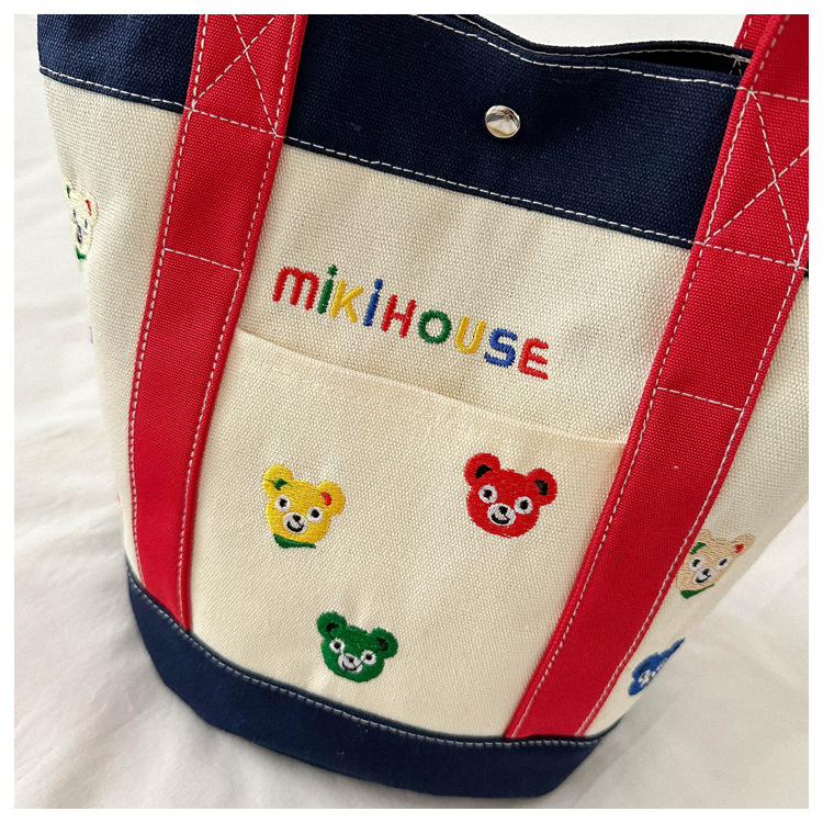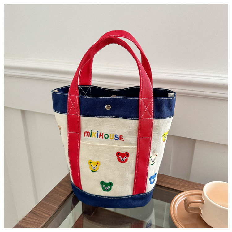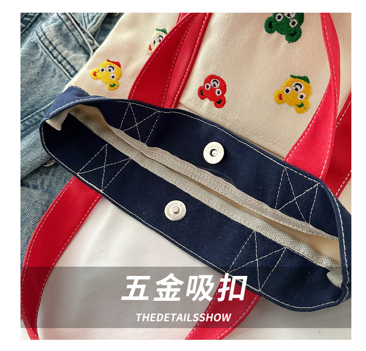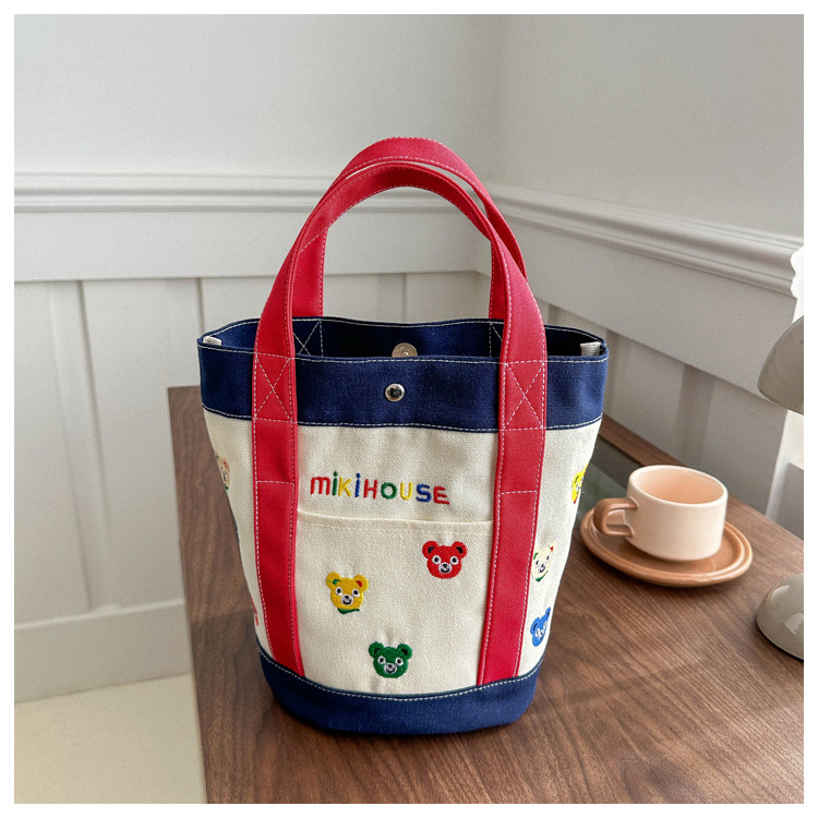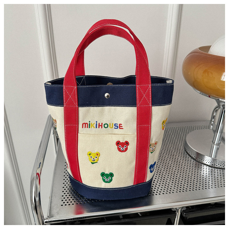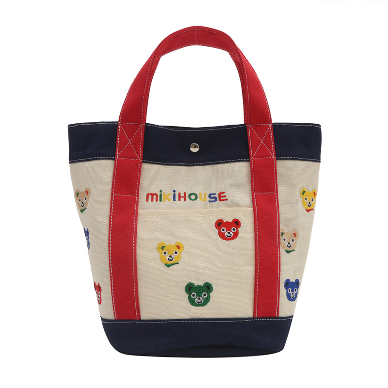 • カジュアルシンプルなキャンバスバッグ新しいレディースバッグ漫画刺繍動物レターバッグ和風カラーマッチングハンドバッグランチバッグ