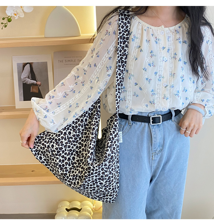 • 韓国のキャンバスバッグヒョウ柄花柄ショルダーバッグ布バッグ
