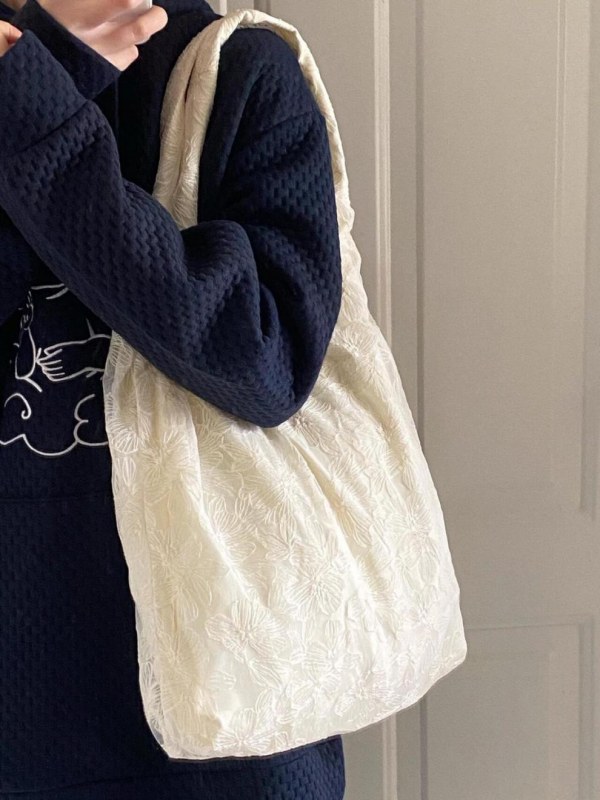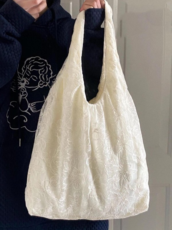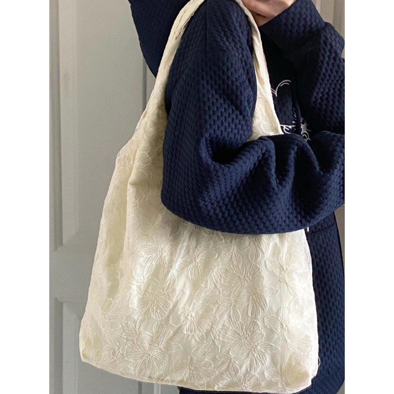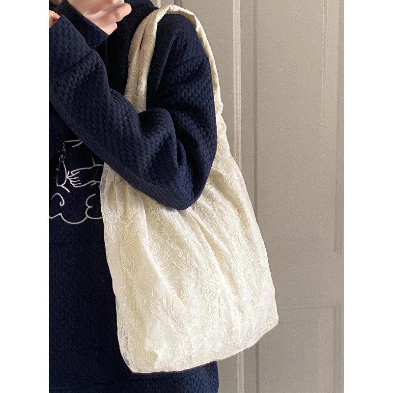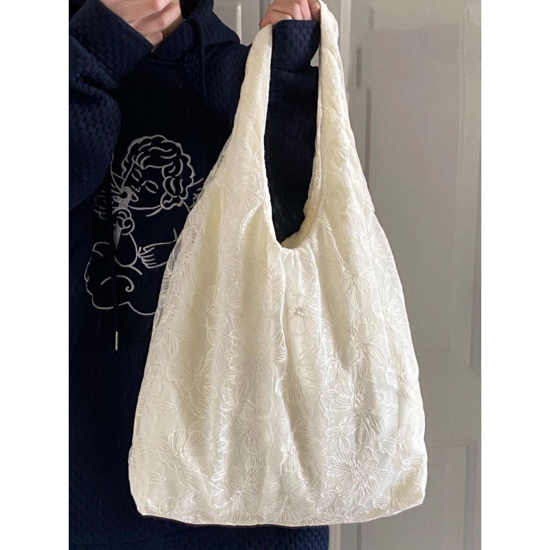 • トートバッグ女性のための 2024 春夏新作デザインテクスチャニッチ大容量通勤レース生地シングルショルダークロスボディバッグ