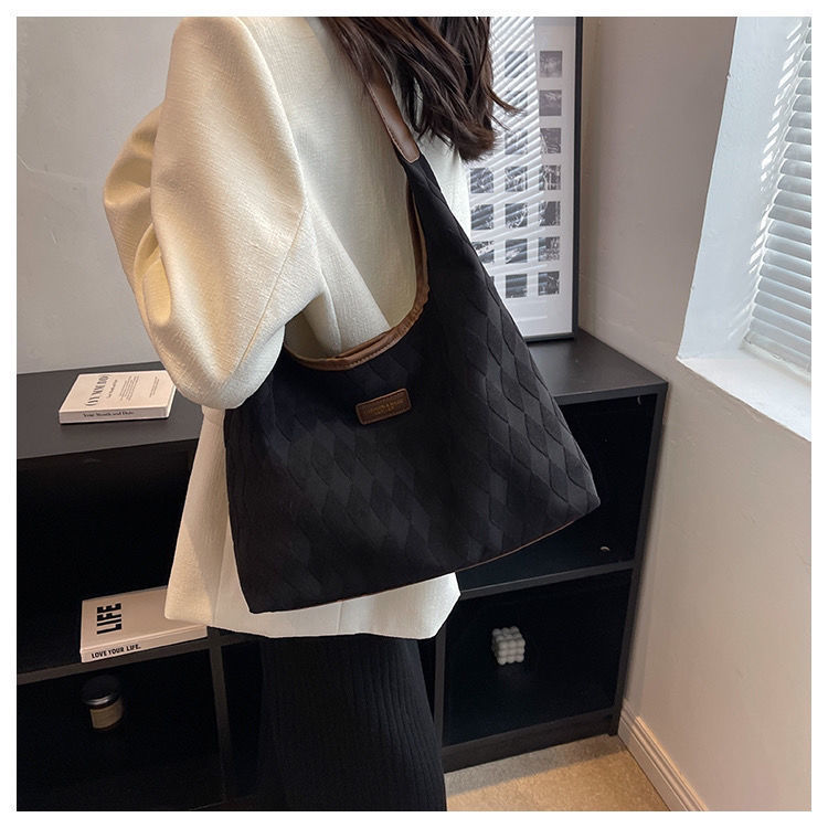 • 多用途ファッションバッグ通勤バッグ 2024 新ファッションダイヤモンドキャンバスショルダーバッグ大容量脇の下トートバッグ