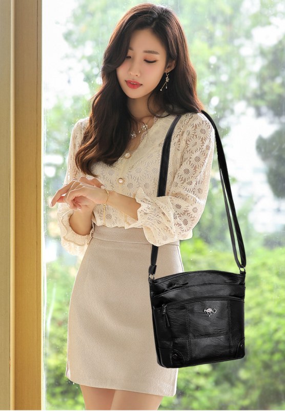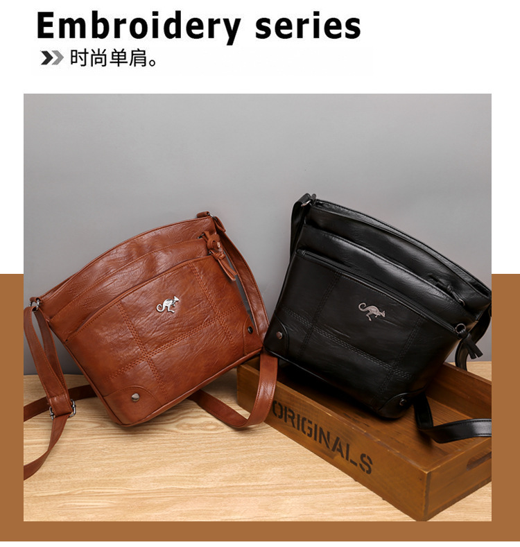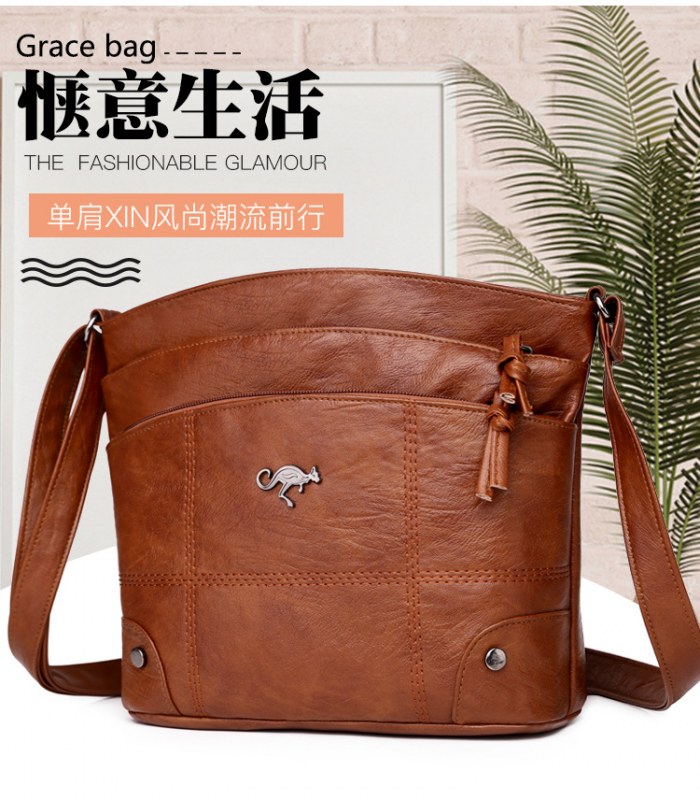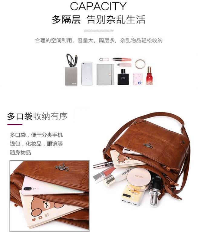• ソフトレザーの質感のバッグの女性のクロスボディ新しいファッションショルダーバッグシンプルなヨーロッパとアメリカのトレンディなレトロマルチポケット大容量