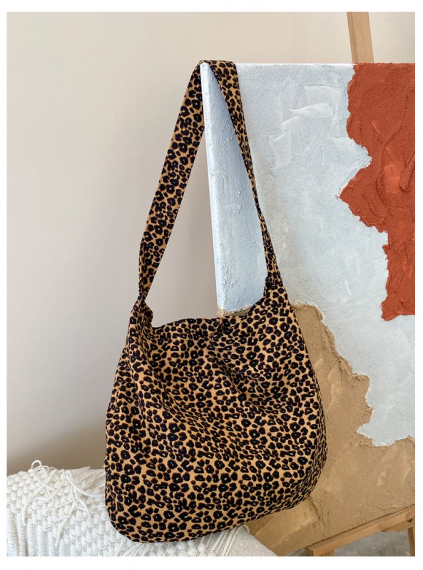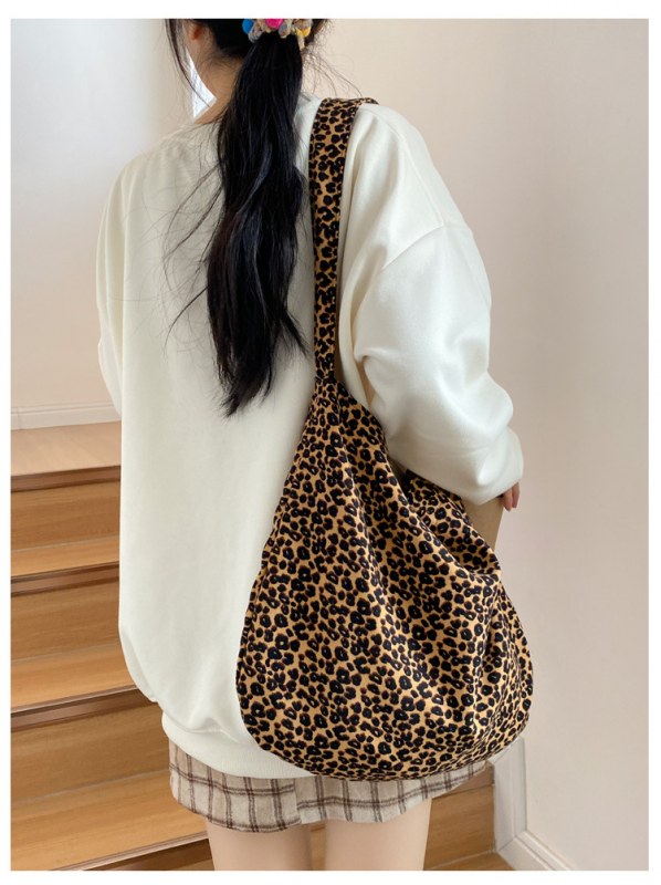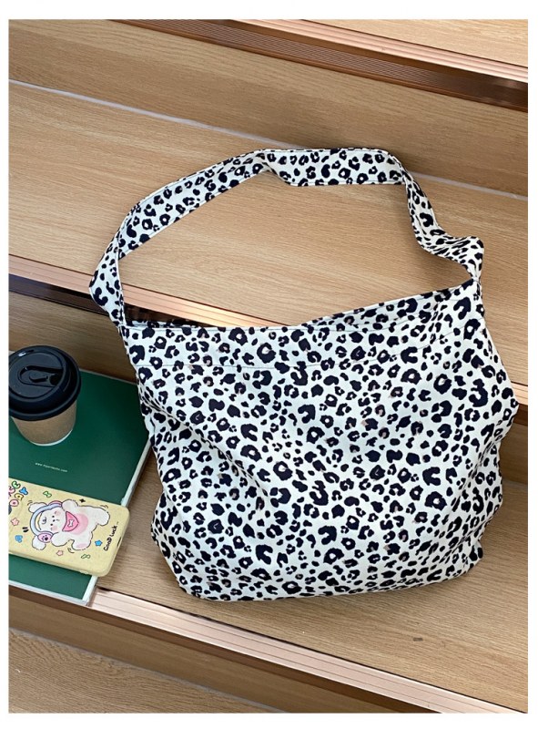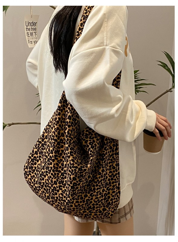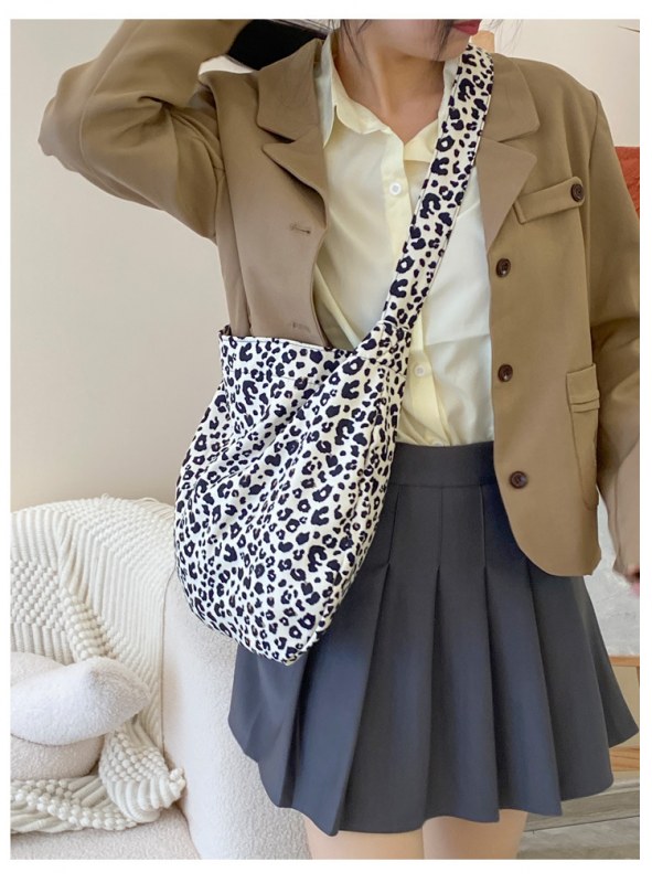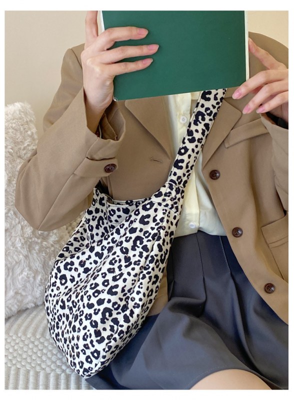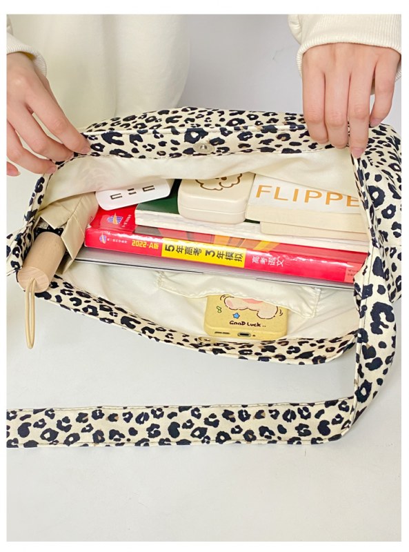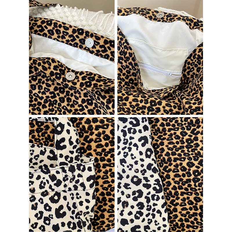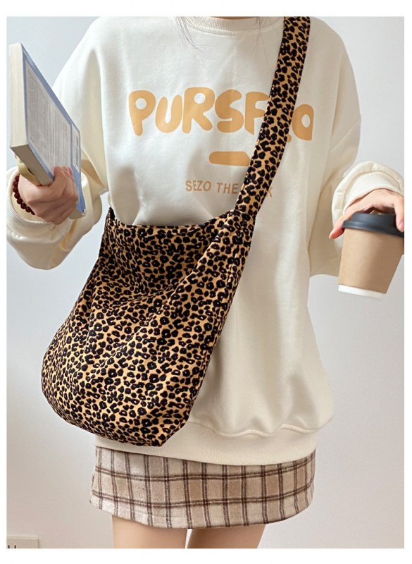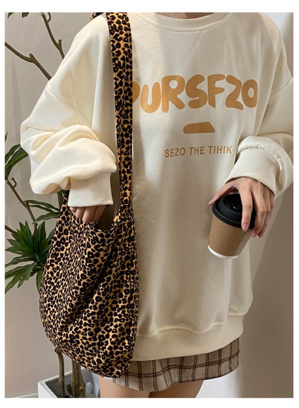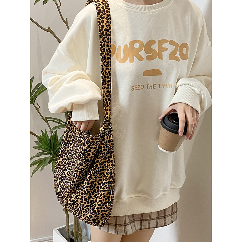 • 日本と韓国のヒョウ柄クロスボディバッグ、ファッショナブルなショルダーキャンバスバッグ、女子学生向けの多目的布バッグ
