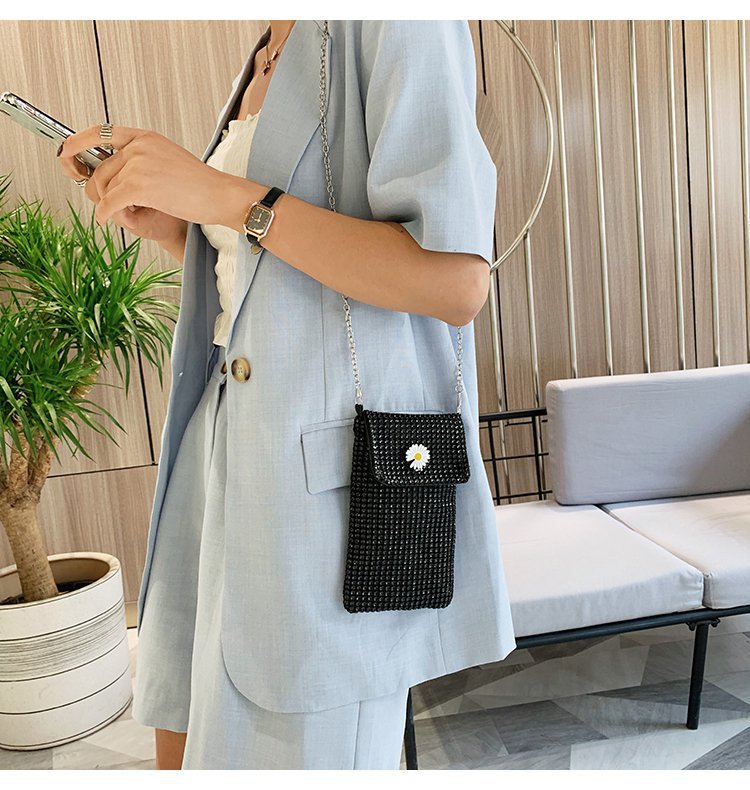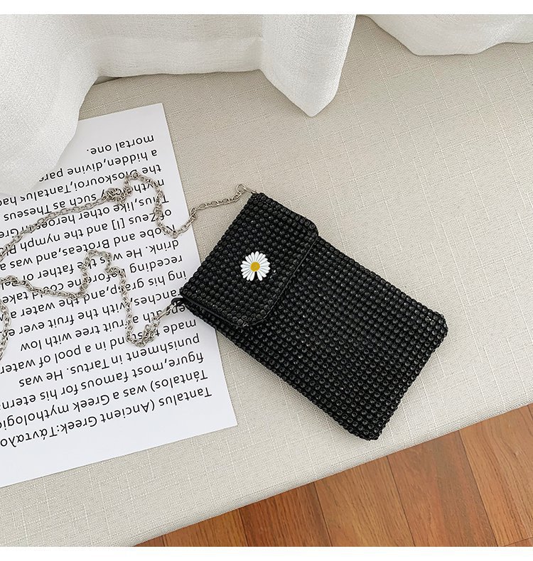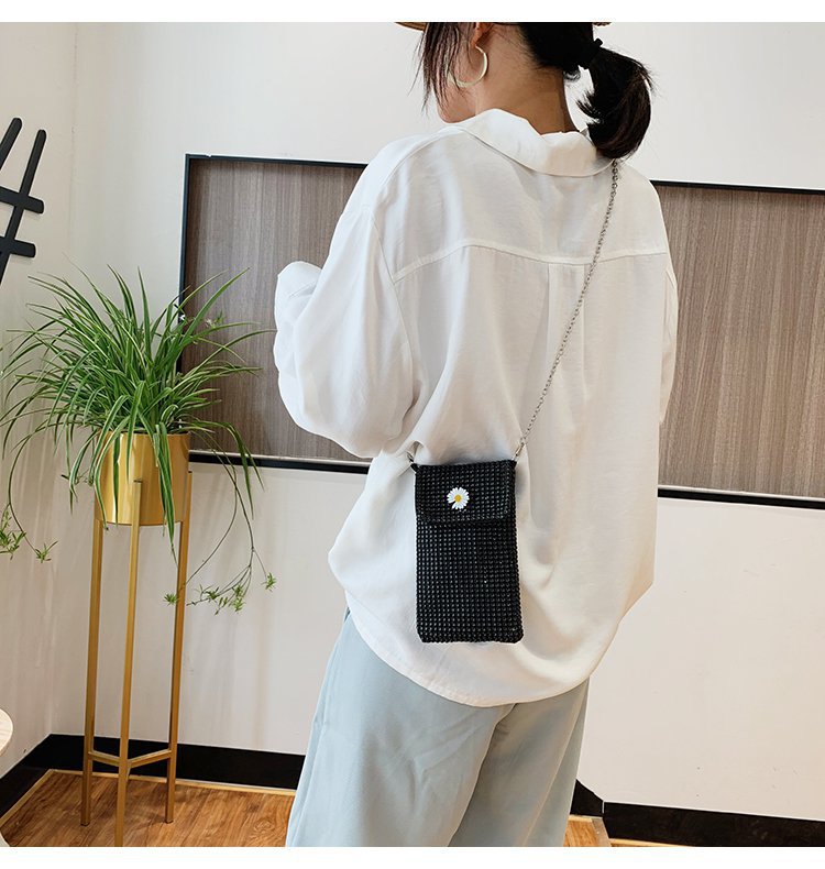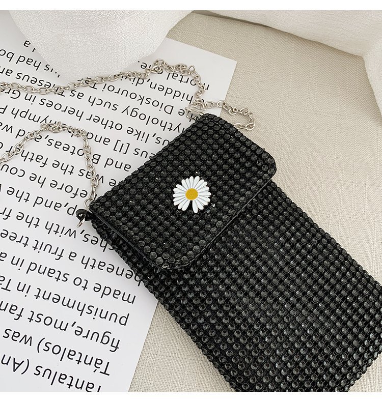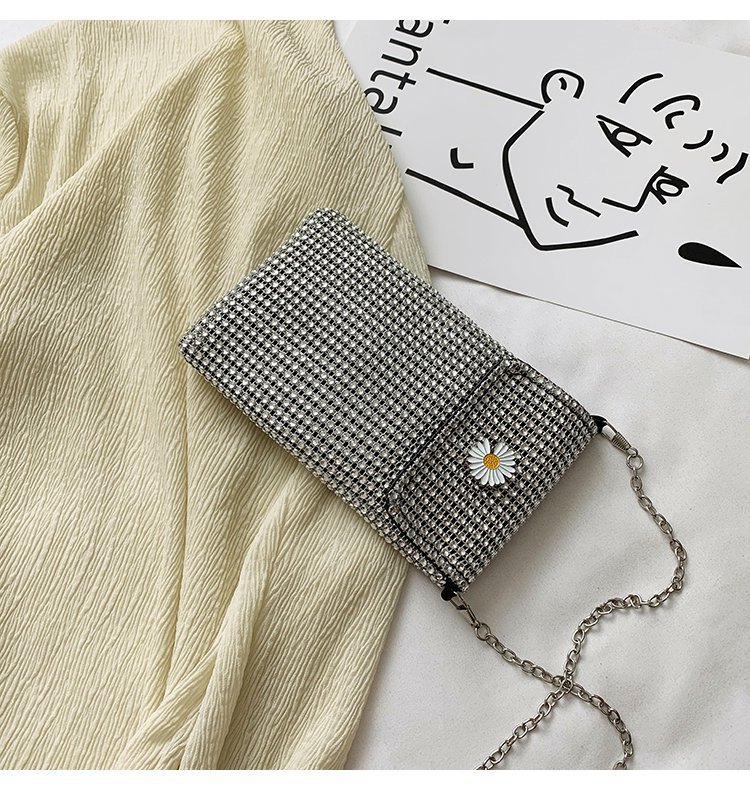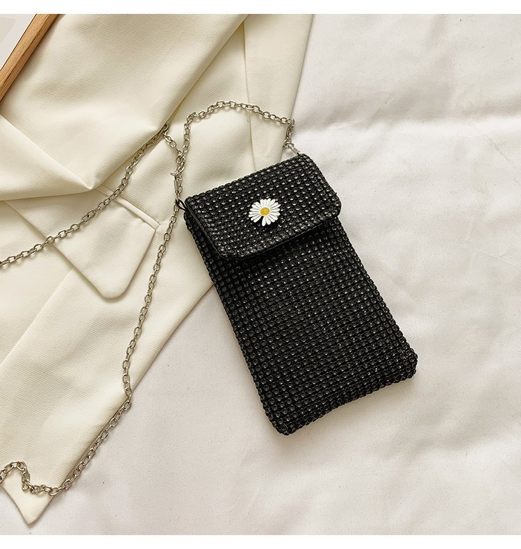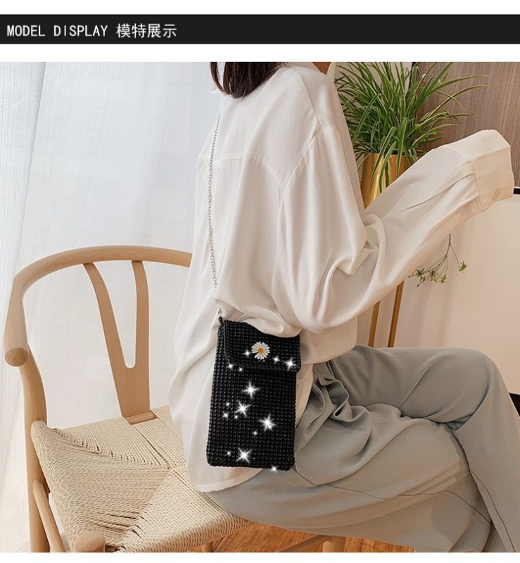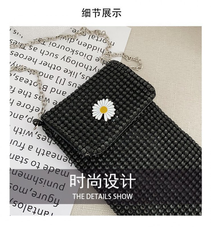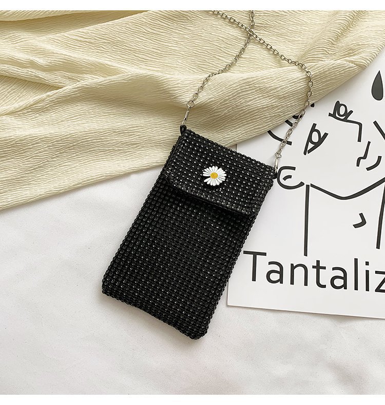 • ダイヤモンドと輝くチェーンショルダークロスボディバッグがいっぱいのカジュアルストリート、トレンディでファッショナブルで光沢のあるパーソナライズされた携帯電話バッグ