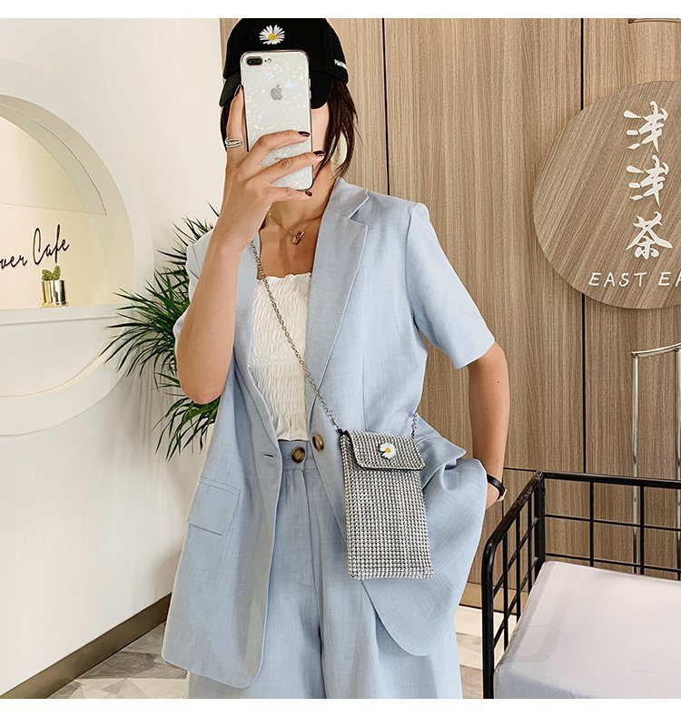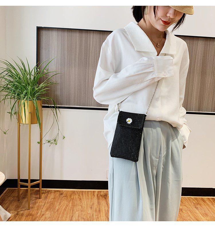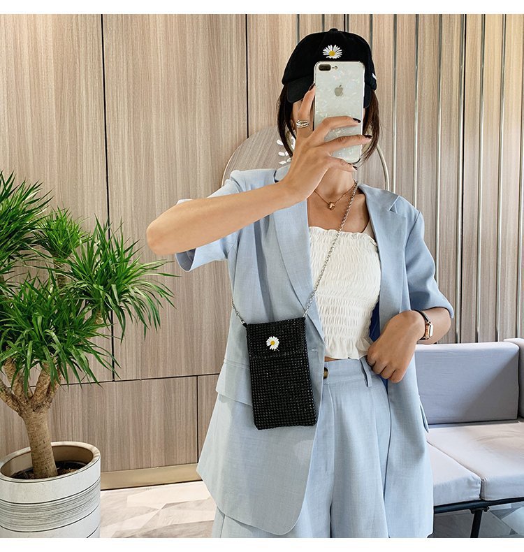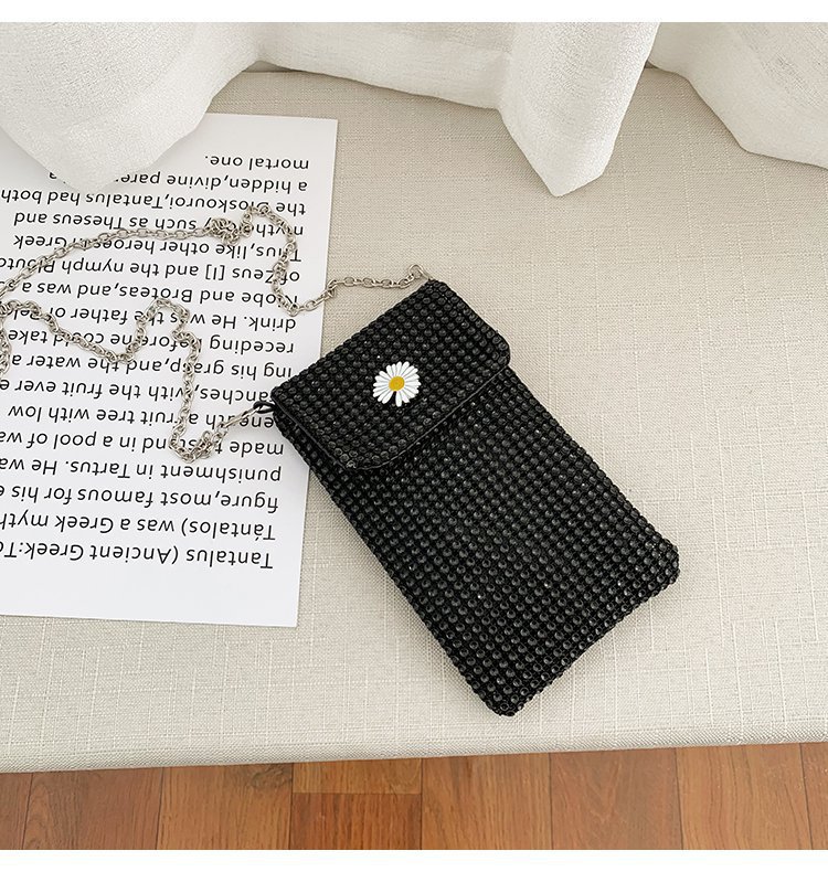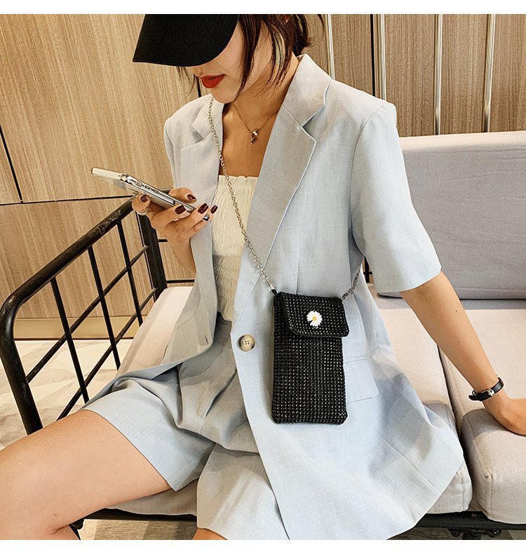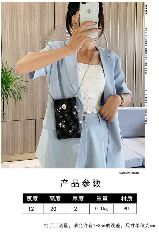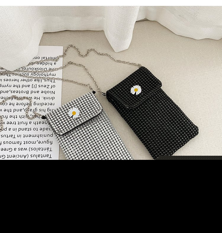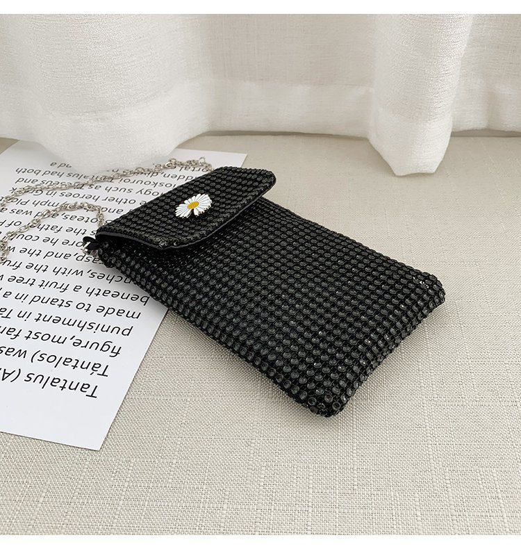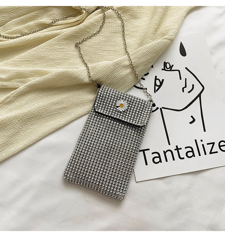 • ダイヤモンドと輝くチェーンショルダークロスボディバッグがいっぱいのカジュアルストリート、トレンディでファッショナブルで光沢のあるパーソナライズされた携帯電話バッグ