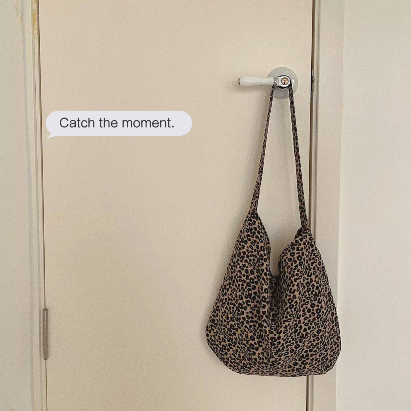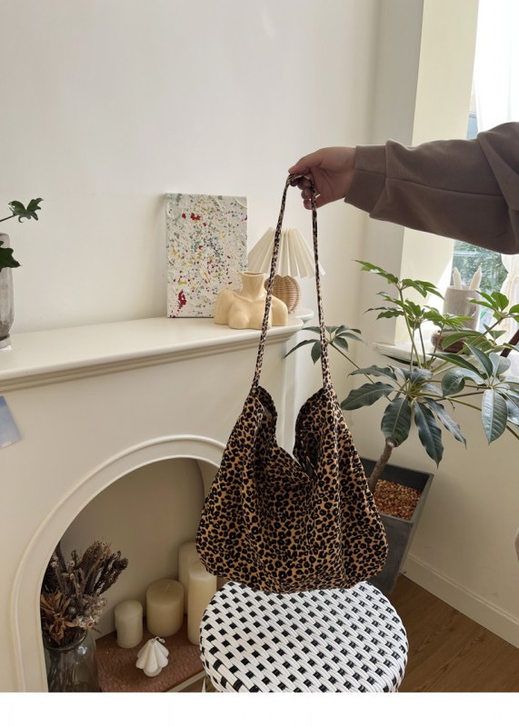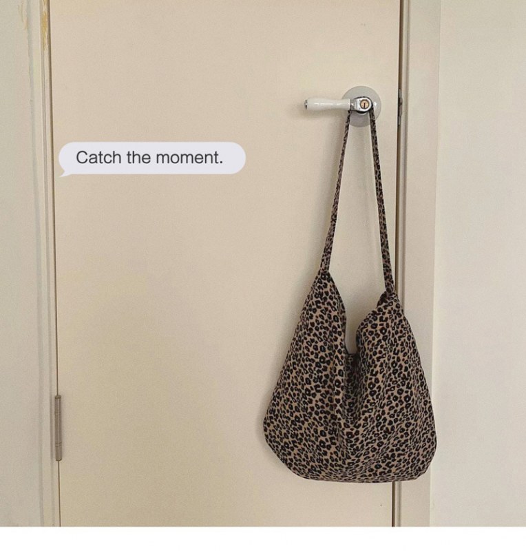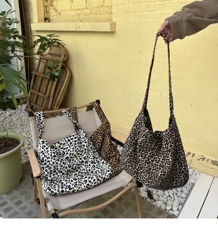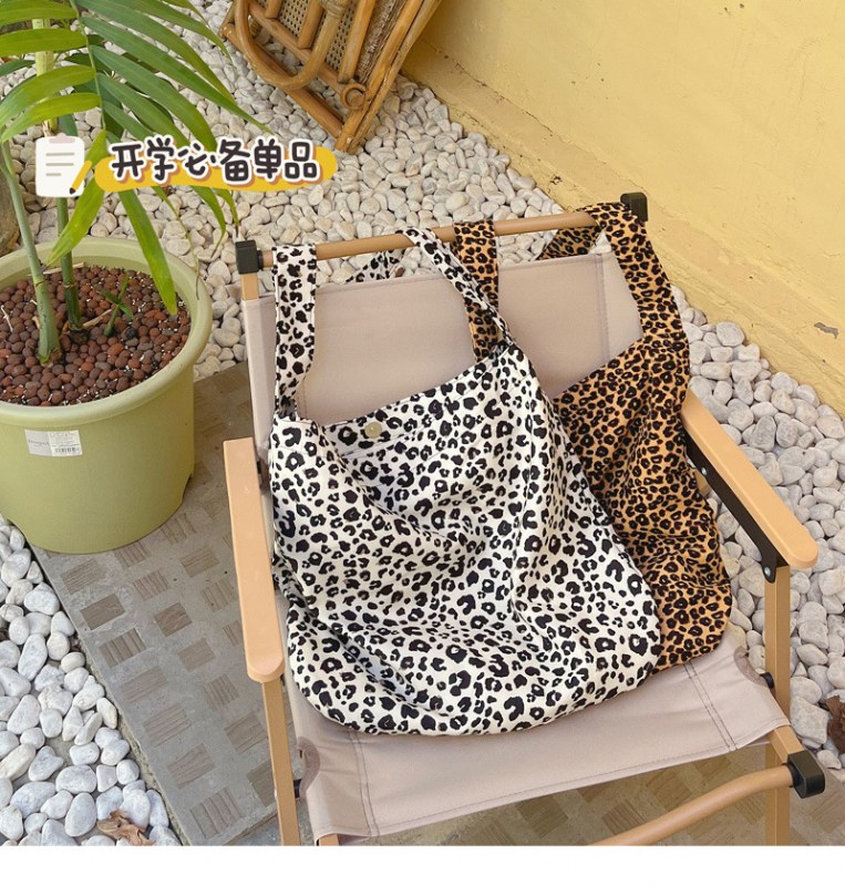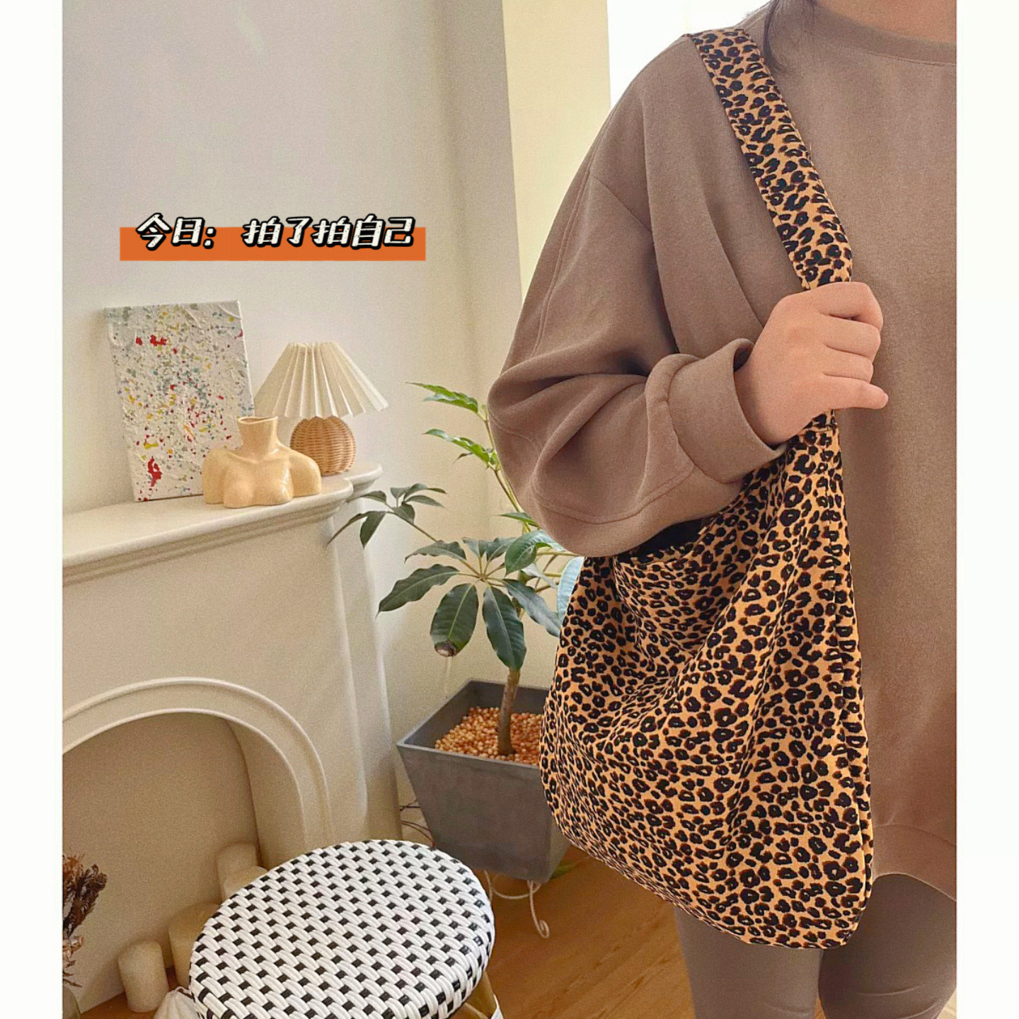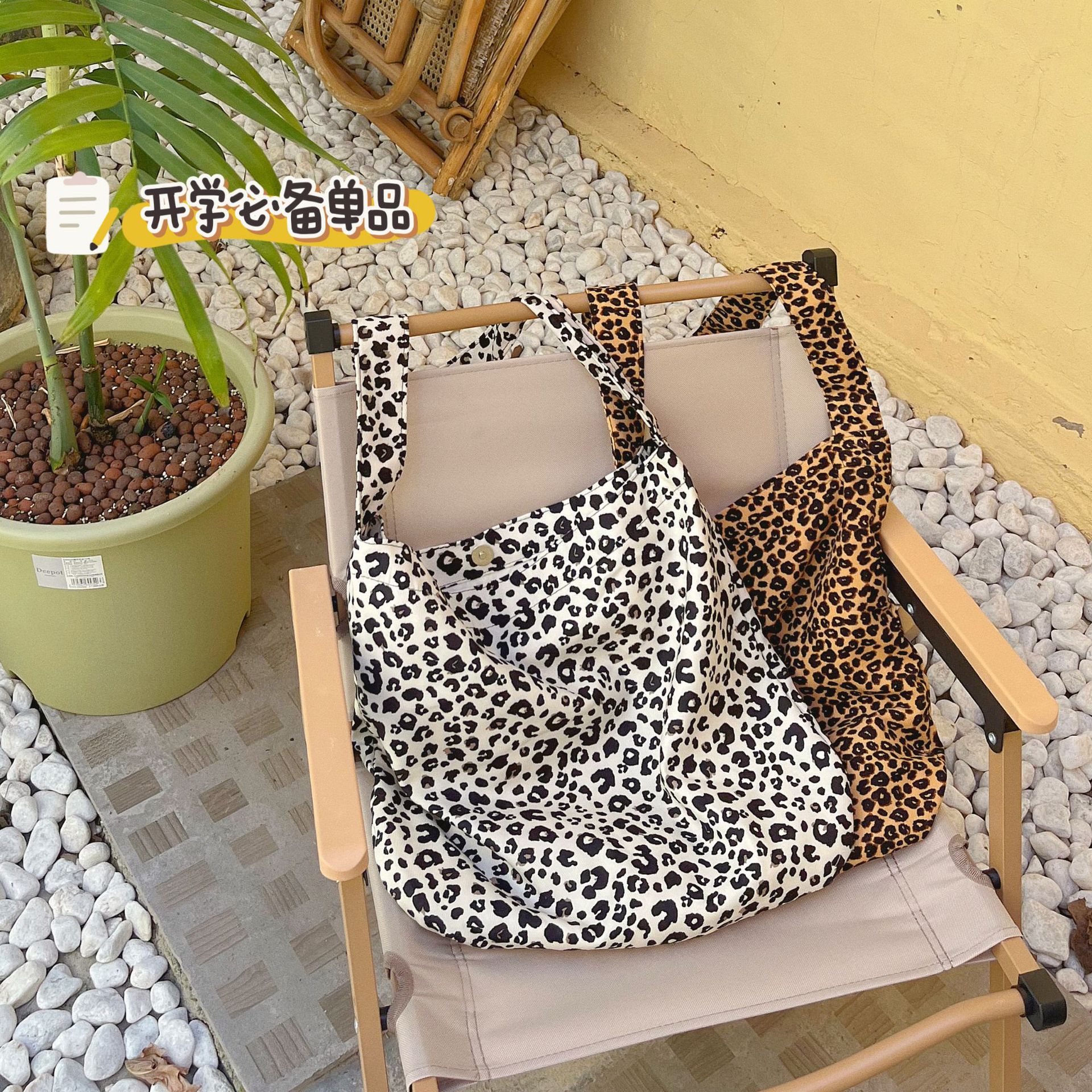 • 新しいニッチ日本と韓国のモダンな小さなヒョウ柄クロスボディバッグ、スタイリッシュなワンショルダーファッションキャンバスバッグ、女子学生バッグ