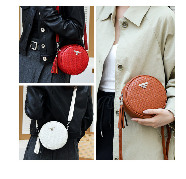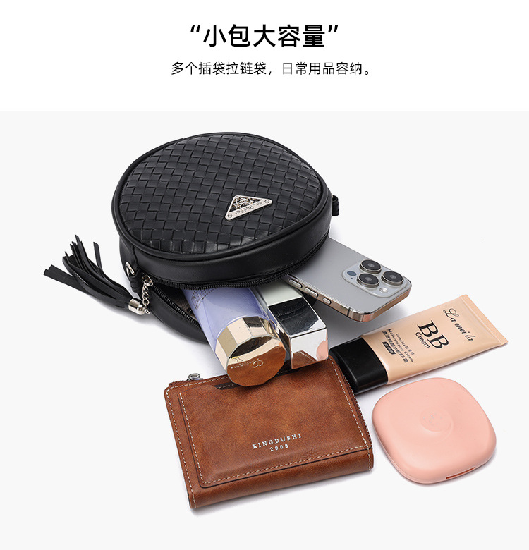 • 女性のためのバッグ 2024 新しい織バッグ秋と夏の女の子ミニタッセル小さなラウンドバッグ変更小さな携帯電話バッグバッグ