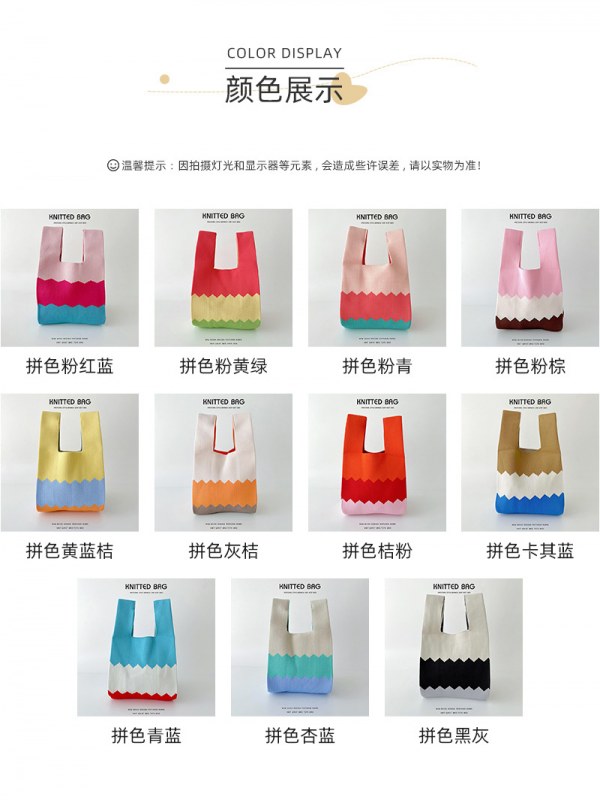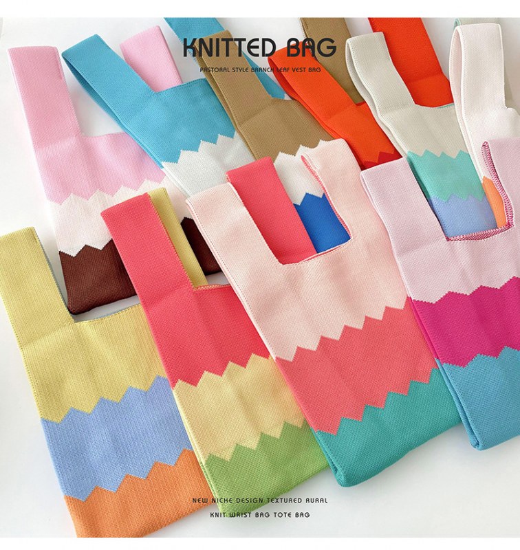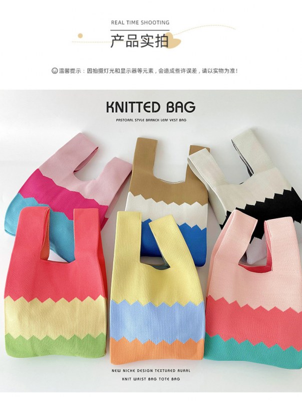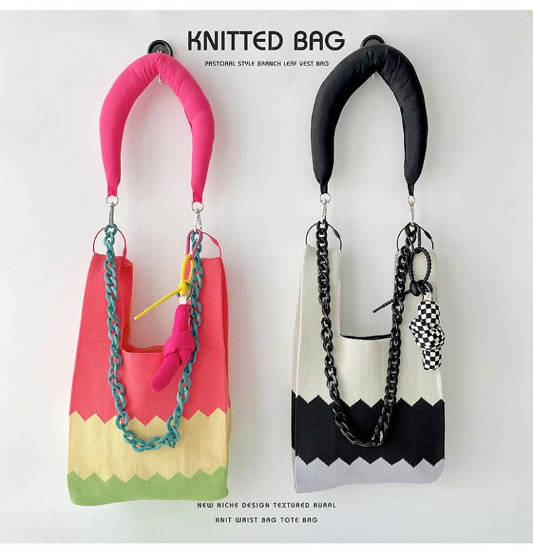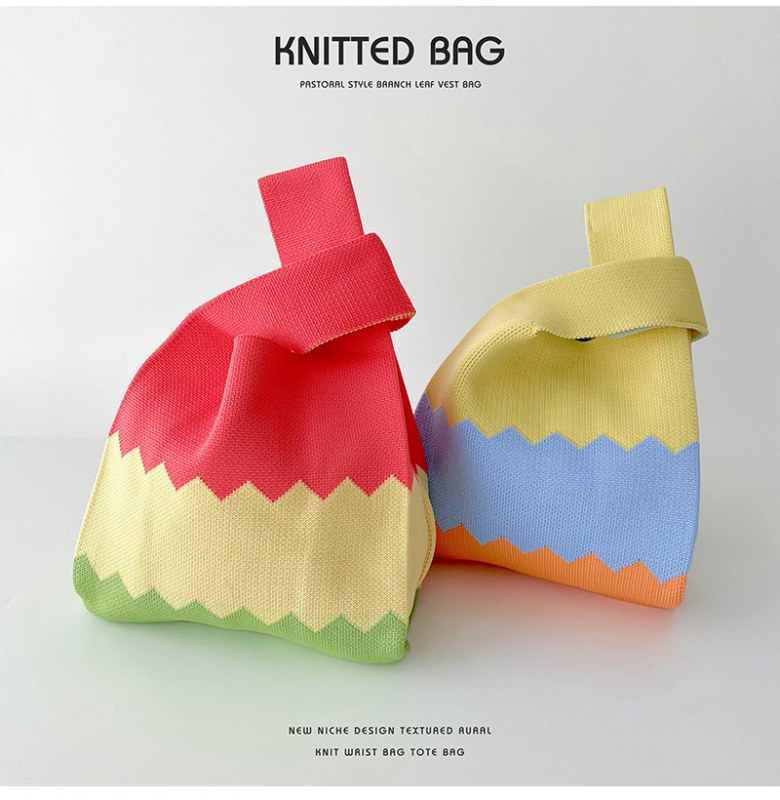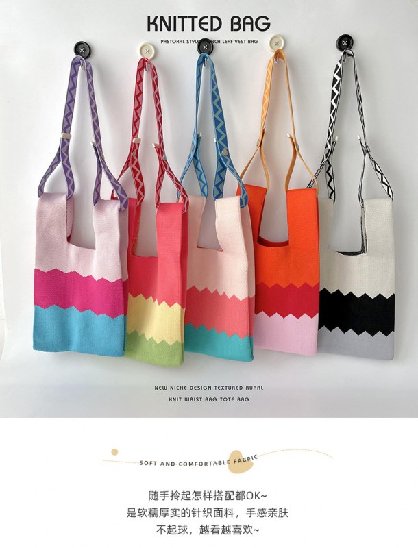• 韓国風ニッチデザインシンプルカラーブロックニットショルダーハンドバッグハンドバッグカジュアル万能大容量トートバッグ