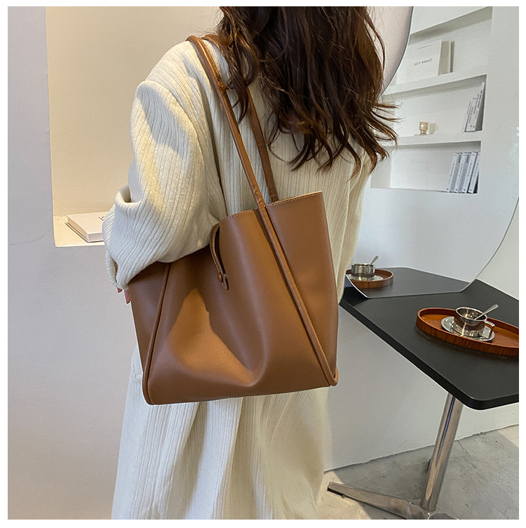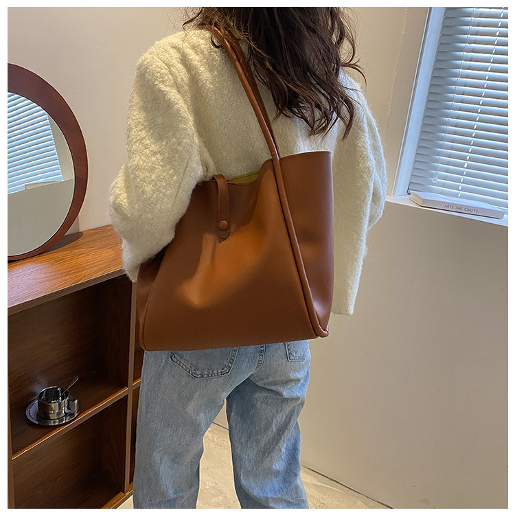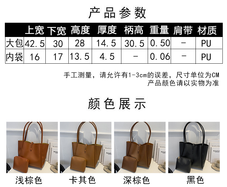 • 韓国語版無地義母バッグ 2024 新しいレディースバッグシンプルなポータブルトートバッグ大容量春のファッションショルダーバッグ