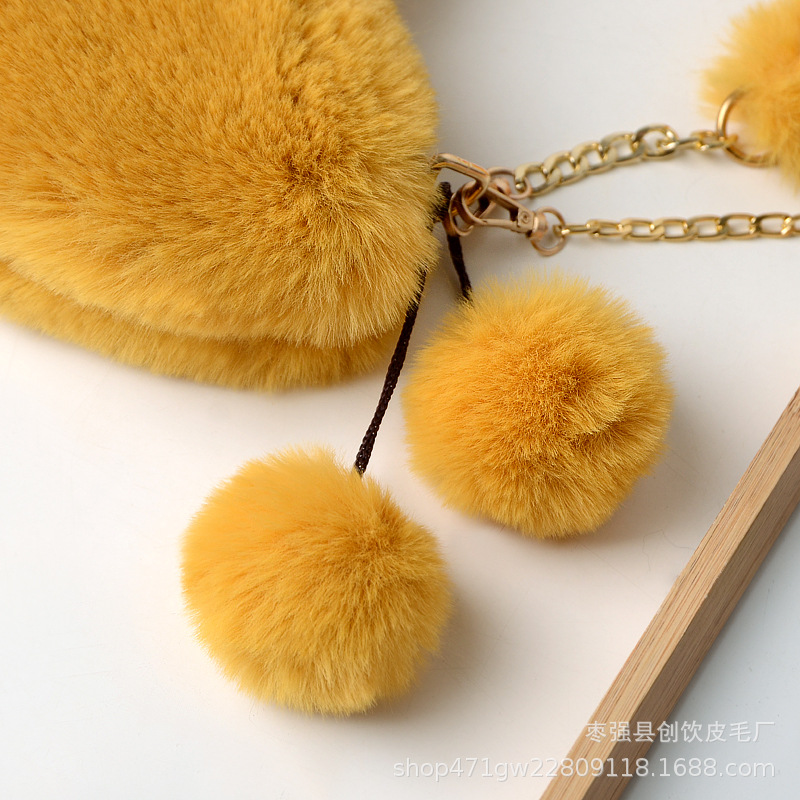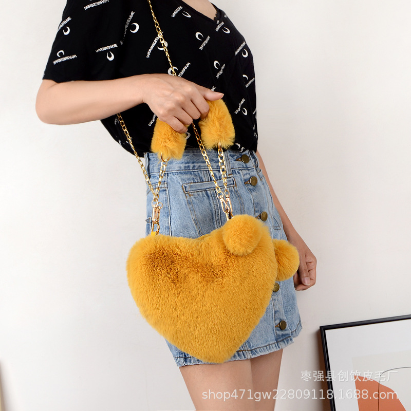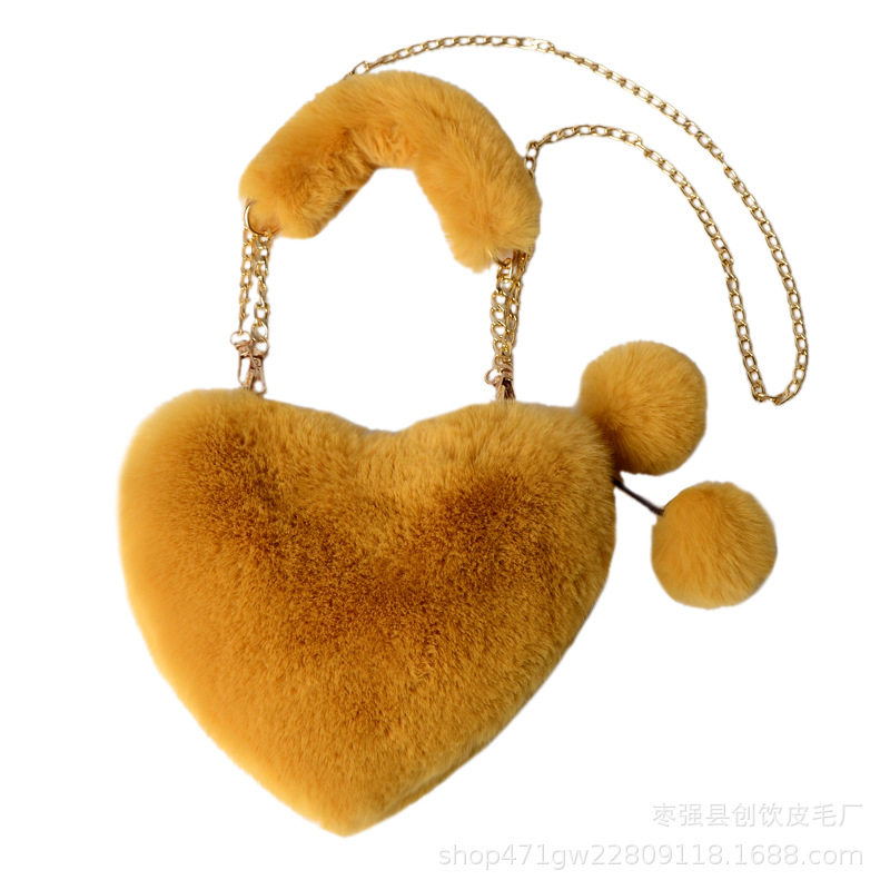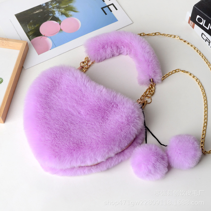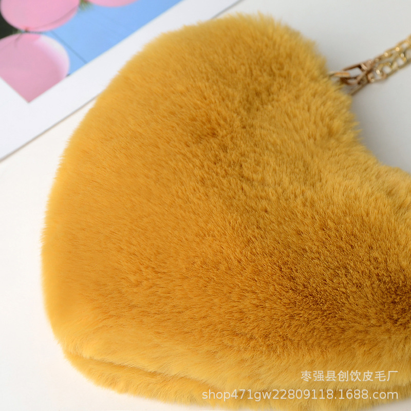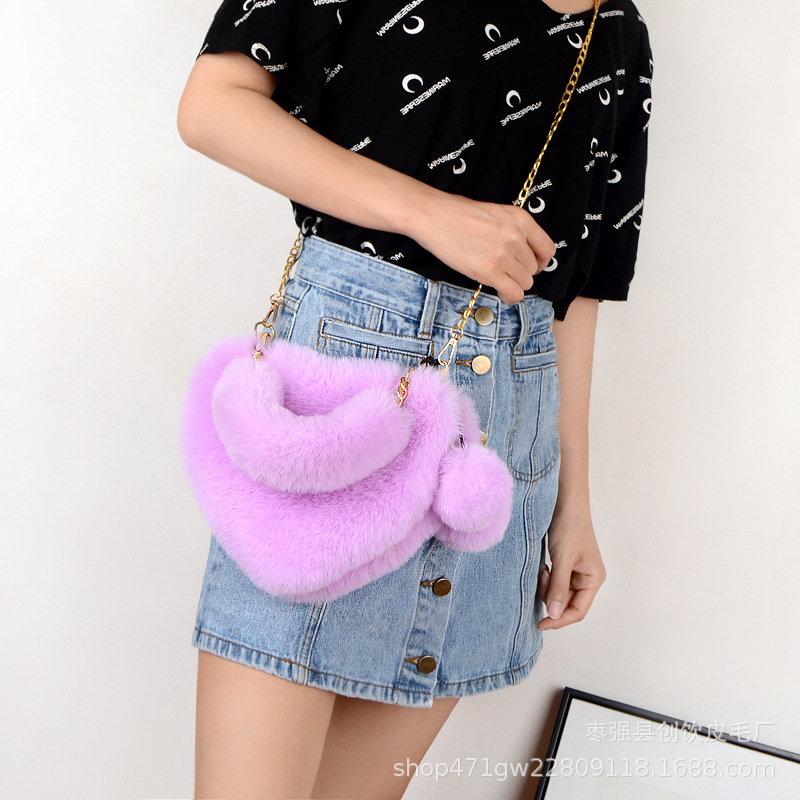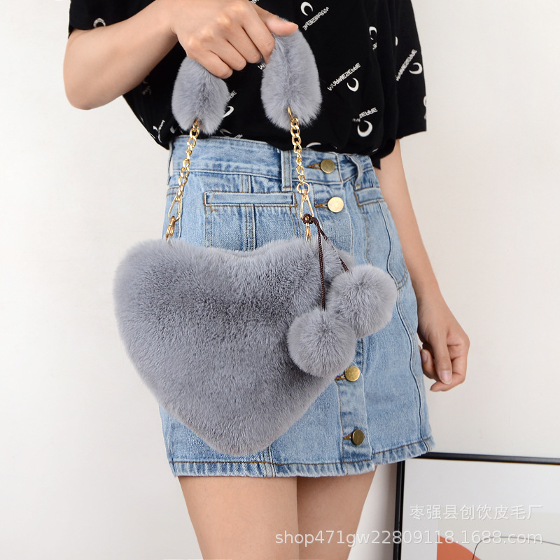 • インターネットセレブファッション豪華なハート型バッグ女性のハンドバッグクロスハンド保持ピーチハート愛模造毛皮小銭入れ