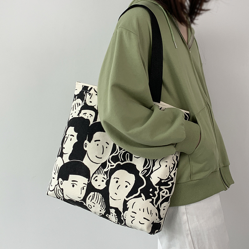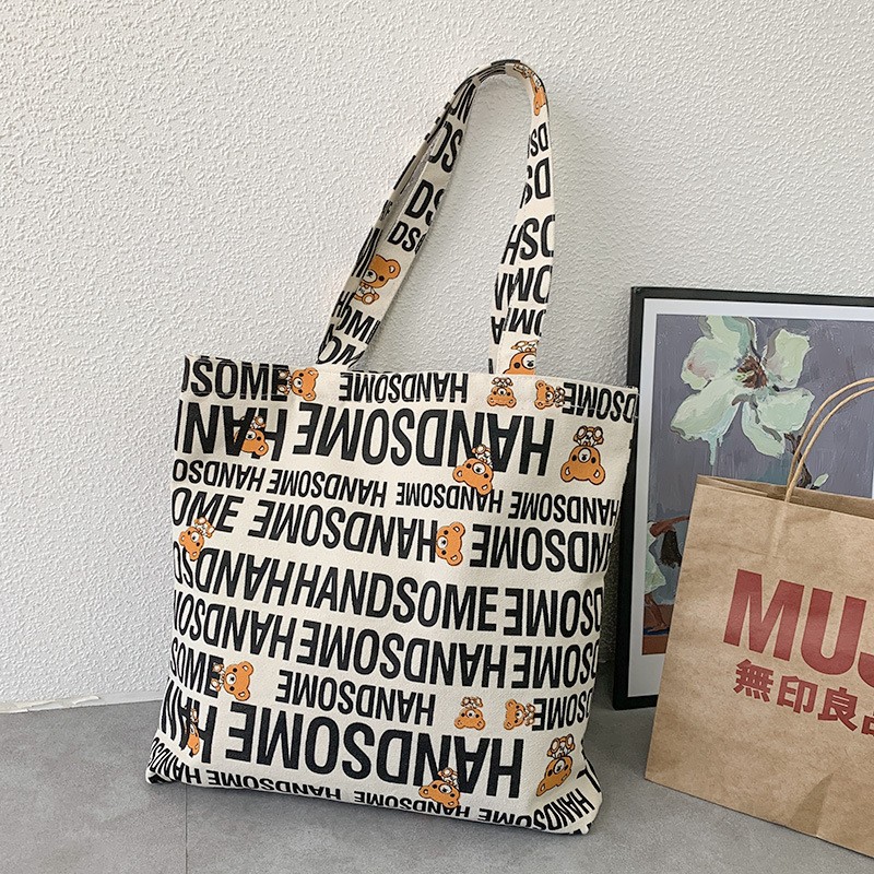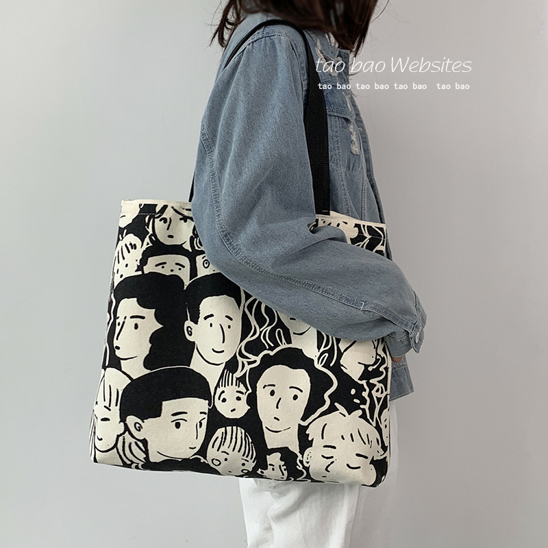 • 2024 新しいヨーロッパスタイルイン怠惰なスタイル大容量キャンバスバッグ女性のショルダー学生文学シンプルなショッピングバッグ