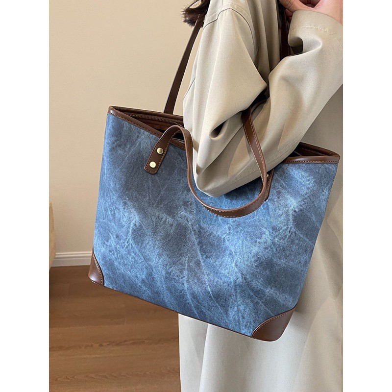 • ファッショナブルなカジュアル大容量トートバッグ女性用新しい 2024 ラージバッグデザインニッチ通勤バッグトレンディなショルダーバッグ