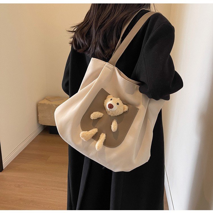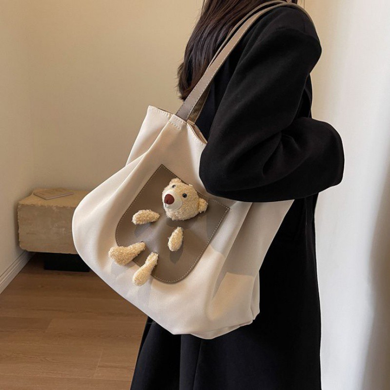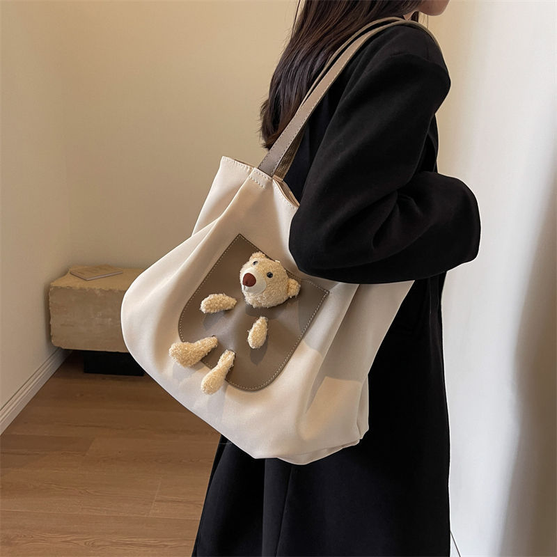 • 大容量バッグ 女性 かわいいクマ ショルダーバッグ カジュアル オールマッチ キャンバスバッグ 大学生クラス 通勤 トートバッグ