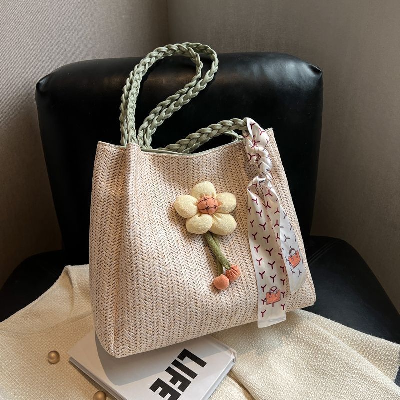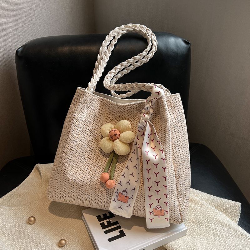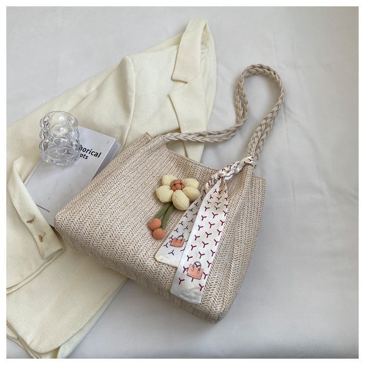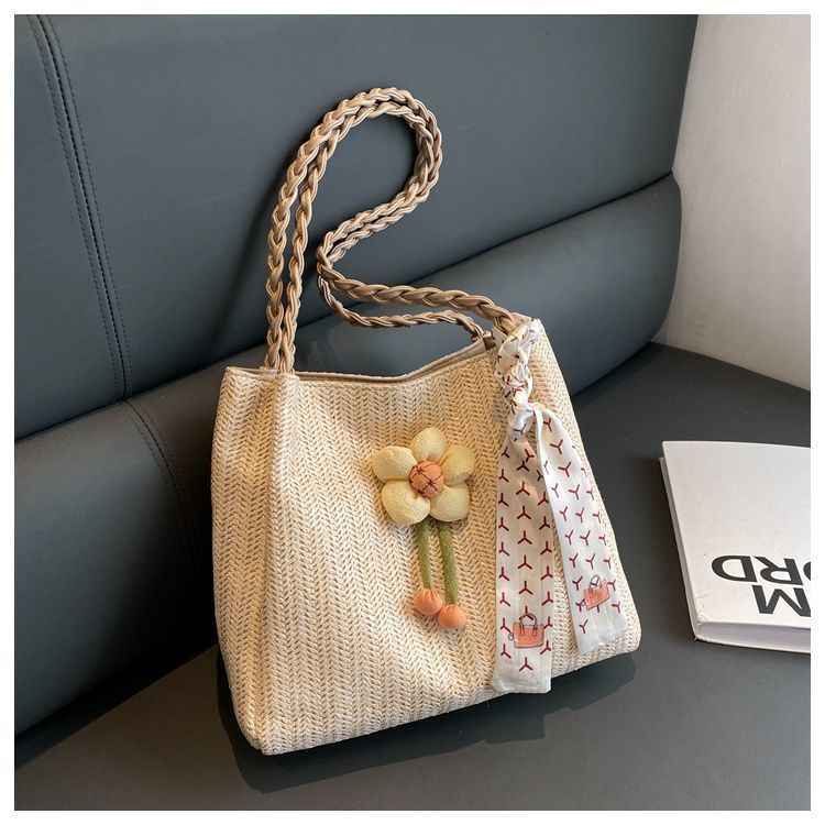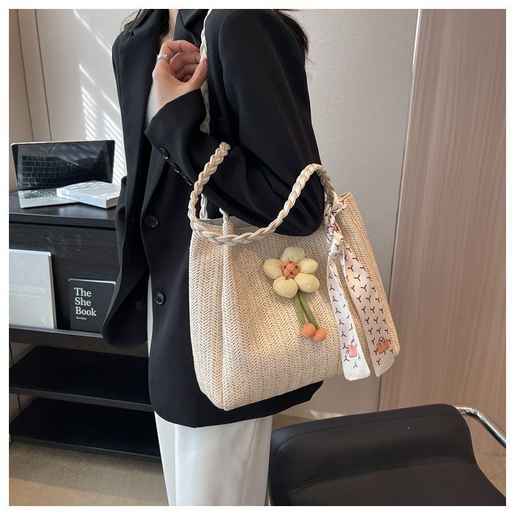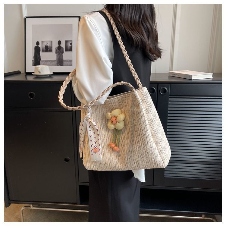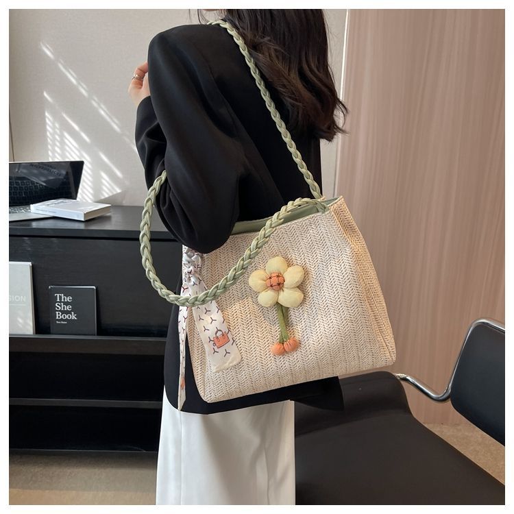 • 女性のための編まれたストローバッグ 2024 新しい多用途大容量ショルダーバッグ仕事や通勤用トートバッグ海辺ショルダーバッグ