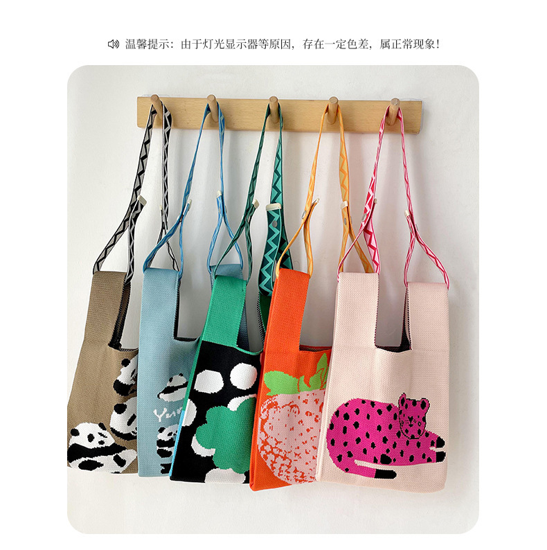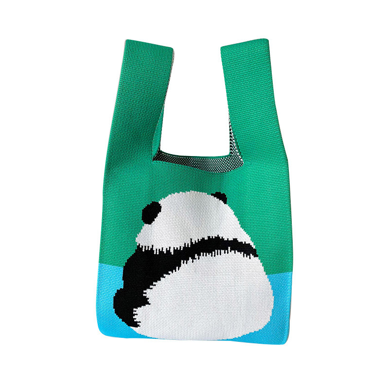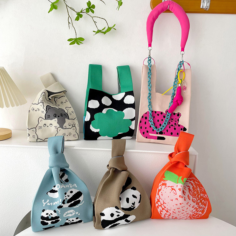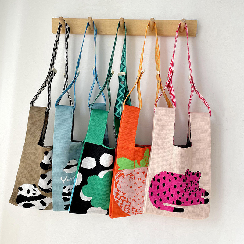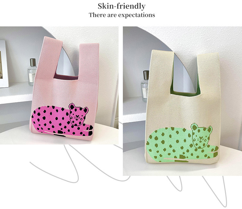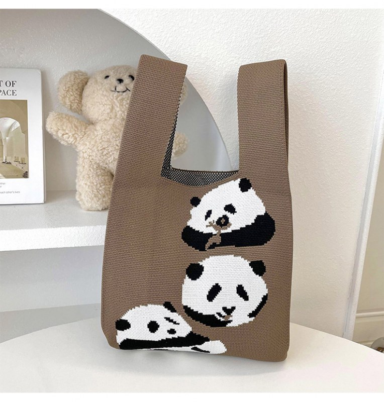 • 新しいかわいい漫画の動物シリーズニットバッグ女性用、多用途大容量学生通勤トートバッグ、ハンドバッグ