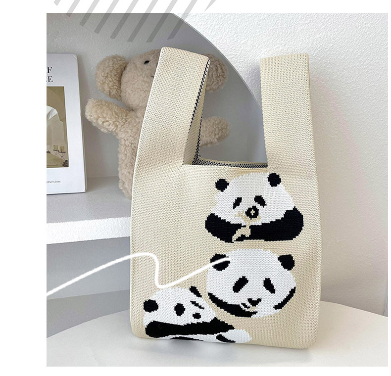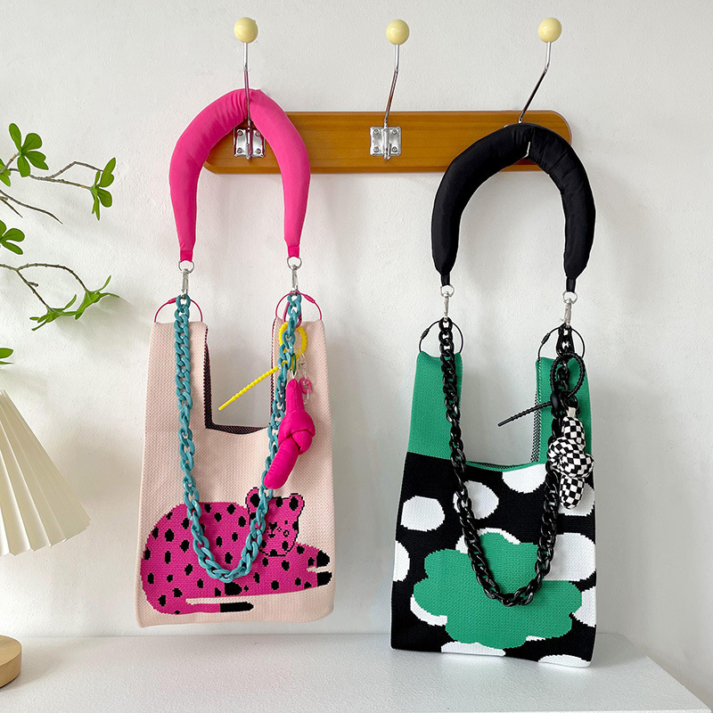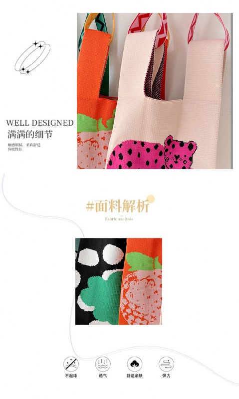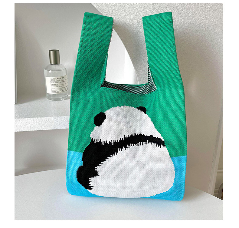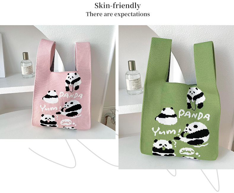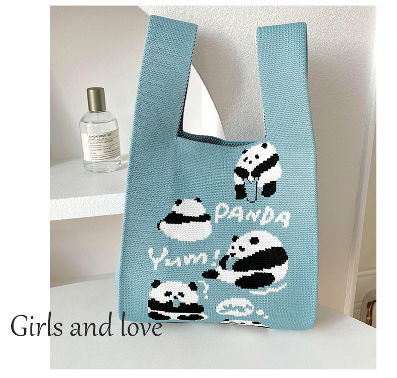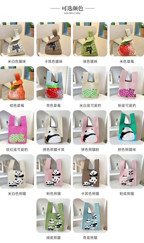 • 新しいかわいい漫画の動物シリーズニットバッグ女性用、多用途大容量学生通勤トートバッグ、ハンドバッグ