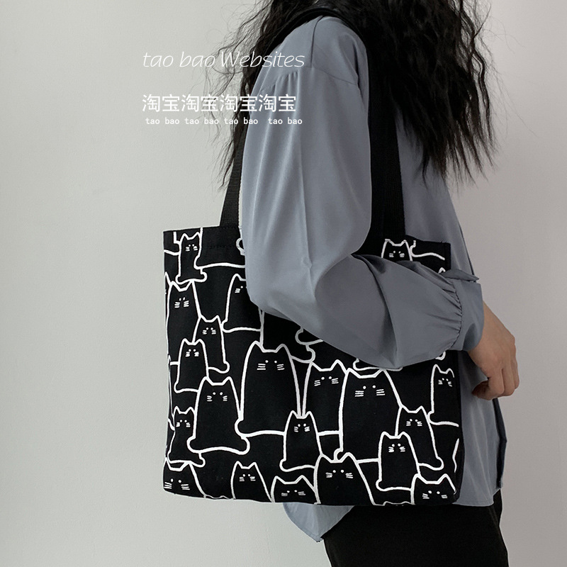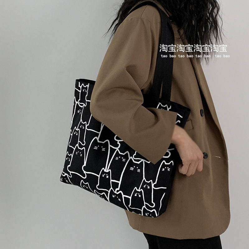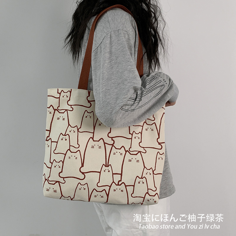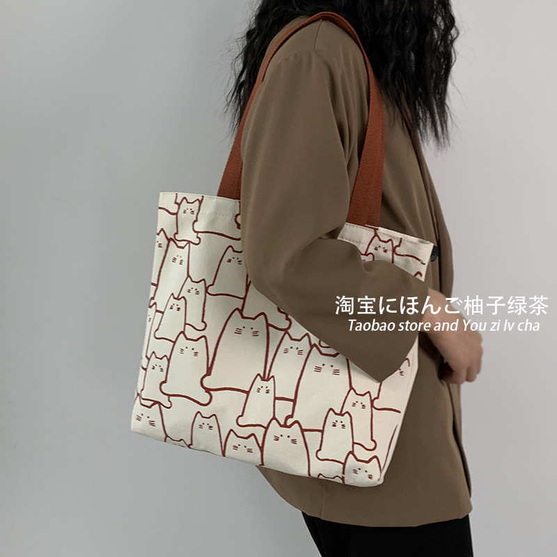 • 日本韓国スタイルの大容量学生シンプルでかわいい文学ショルダーバッグポータブルキャンバスバッグ