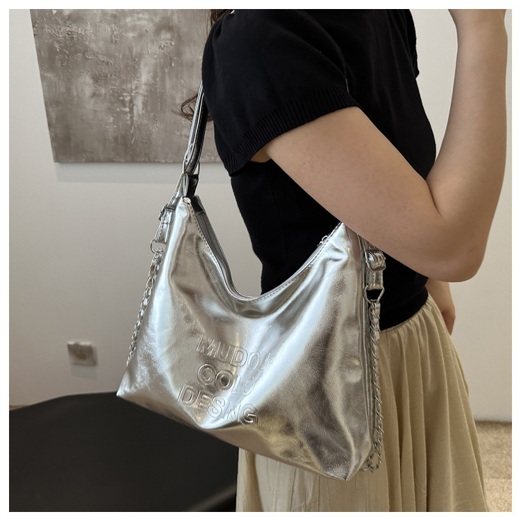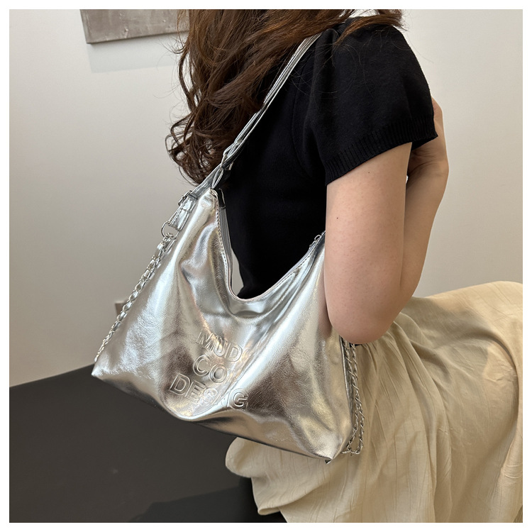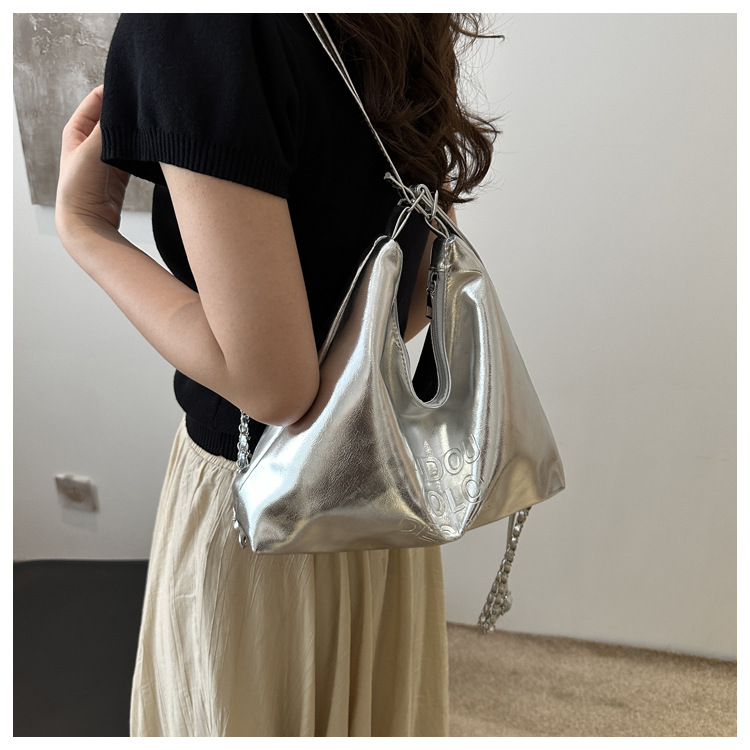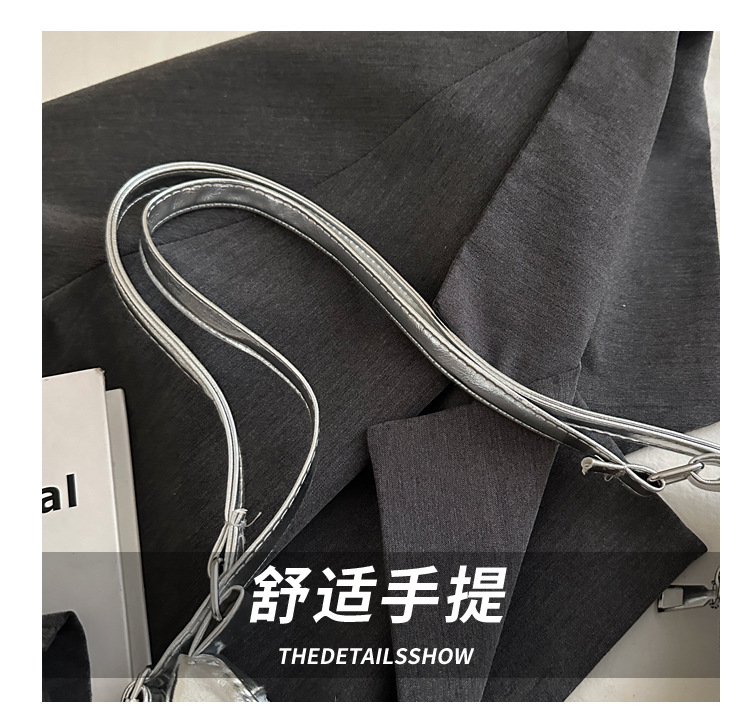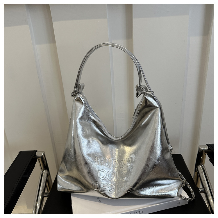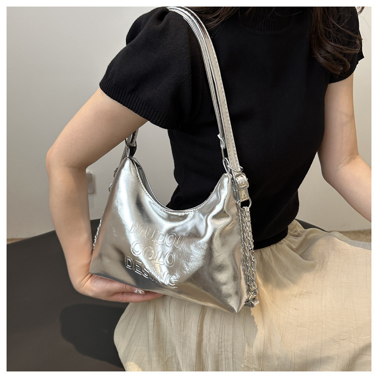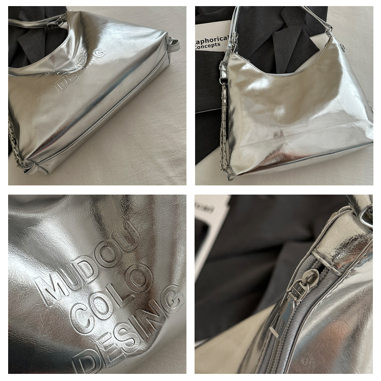 • 韓国スタイルのニッチなデザインの脇の下バッグ、ファッショナブルなレディースバッグ、さまざまな方法で両肩にかけることができます、シルバーの脇の下ワンショルダー無地のトレンディなバッグ