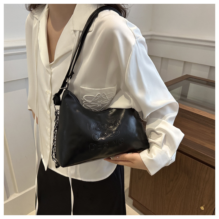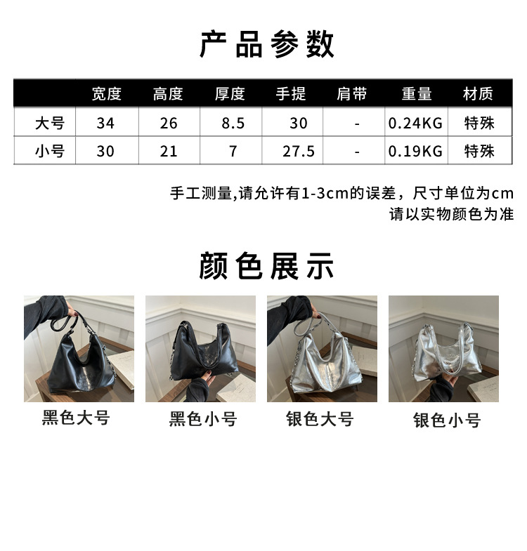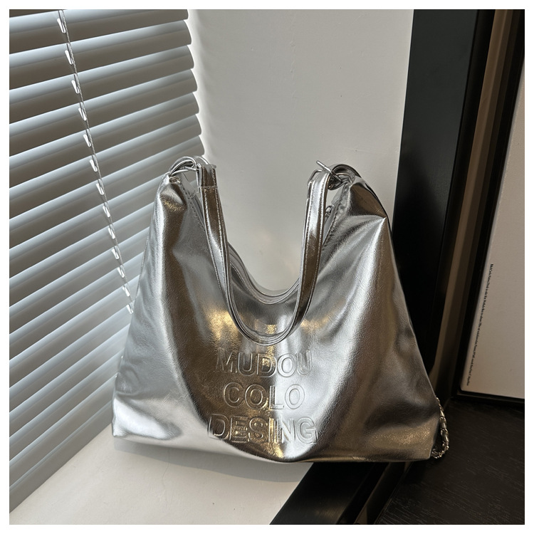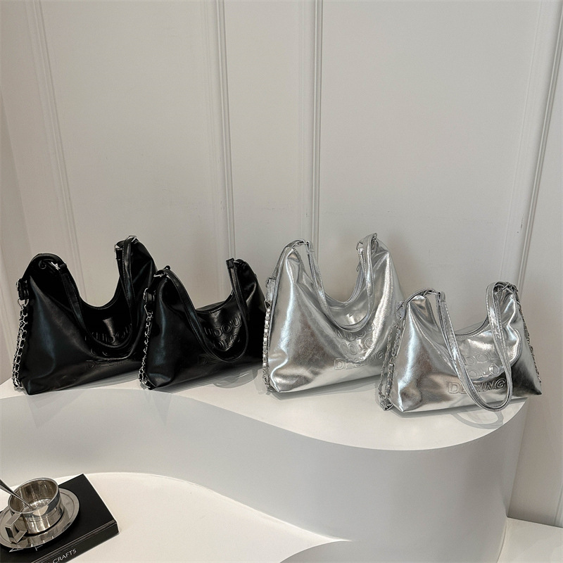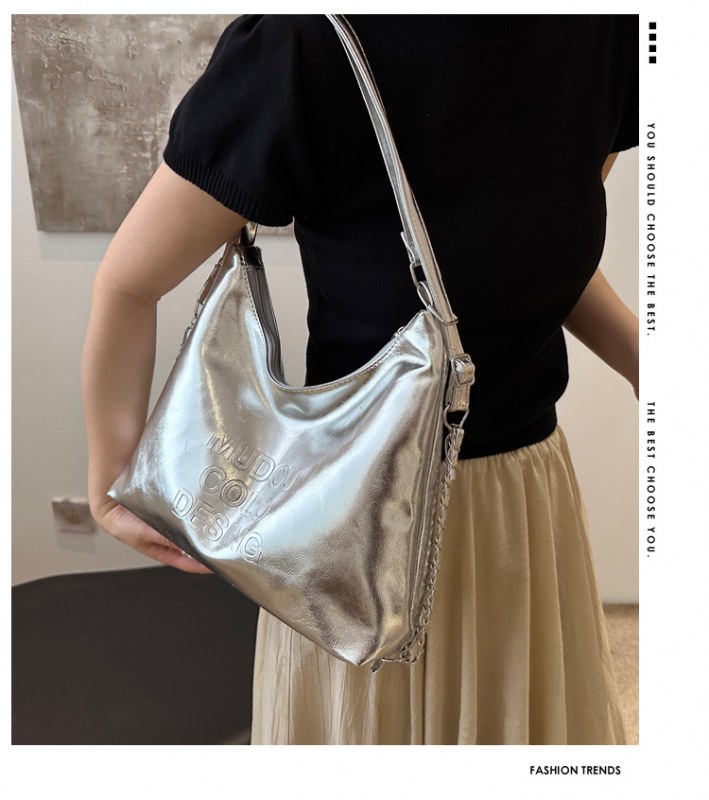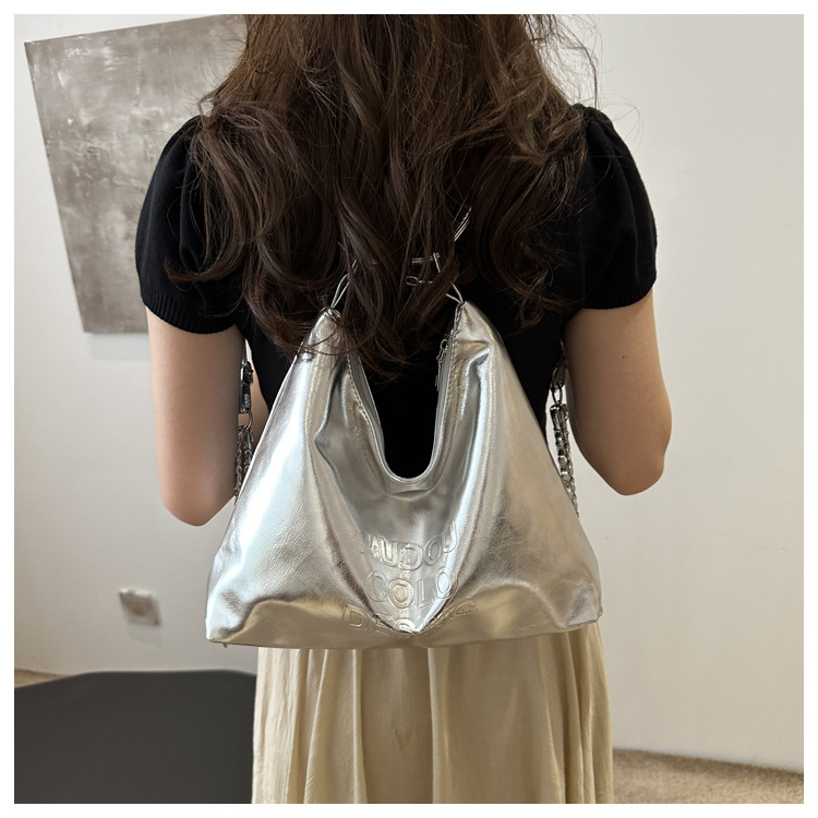 • 韓国スタイルのニッチなデザインの脇の下バッグ、ファッショナブルなレディースバッグ、さまざまな方法で両肩にかけることができます、シルバーの脇の下ワンショルダー無地のトレンディなバッグ