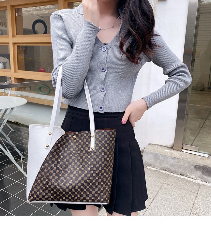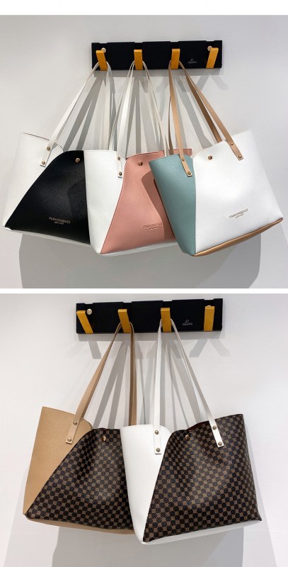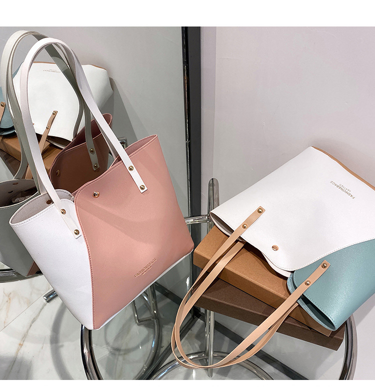 • 女性用バッグ、新しいファッショナブルなブロンズのコントラストハンドバッグ、ショルダーバッグ、ショッピングバッグ、大容量バッグ