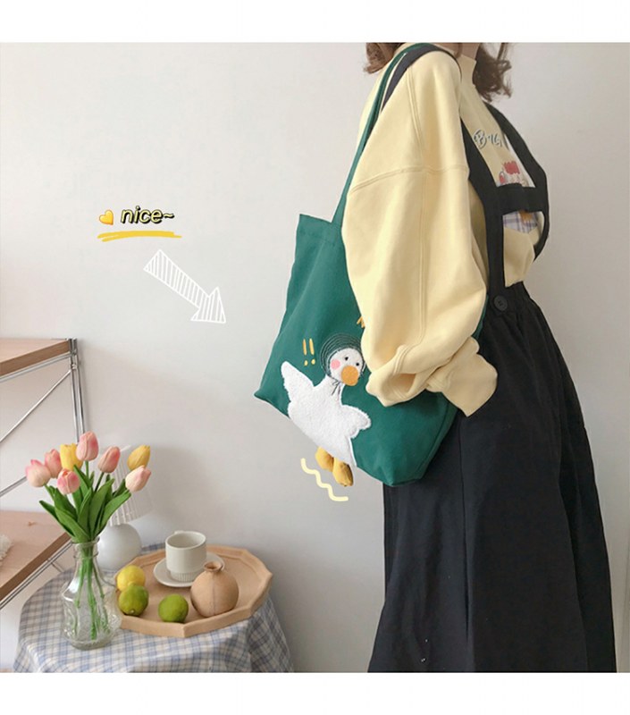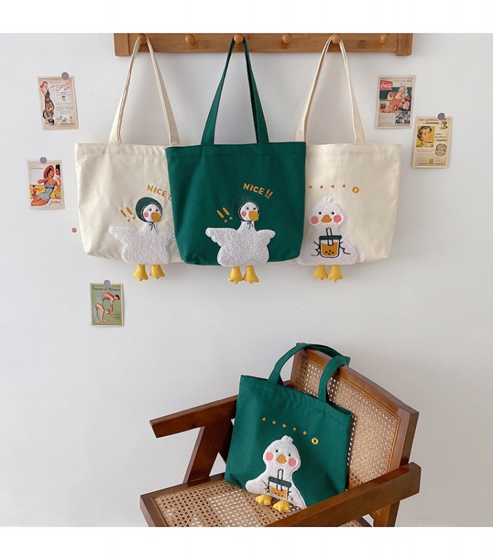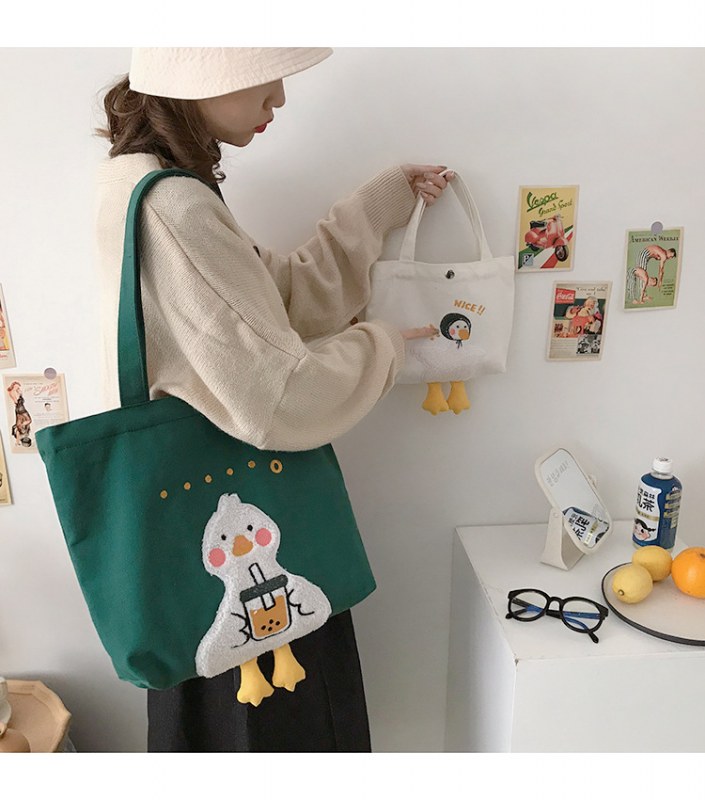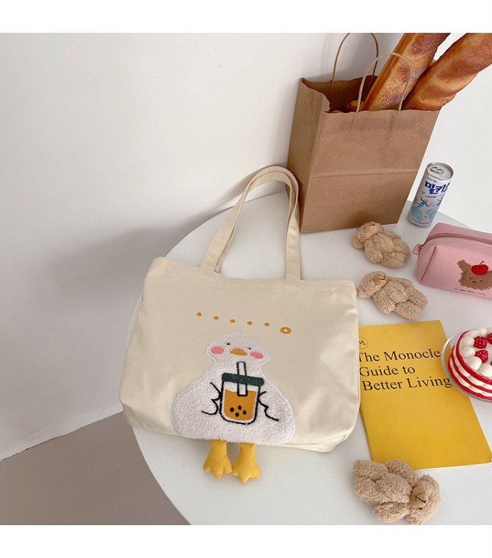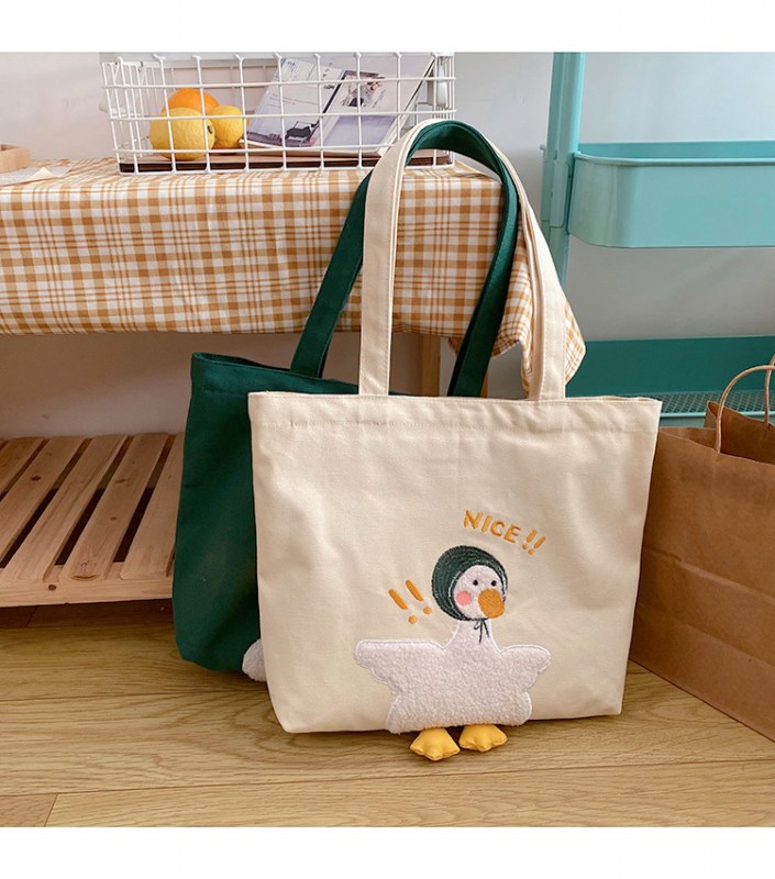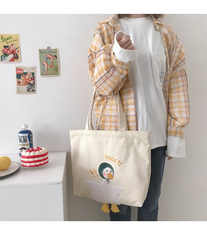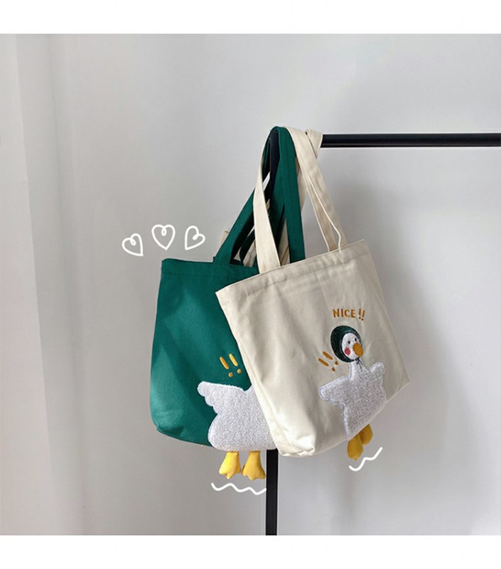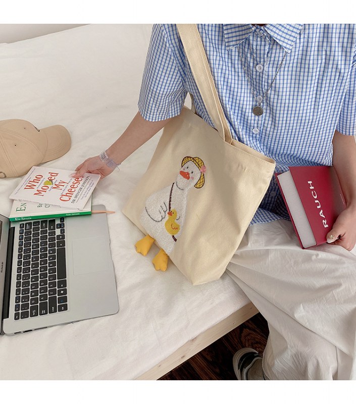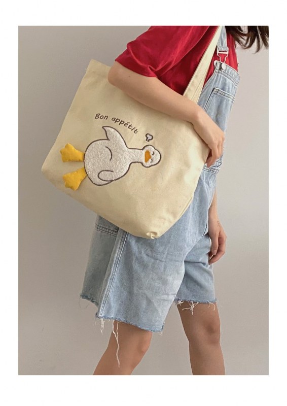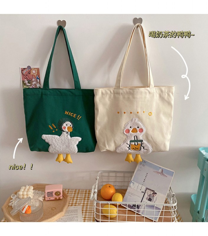 • アヒルアヒル刺繍キャンバスバッグ新しい柔らかいかわいいアヒルバッグショルダーバッグ