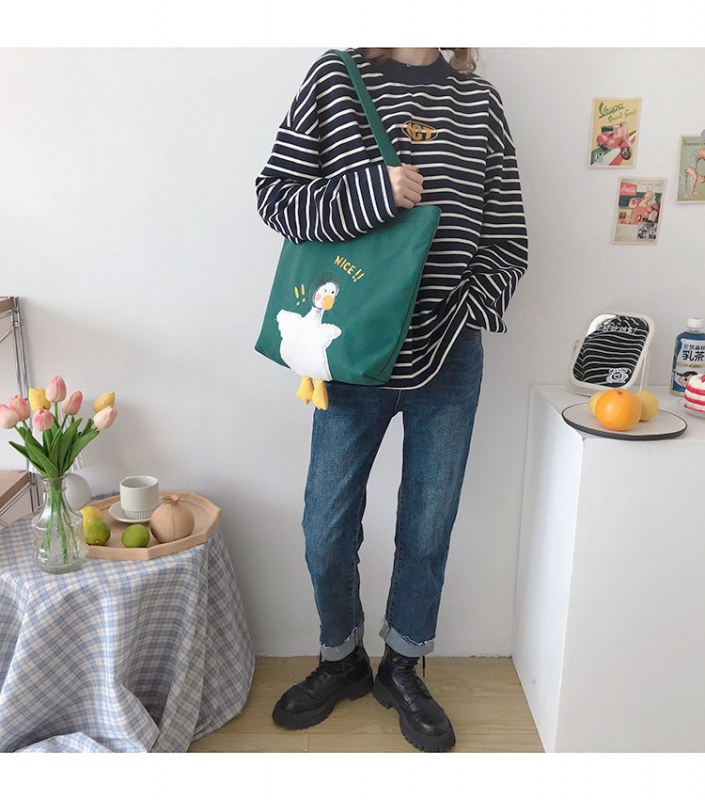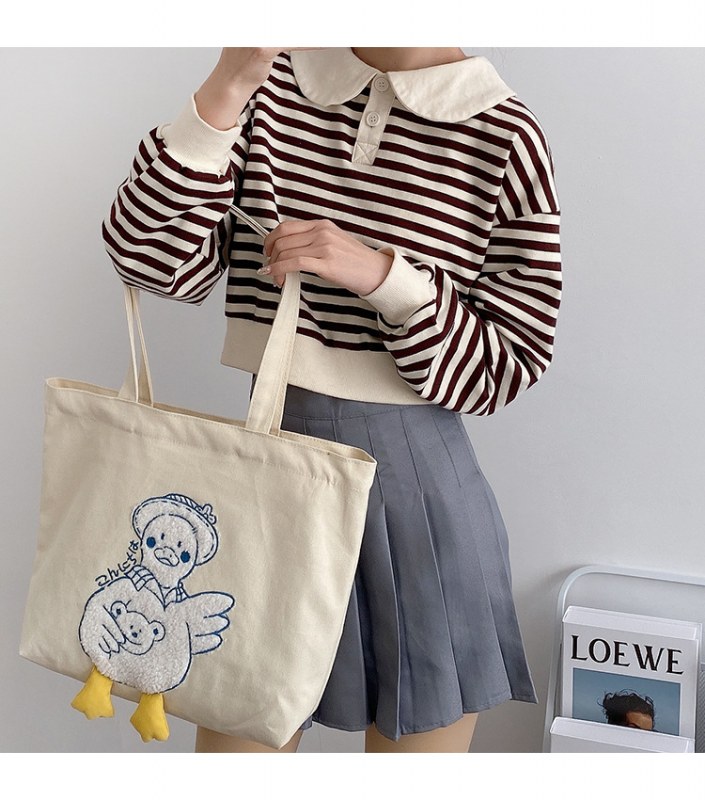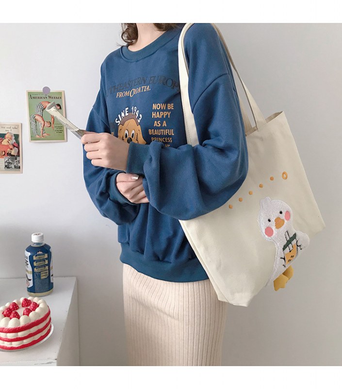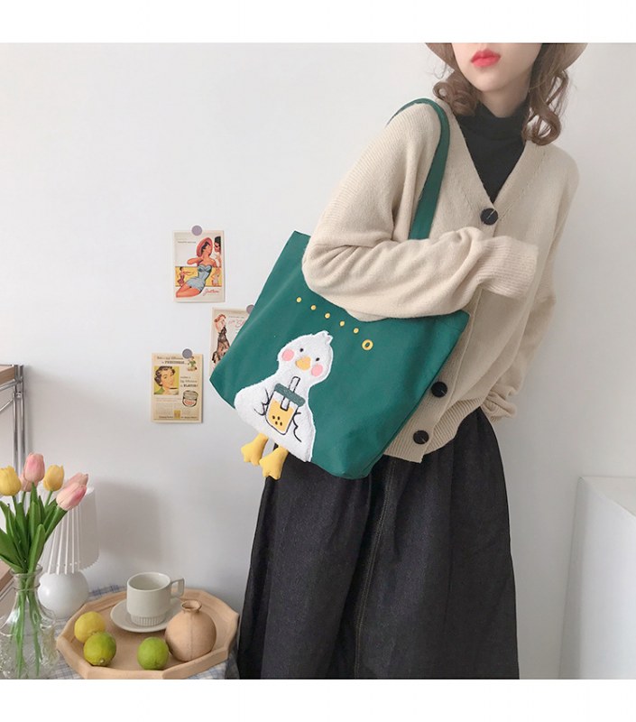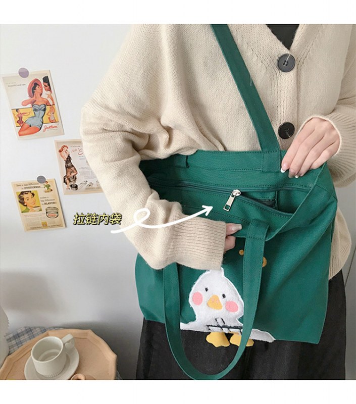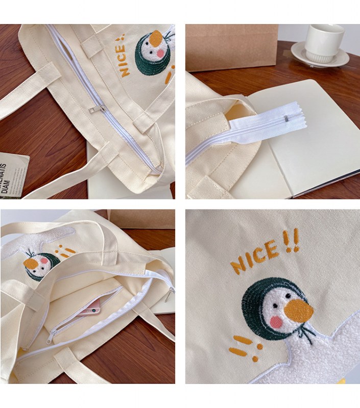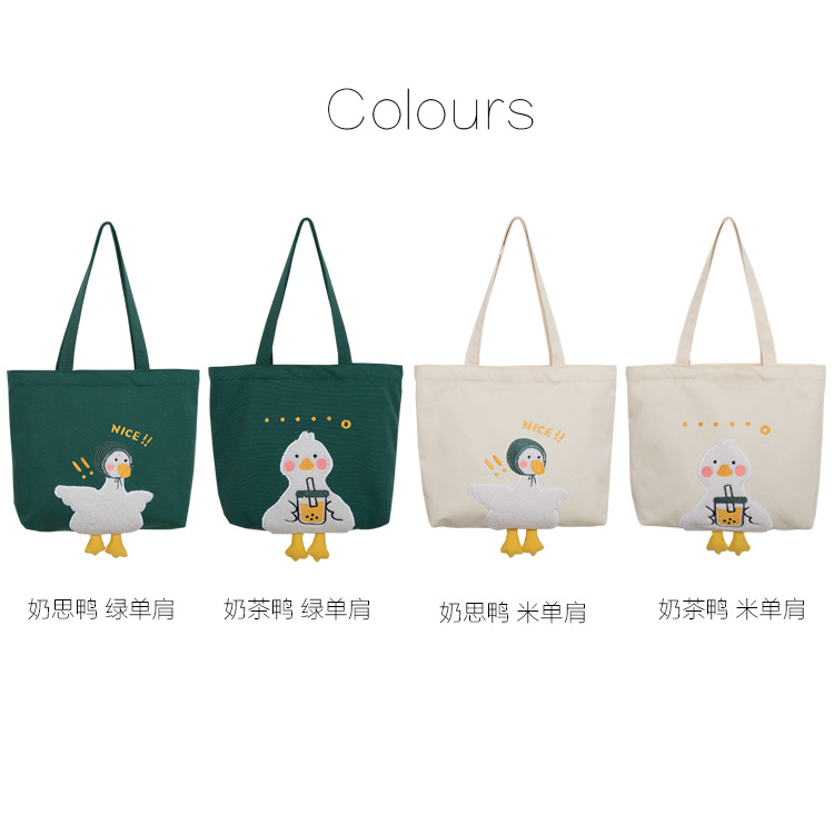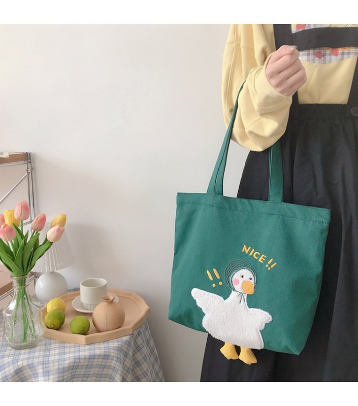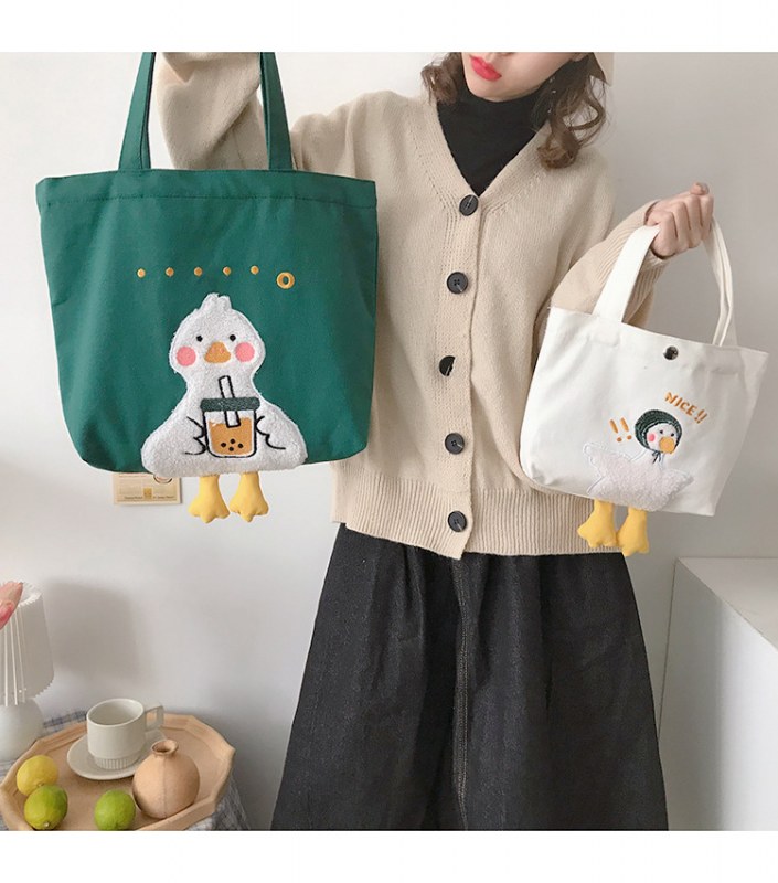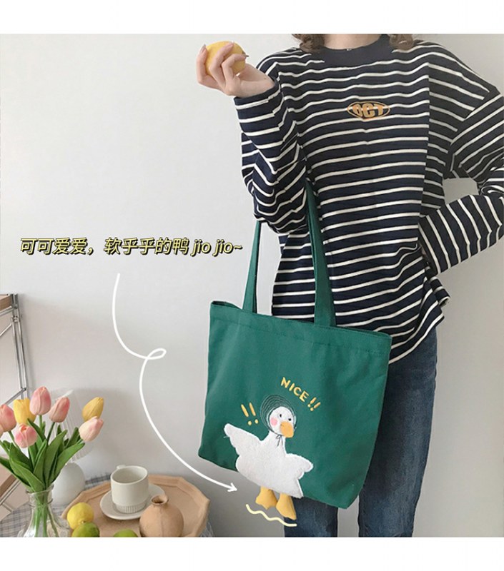 • アヒルアヒル刺繍キャンバスバッグ新しい柔らかいかわいいアヒルバッグショルダーバッグ