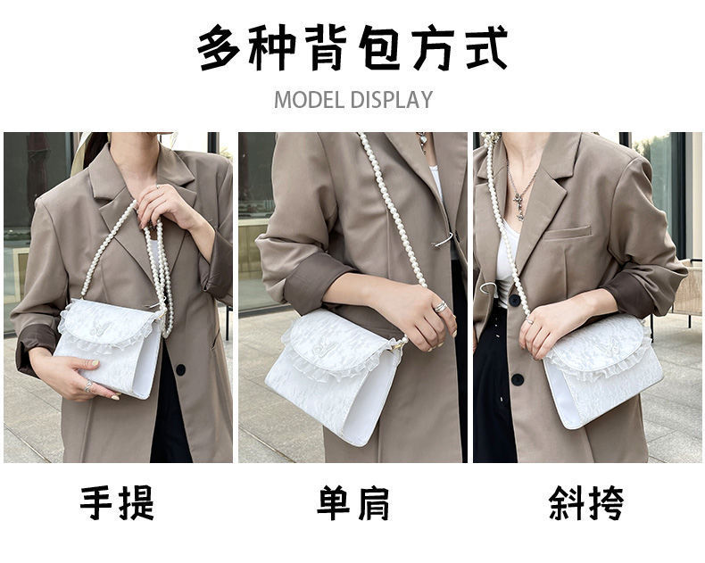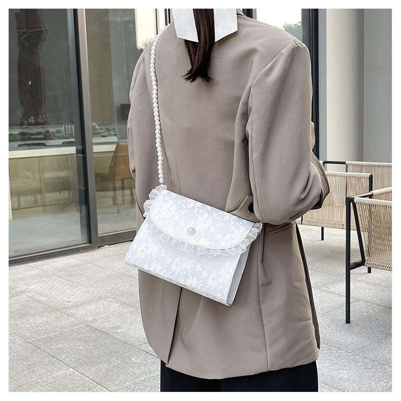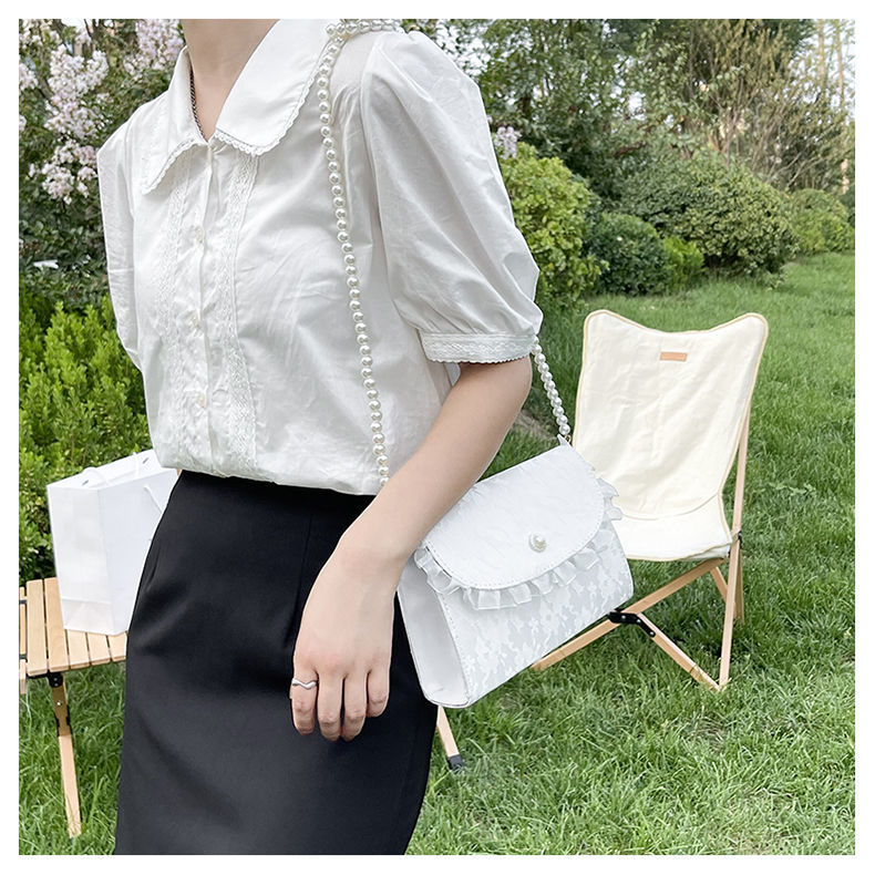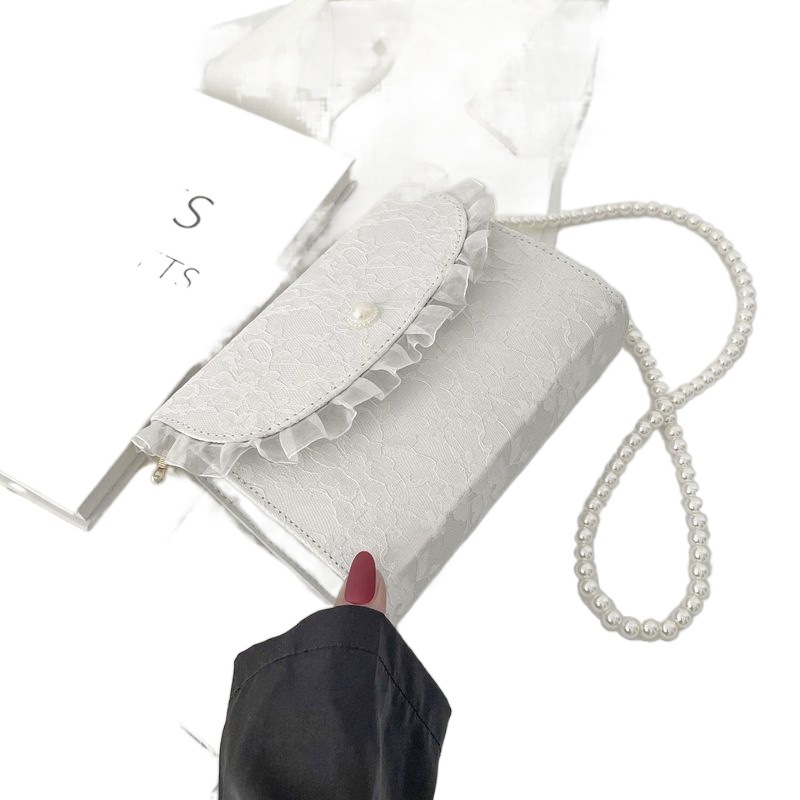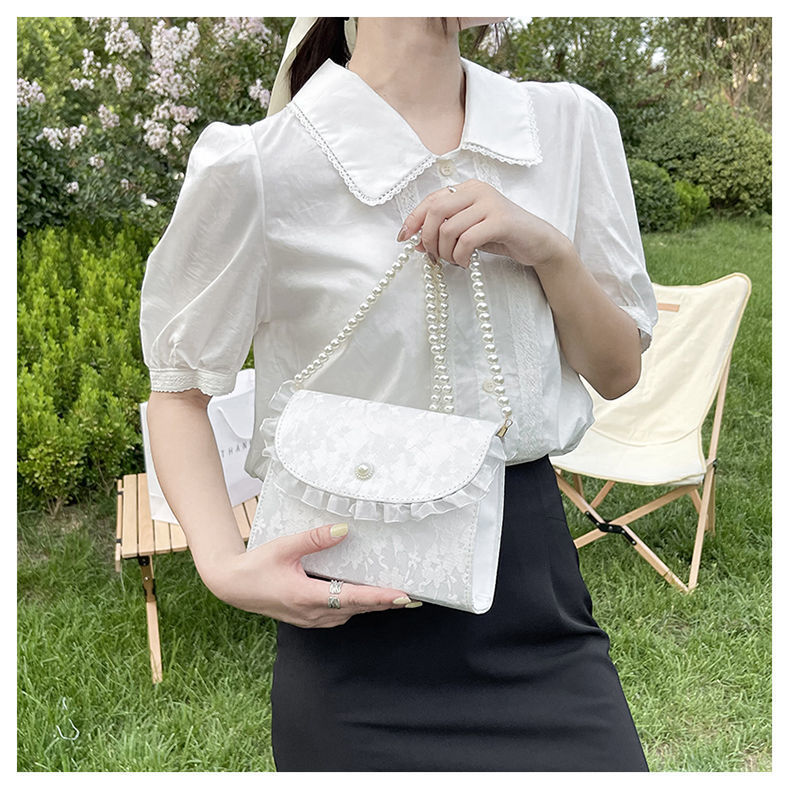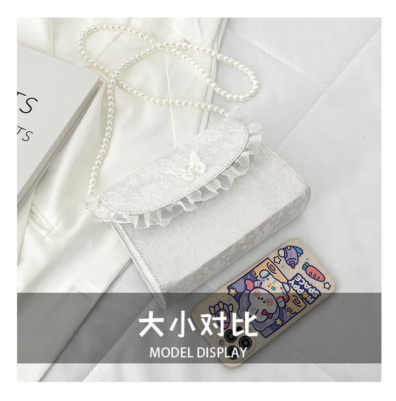 • 夏ニッチバッグ女性のための 2024 新しい妖精優しいスタイルパールクロスボディバッグ日本製レースシングルショルダー小さな正方形バッグ