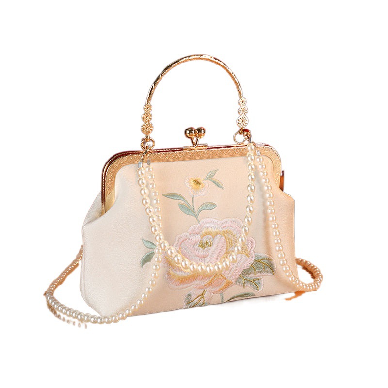 • 新しい中国風の国民風刺繍入りレディースバッグ花嫁介添人プレートバックルハンドバッグエレガントなニッチ韓服馬の顔チャイナドレス花嫁バッグ