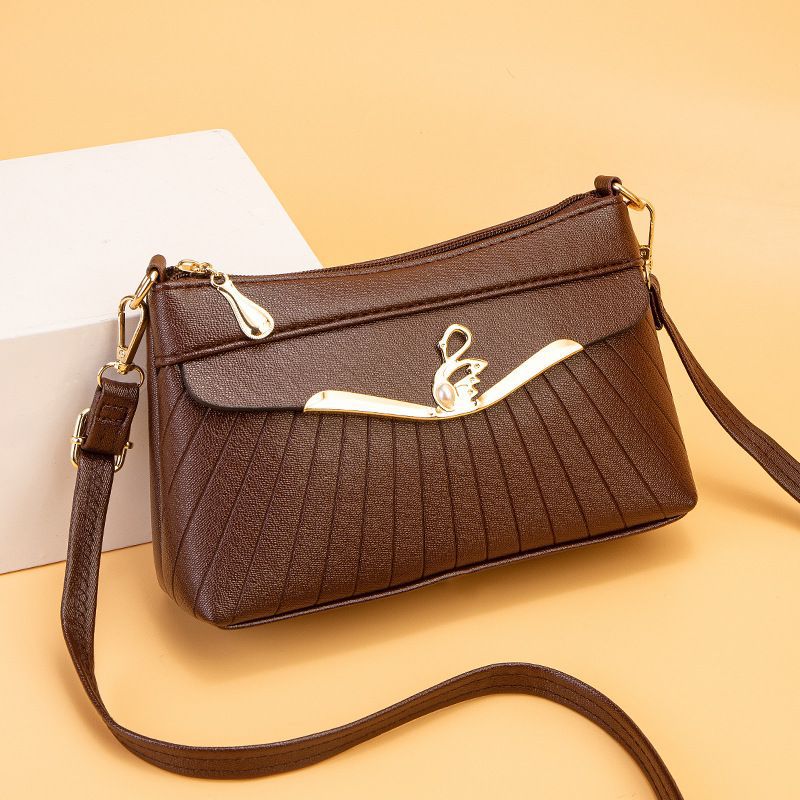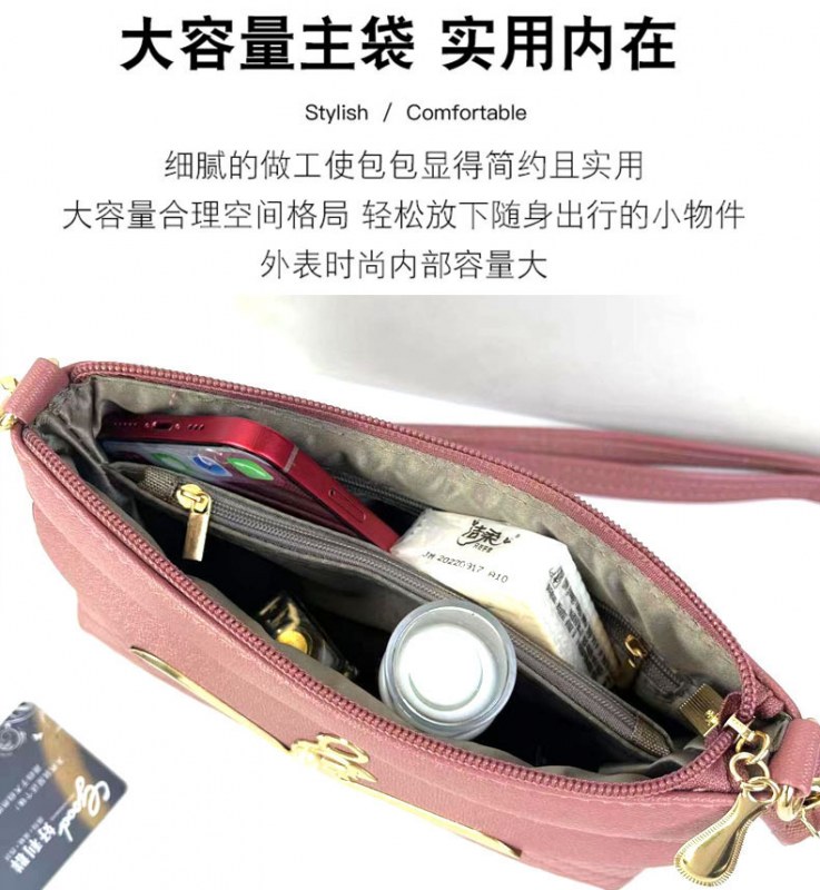 • 夏の新中年マザーバッグクロスボディバッグレディース携帯電話バッグ多層エンボスショルダーソフトレザーバッグジッパーバッグ