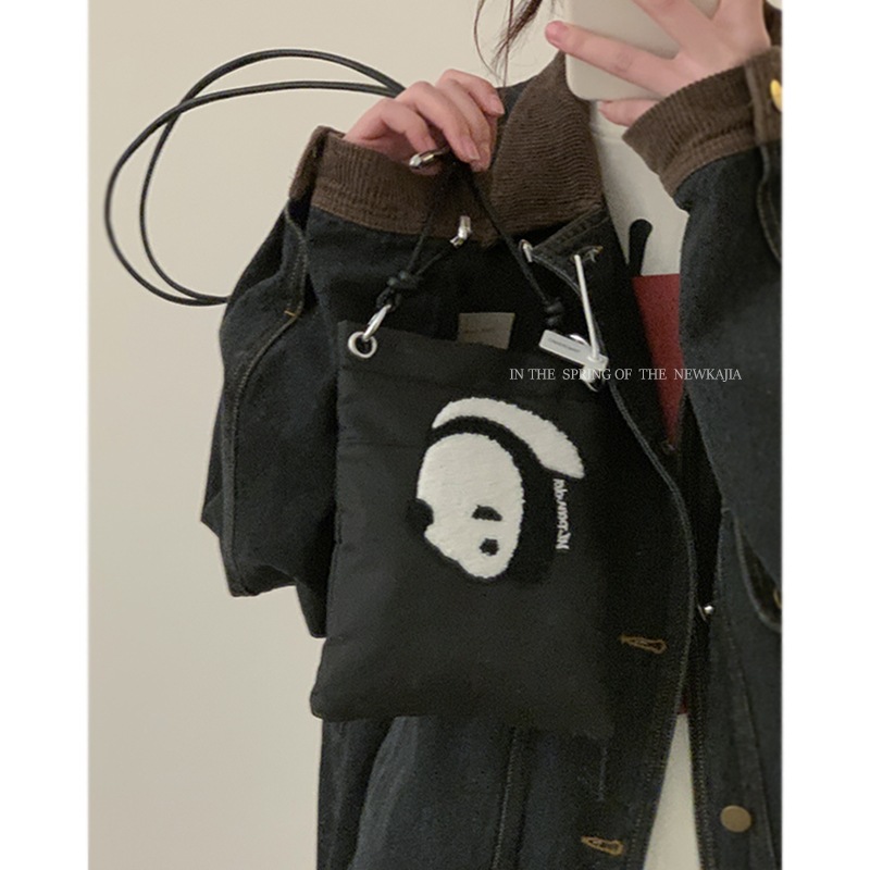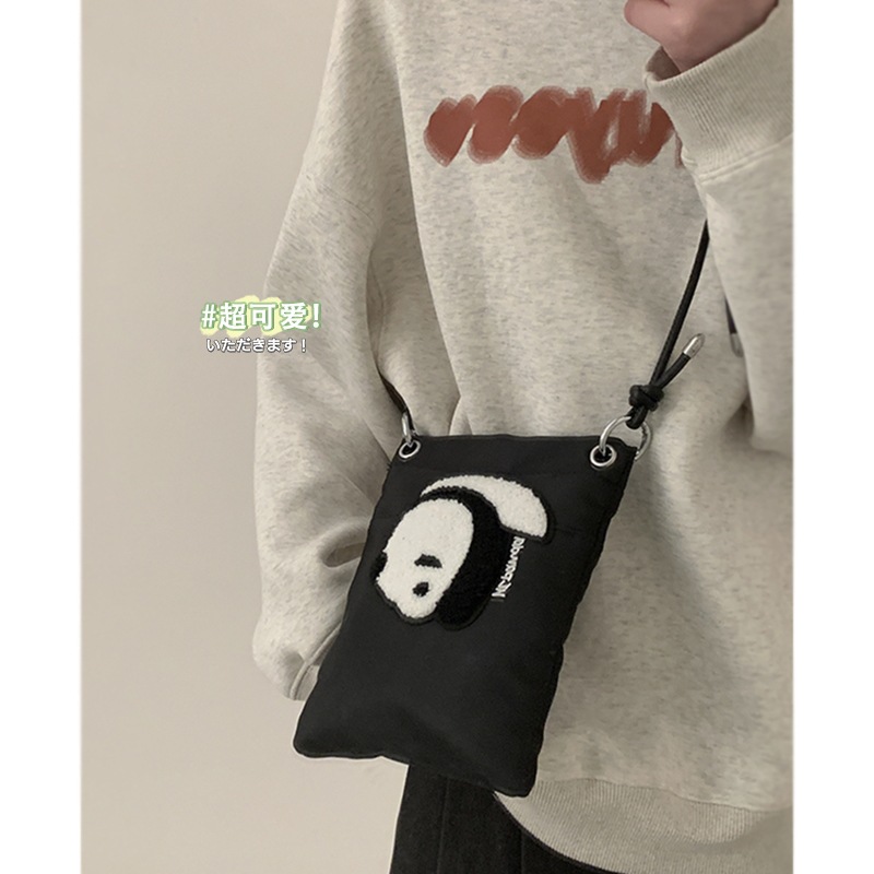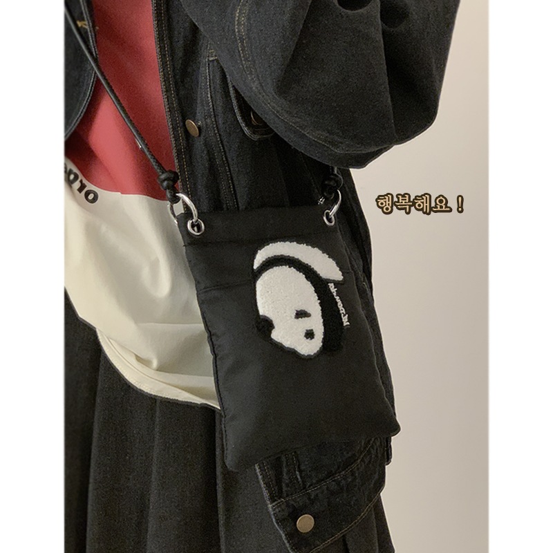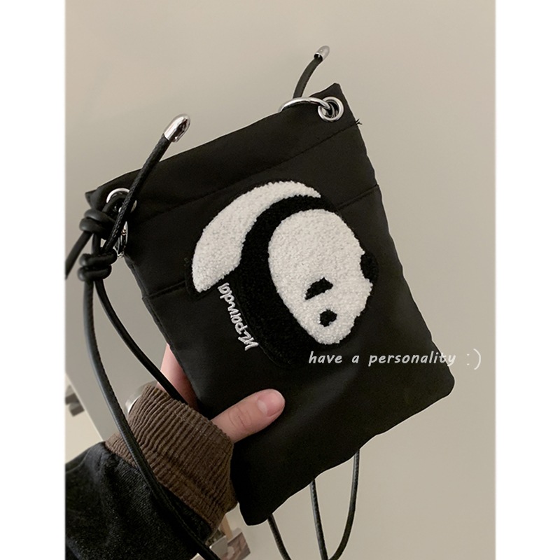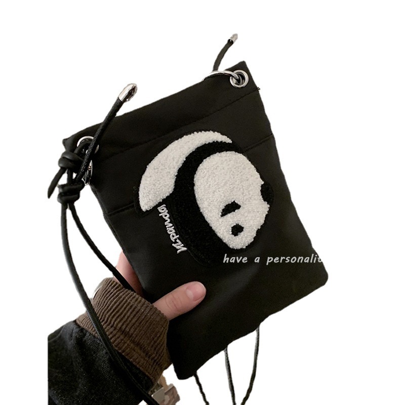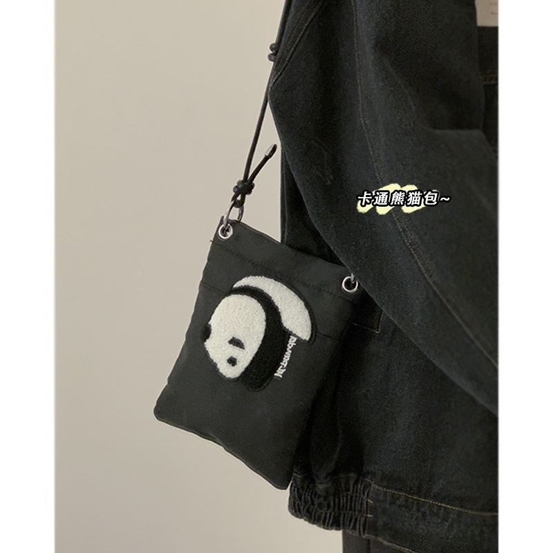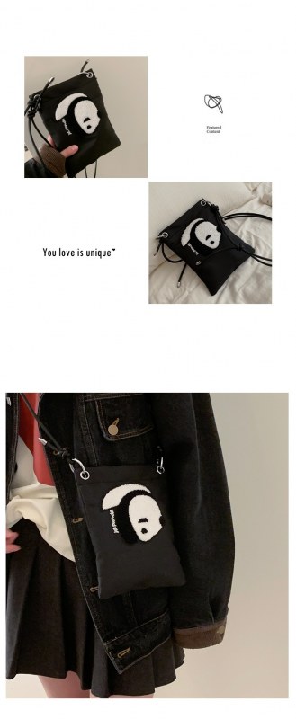 • ナイロンキャンバスバッグ女性のための 2022 新しいトレンディな漫画の携帯電話バッグ多用途インクロスボディバッグパンダ小銭入れ