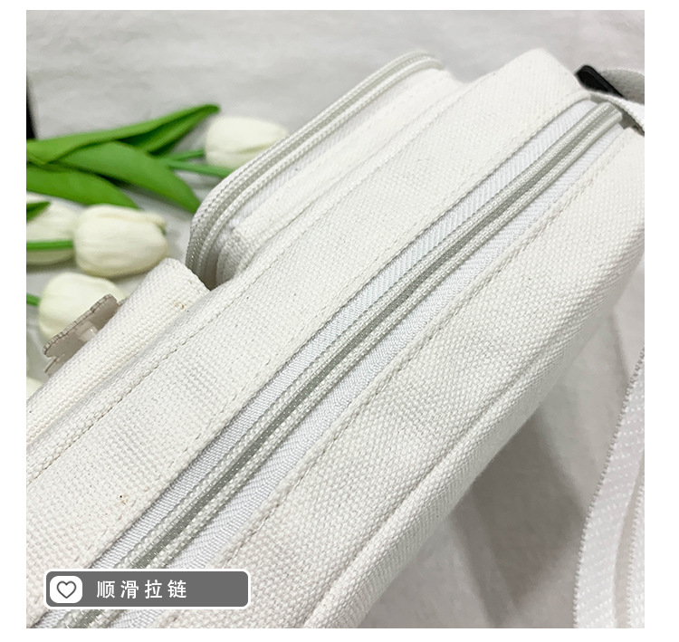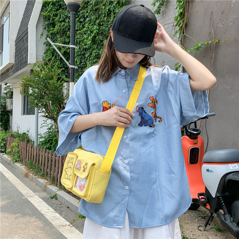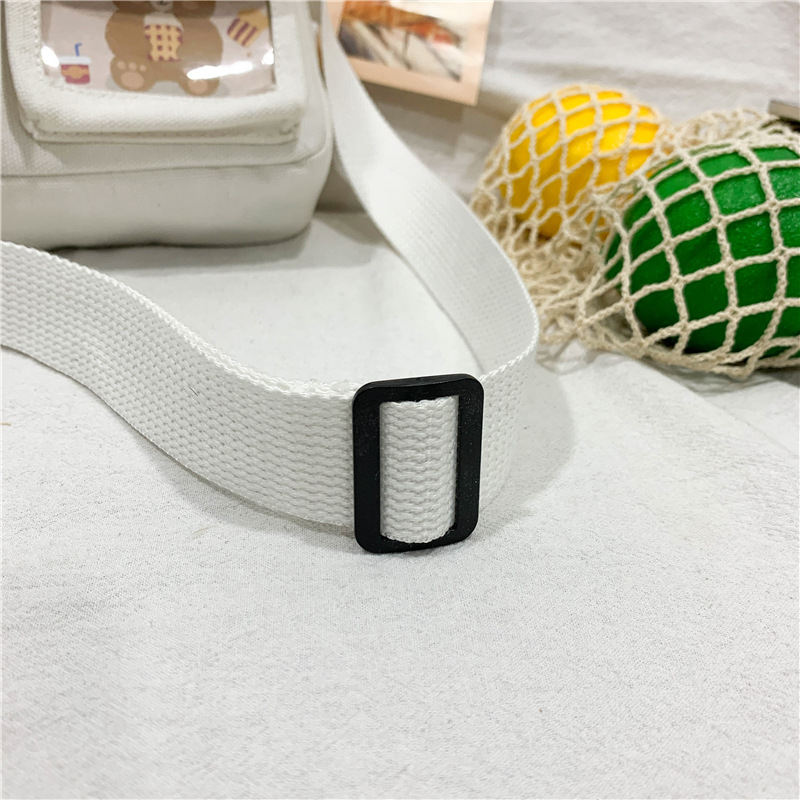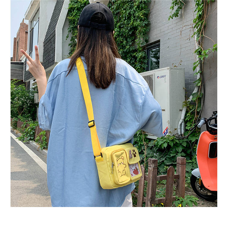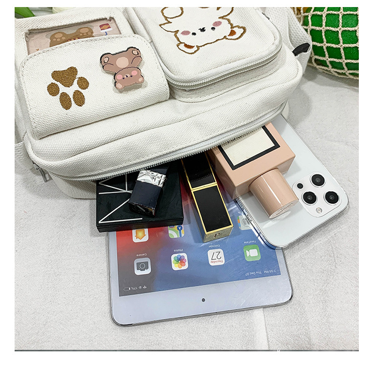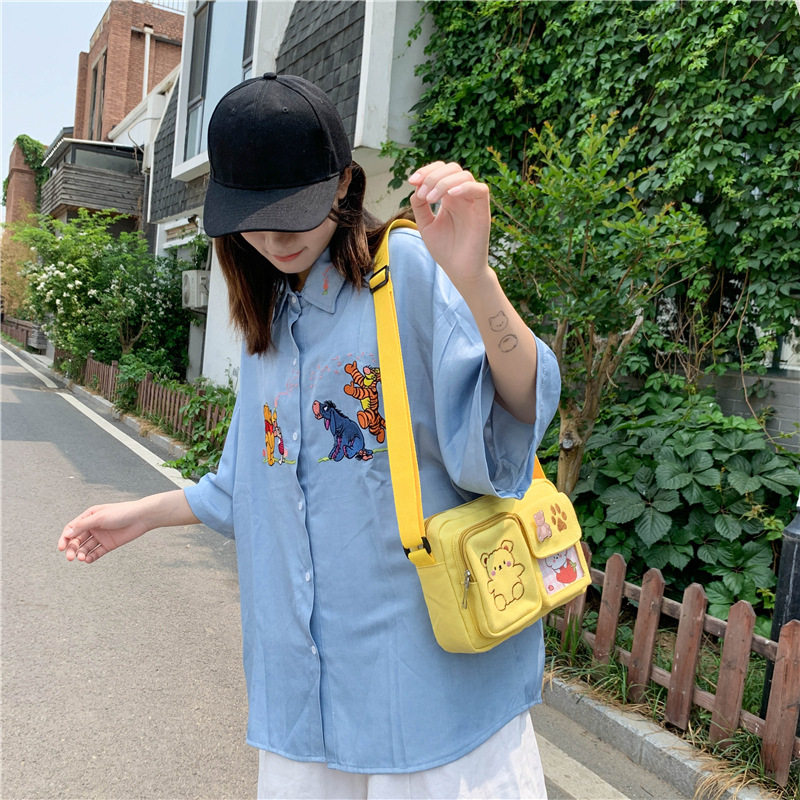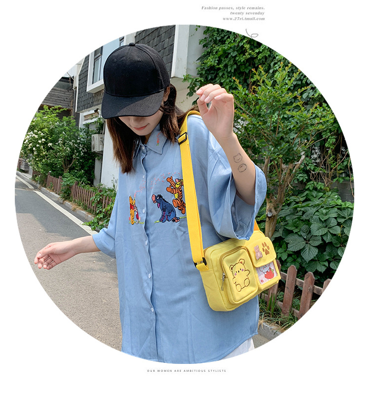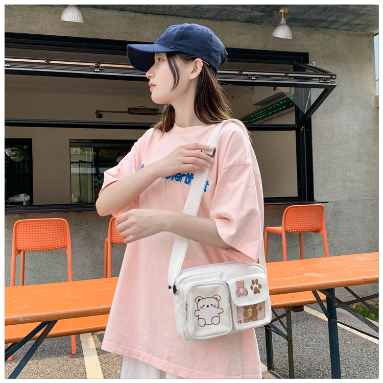 • キャンバススモールバッグ和風インヴィンテージセンスかわいいと面白い個性刺繍クマ学生透明クロスボディバッグ