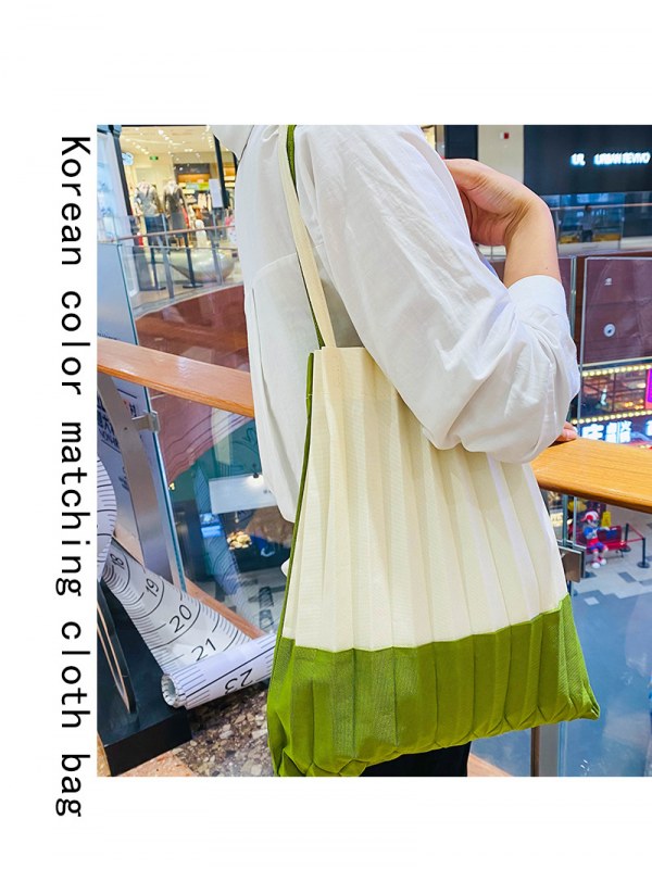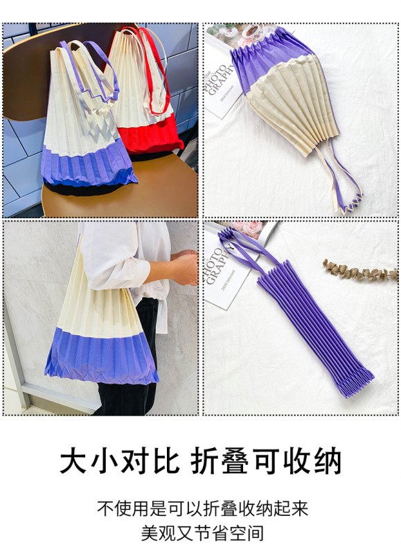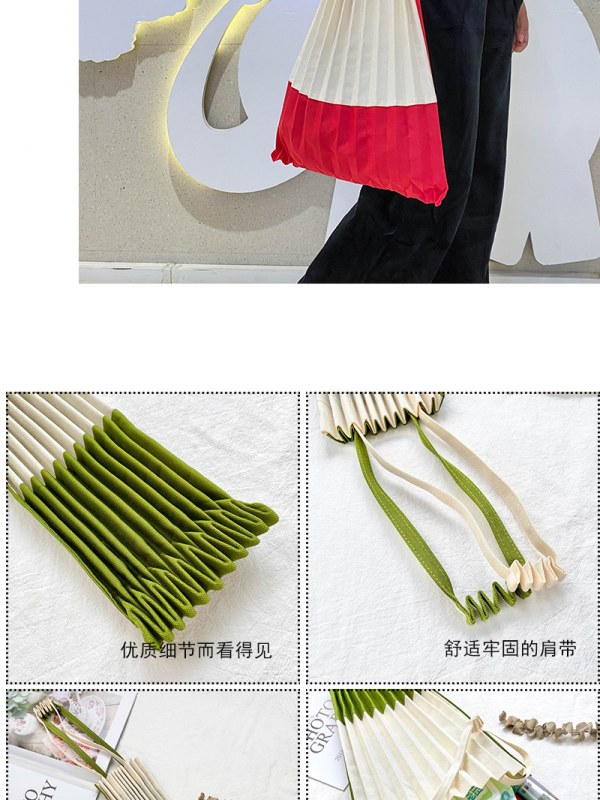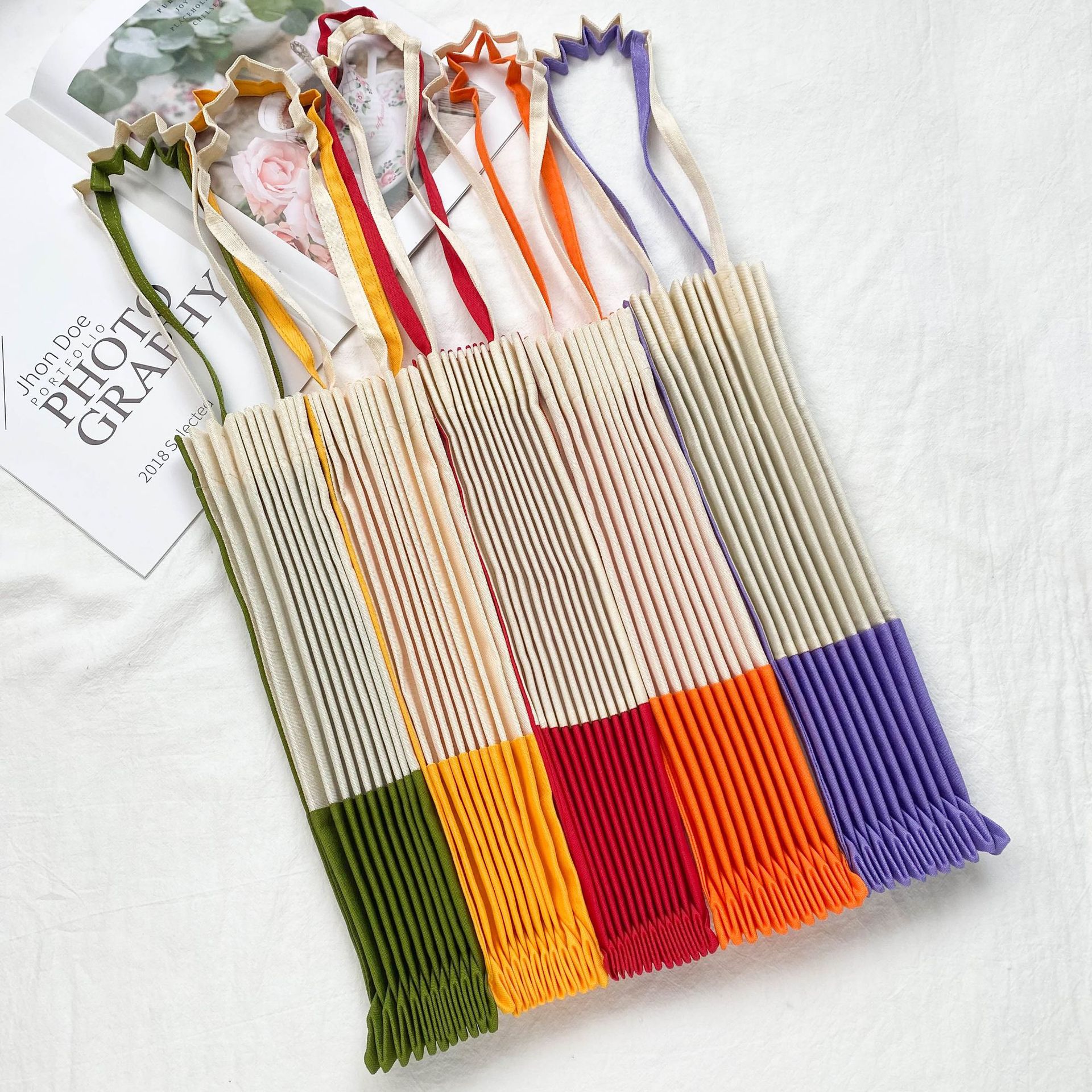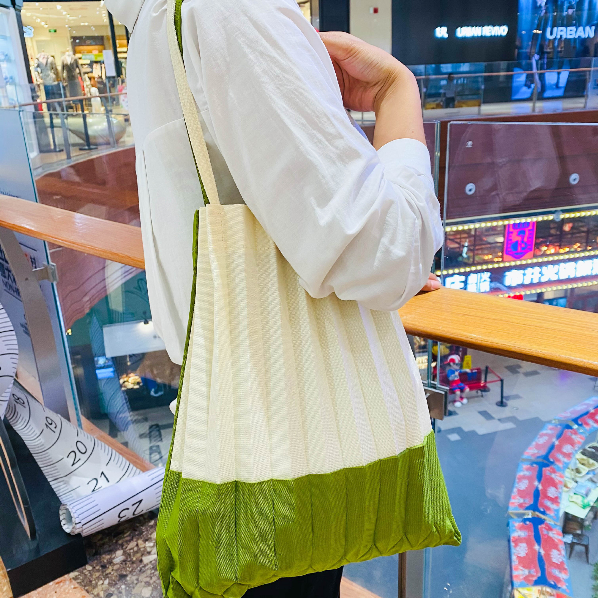 • 日本と韓国のプリーツバッグハンドバッグプリーツキャンバスショッピングバッグニッチデザイン多用途折りたたみ扇形アコーディオンバッグ工場
