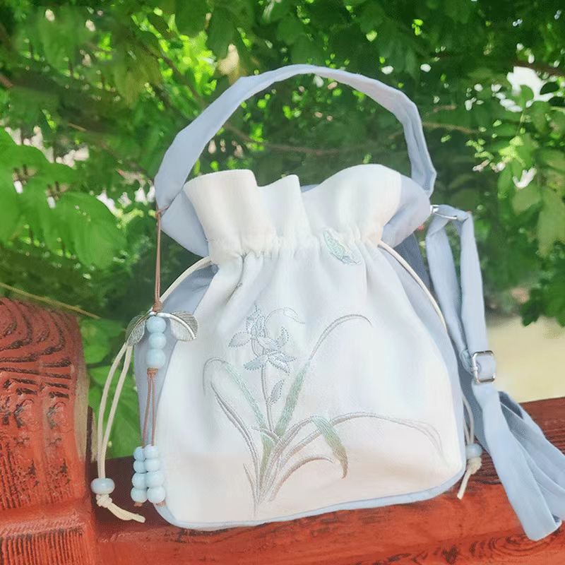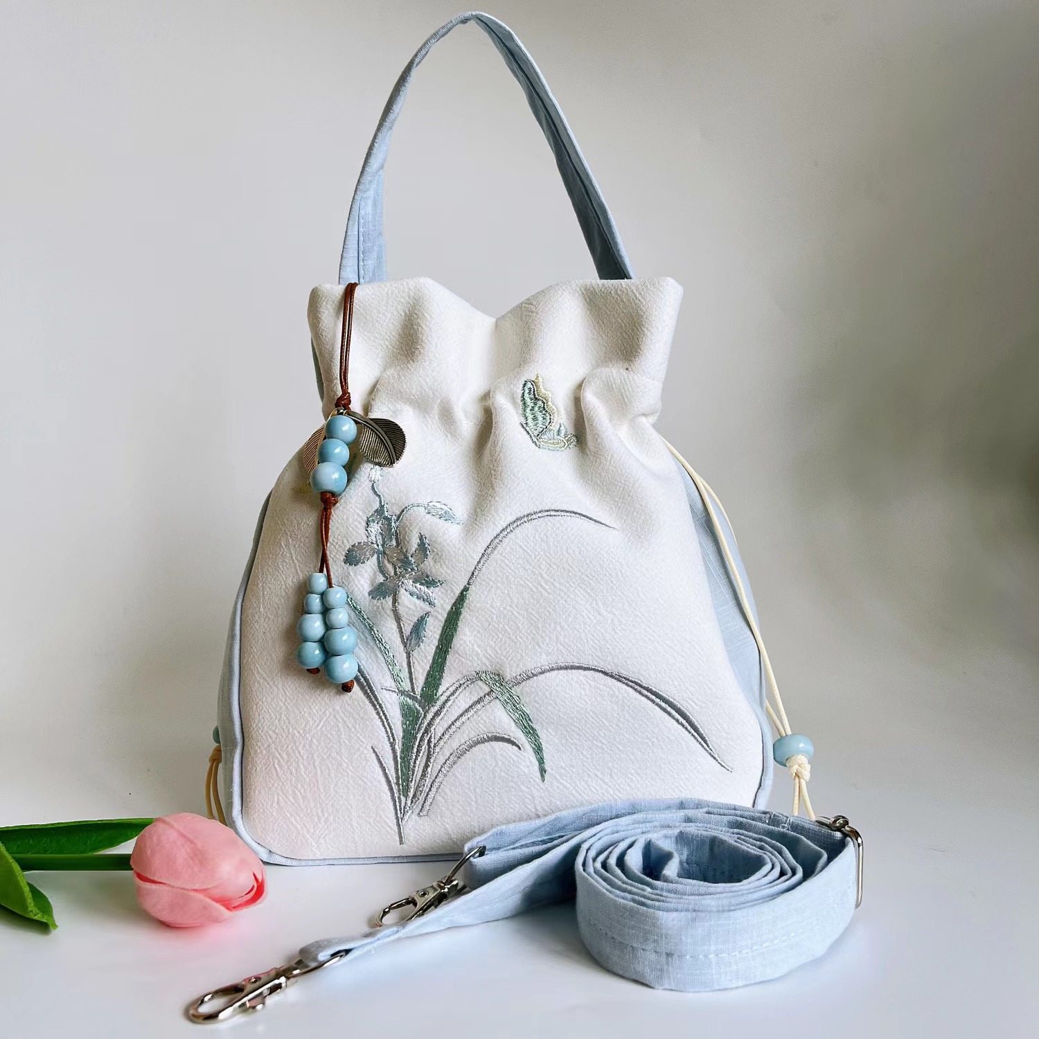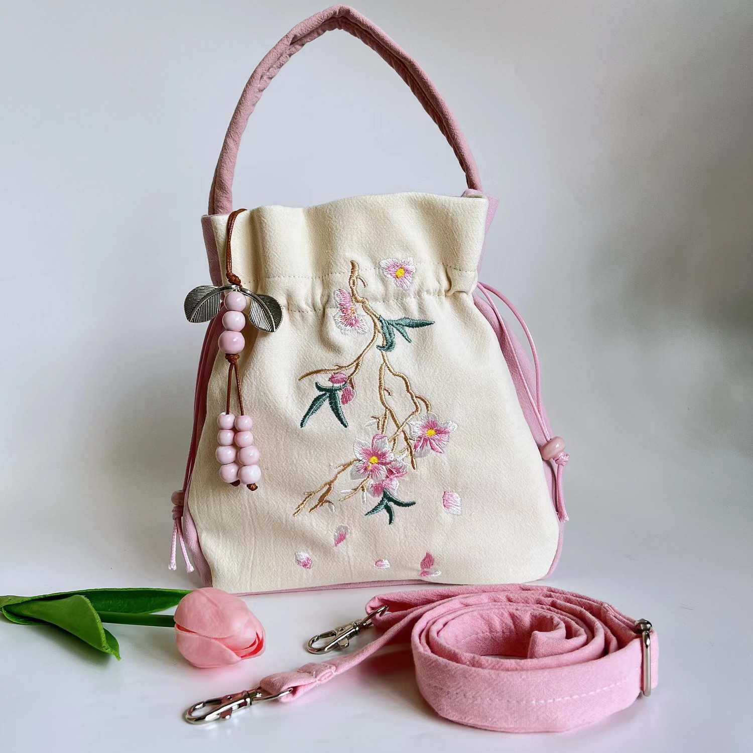 • 手刺繍キャンバスレディースバッグ、古代スタイルのハンドバッグ、漢服バッグ、タッセルバッグ、クロスボディバッグ、エスニックスタイルの女性用刺繍バッグ