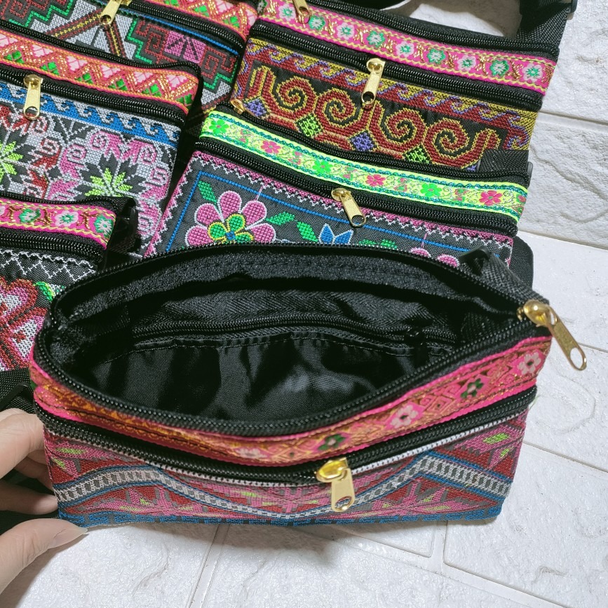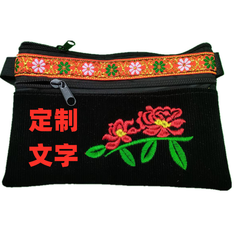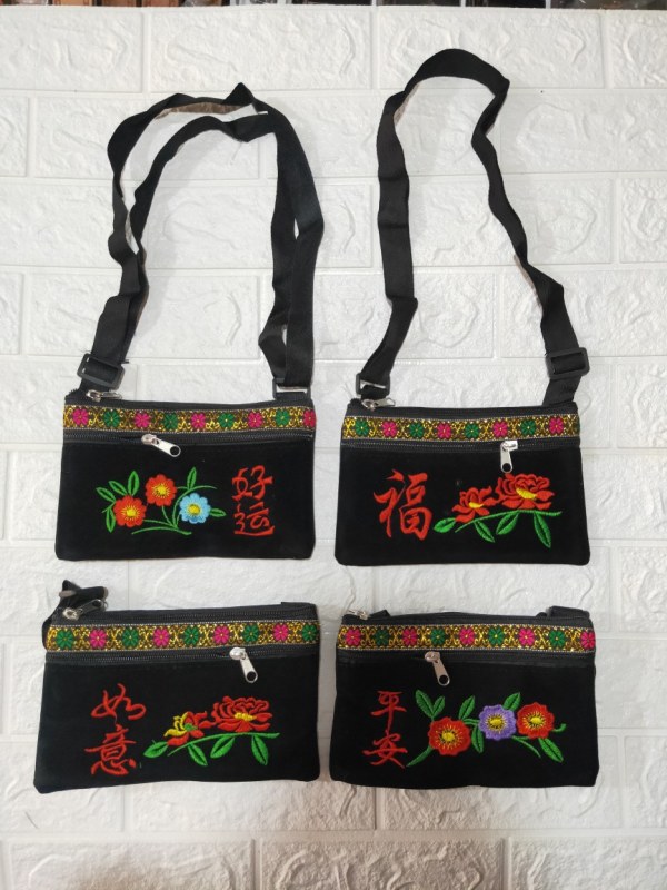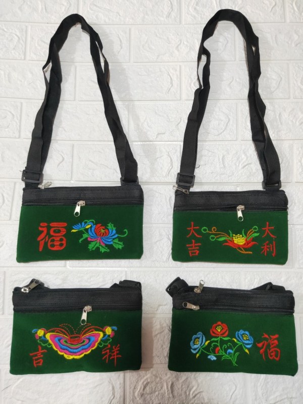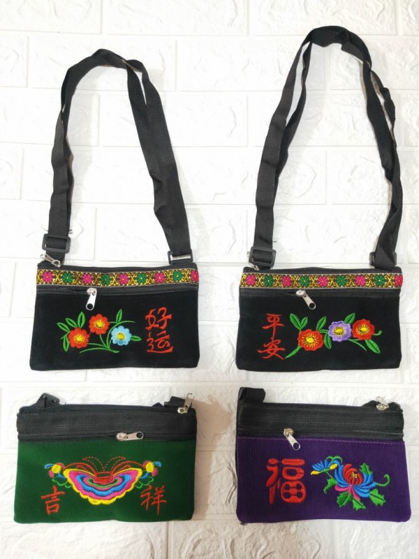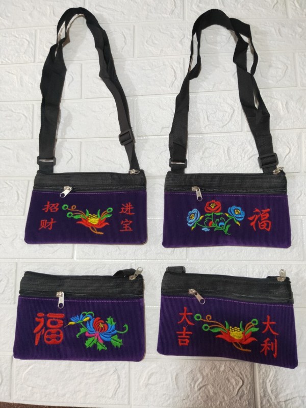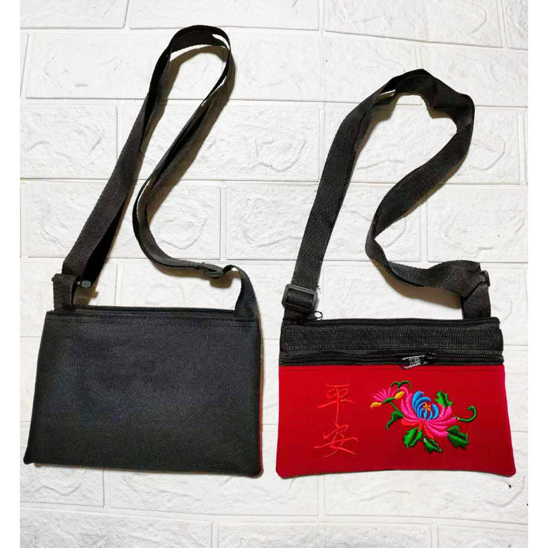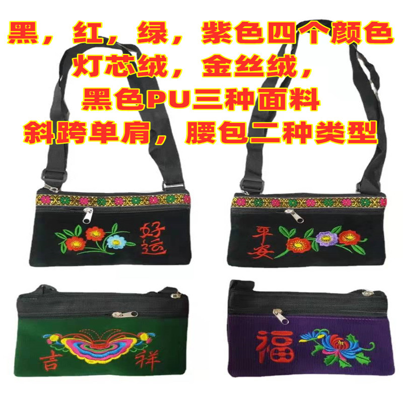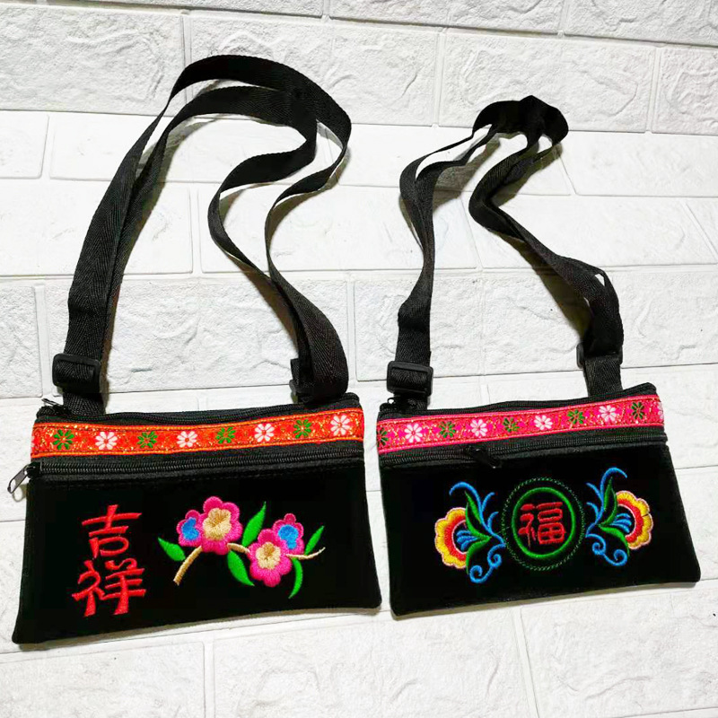 • 高齢者向けの湖南省の刺繍入りショルダークロスボディバッグ、観光地の露店で走る女性向けの小さな正方形の刺繍入りウエストバッグ