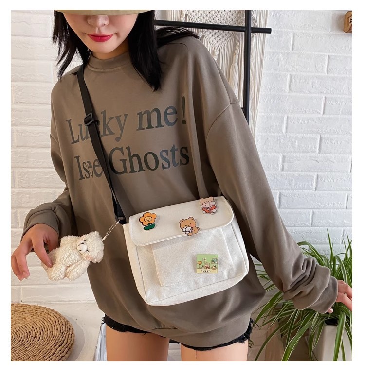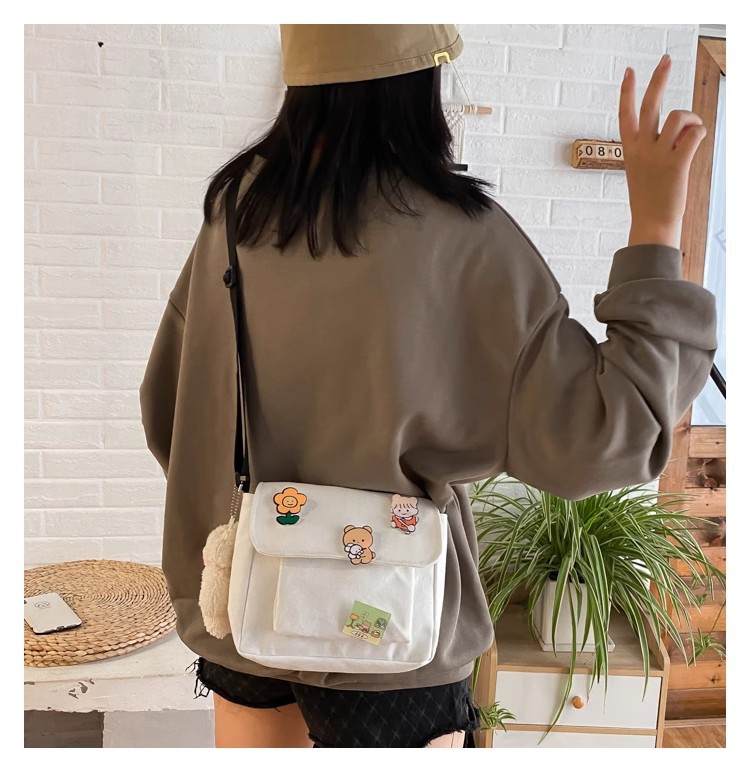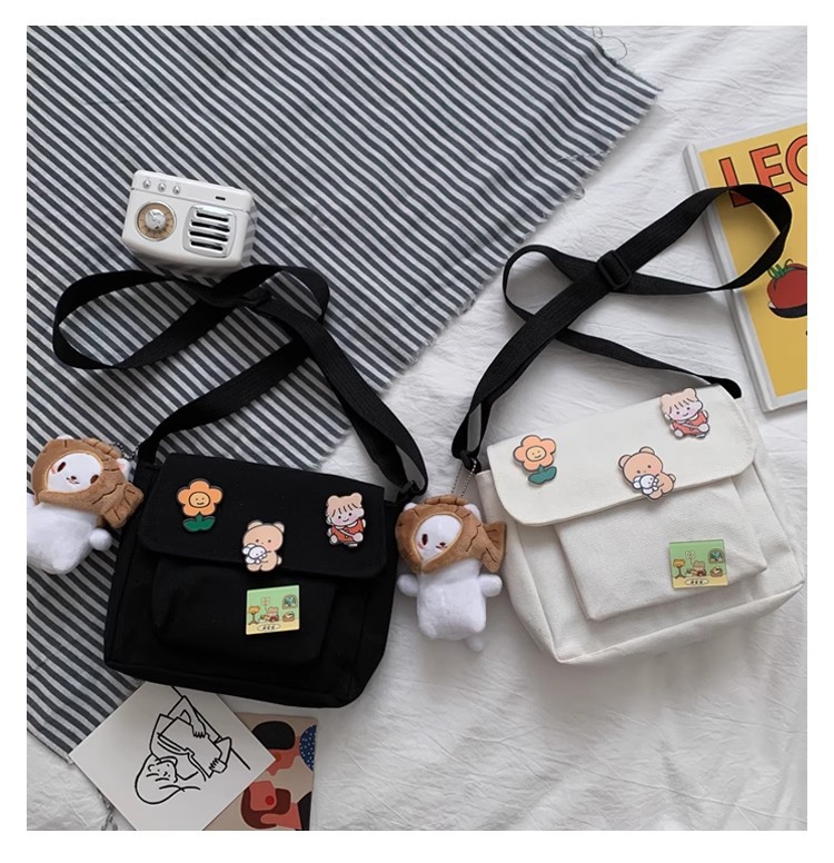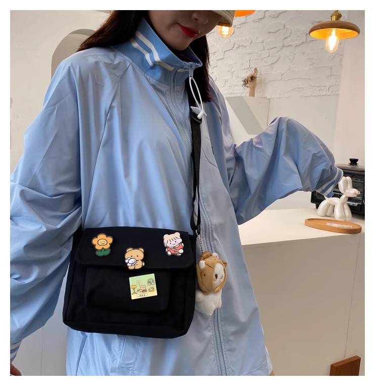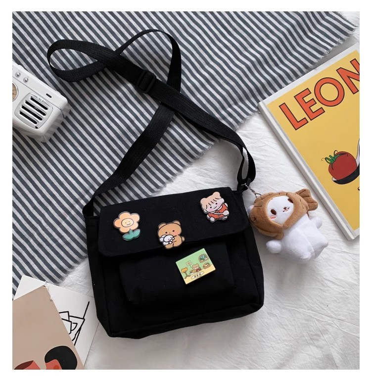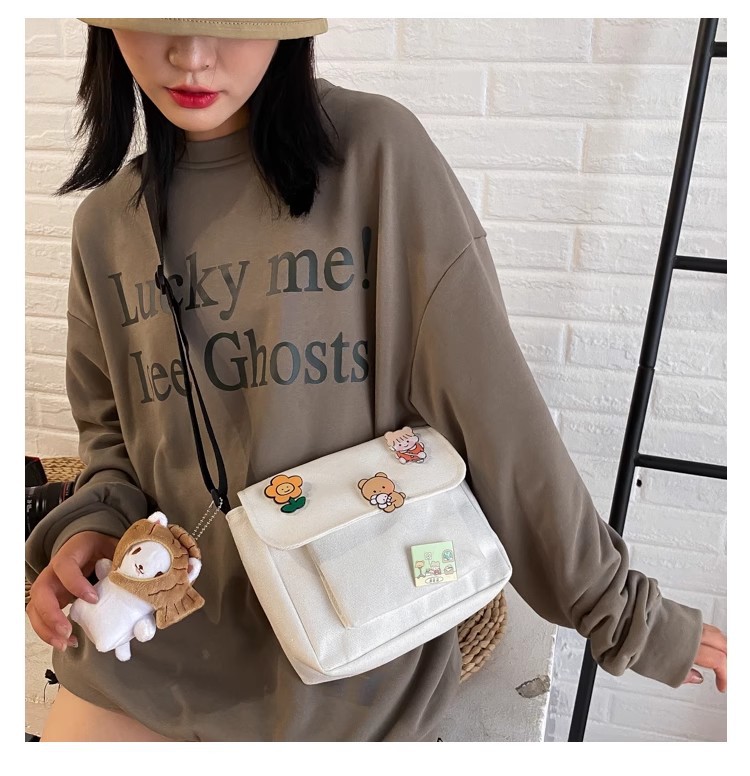 • インかわいいキャンバス小さなバッグ女性のための 2023 新しい和風原宿クロスボディバッグ多用途学生ガールショルダーバッグ