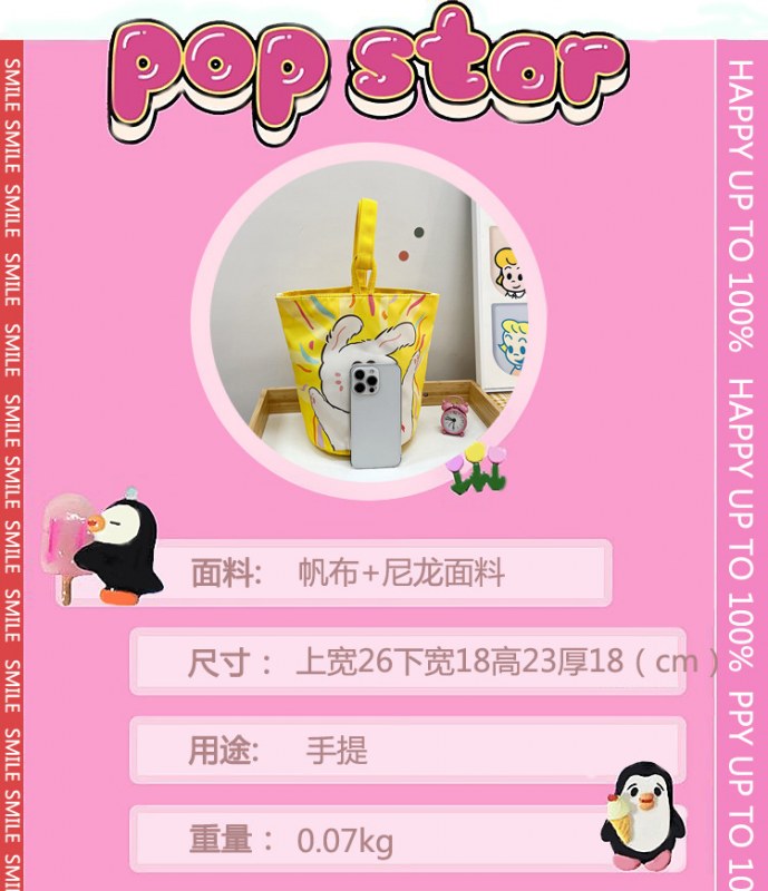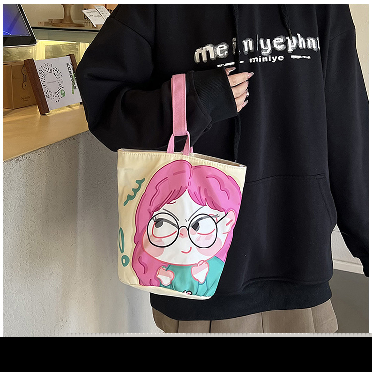 • オリジナル インス イラスト ポータブル バケツバッグ ハンドバッグ 手持ち お出かけ おやつ キャンバスバッグ かわいい お出かけ 小さめバッグ