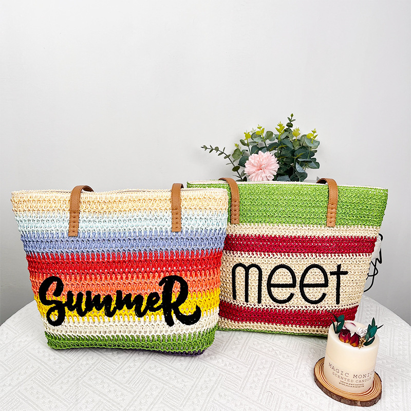 • 女性のための織バッグ 2024 新しいスタイル海辺の休暇ショルダー脇の下バッグ大容量トートバッグ通勤ストローバッグ