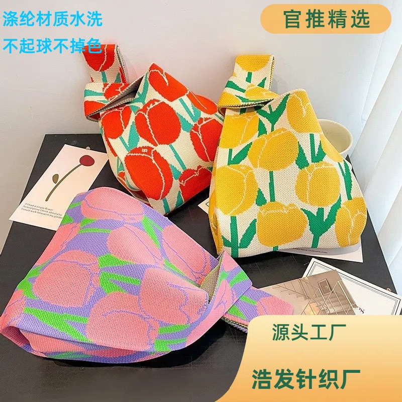 • おしゃれでシンプルな小さなスクエアバッグ大容量ニットバッグレディースハンドバッグニッチ手持ちトートバッグ収納バッグ