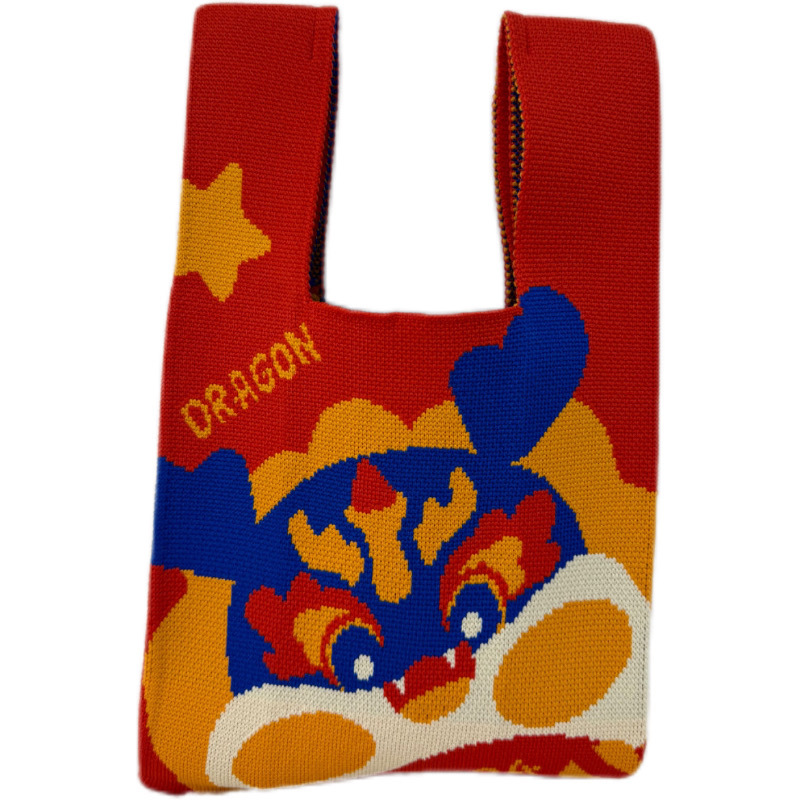 • ニットハンドバッグ 2024 ドラゴン年新しいギフトバッグ年次パーティーキャンディー漫画ランチボックス結婚式お祝いお土産ギフトバッグ