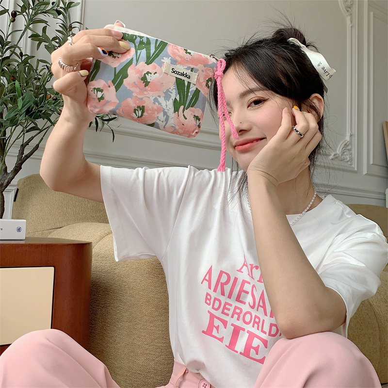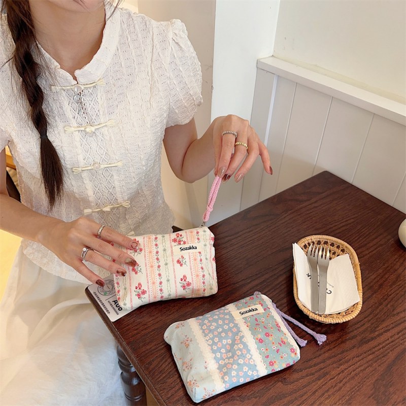• 日本の対照的な色のロープ口紅バッグ女性の化粧品バッグポータブル小銭入れ洗浄収納袋