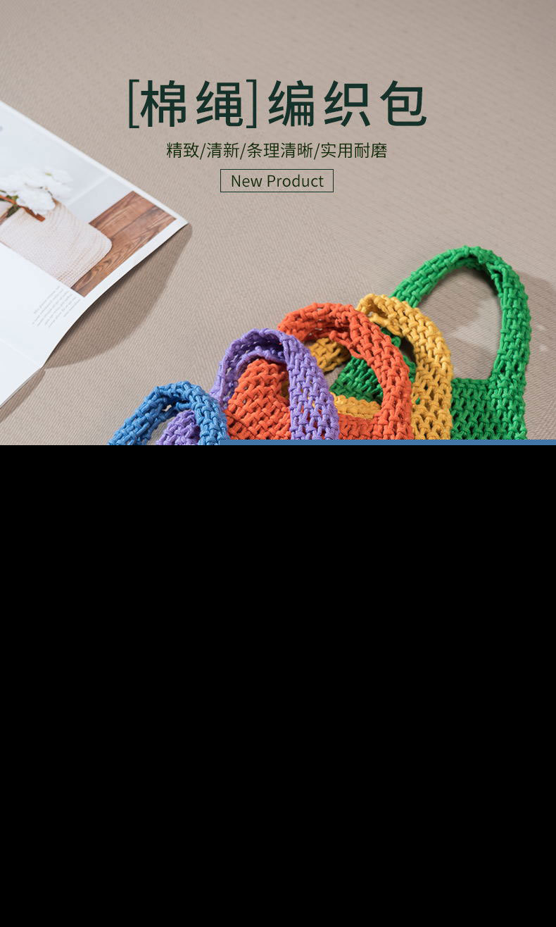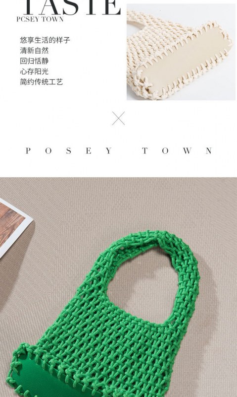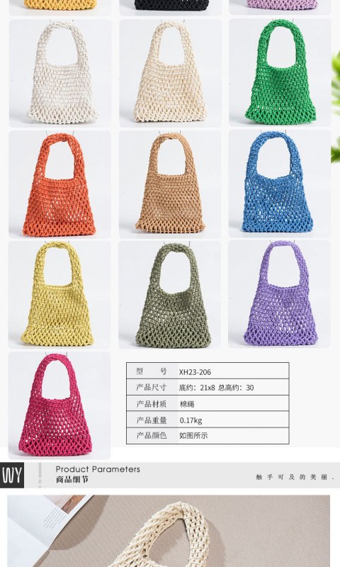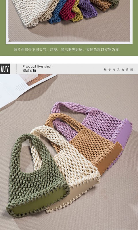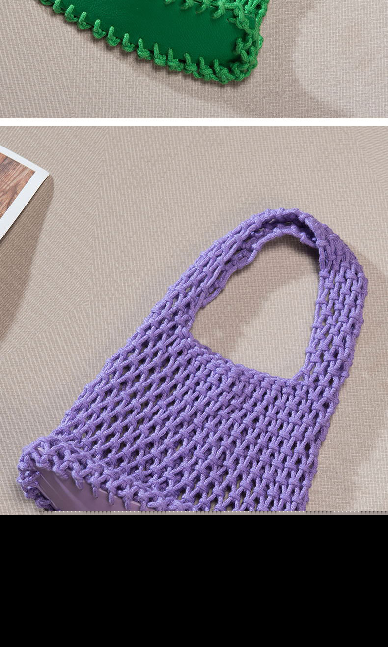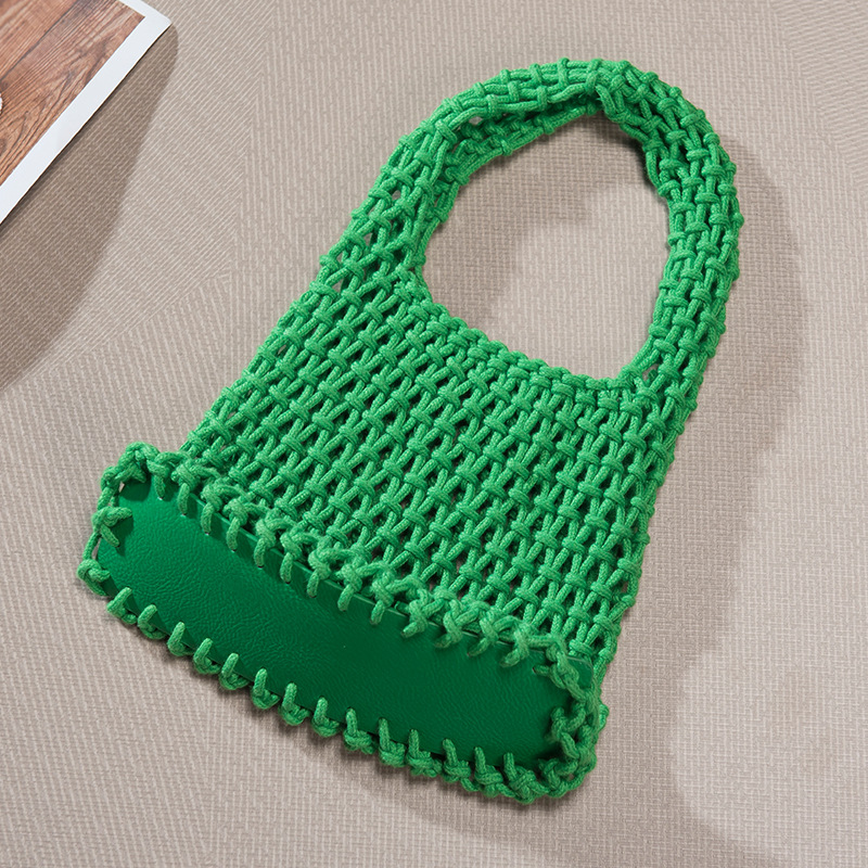 • キャンディーカラーの綿ロープハンドバッグ手織りバッグ女性の中空メッシュバッグビーチ休暇バケツバッグリストバッグ