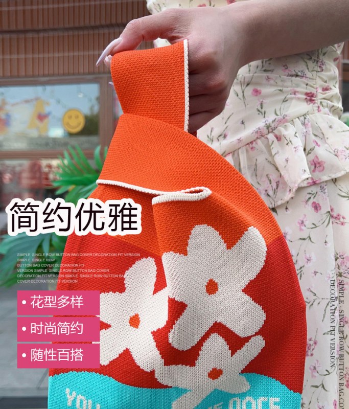 • 漫画の花ニットバッグ女性のハンドバッグトートバッグ織バッグ多目的バッグ女性のバッグベストバッグお土産バッグ