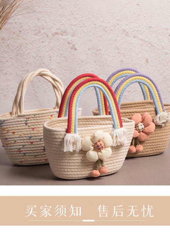 • 虹織りバッグ、綿ロープ、レディースバッグ、学生ハンドバッグ、結婚式ハンドバッグ、ギフトバッグ、ビーチバッグ