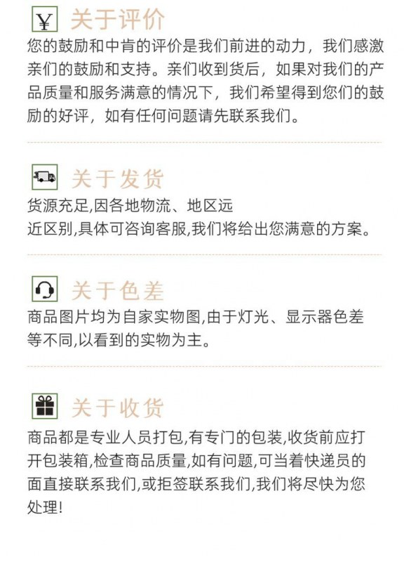 弊社が取り扱っている商品は、自社の海外工場から直送しています。ご入金が確認でき次第に商品を発送いたします。ご注文殺到時や、ご注文数量、種類が多い場合は、発送が遅れる可能性がございます、ご了承ください。ご注文商品の中に在庫がない商品につき、その商品のみキャンセルさせていただき、在庫のある商品のみをまとめて発送させていただきます。また、ご注文後の商品追加や、内容変更、同梱などはお受付しておりません。