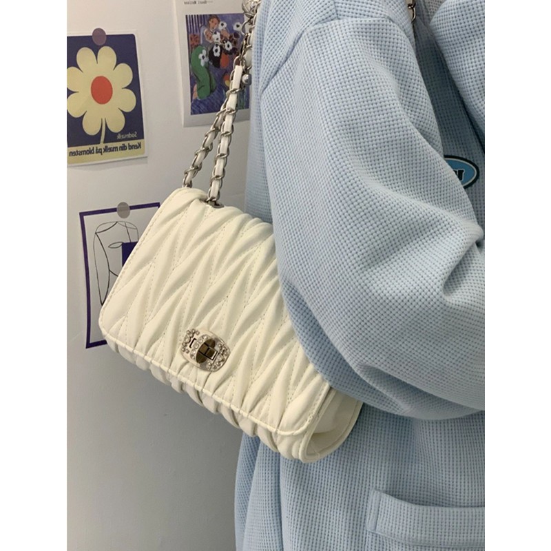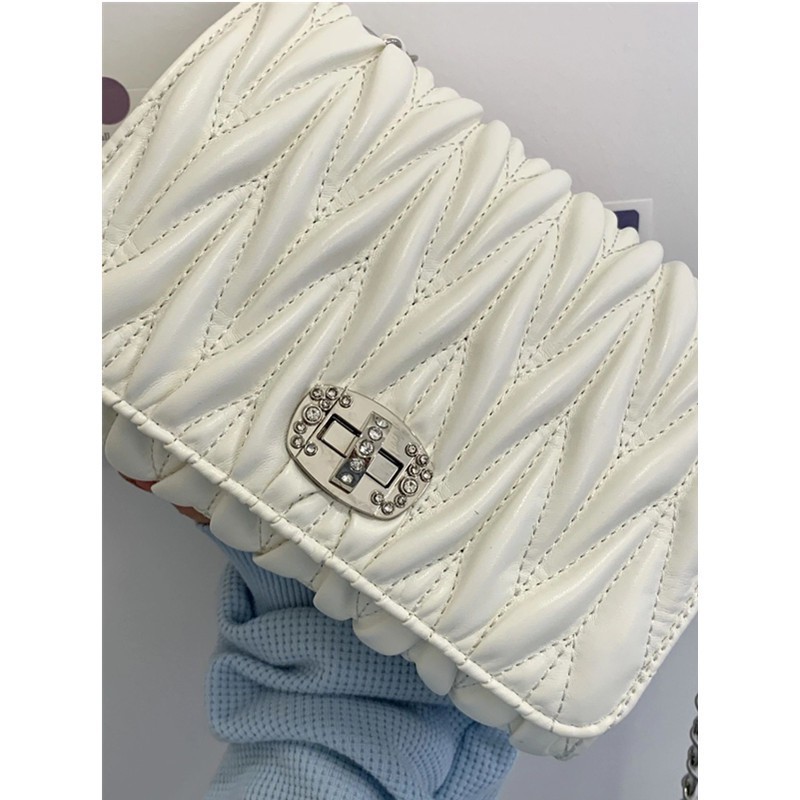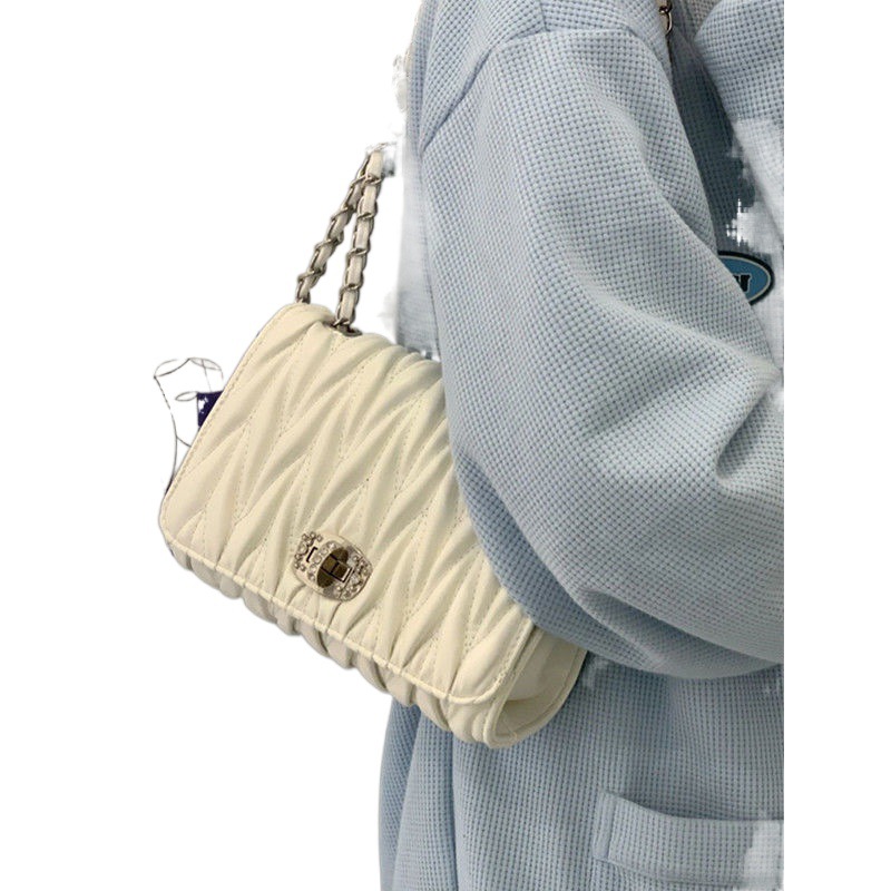 • 女性用バッグ 2024 プリーツスモールスクエアバッグ春と夏のファッションレディースバッグニッチデザイン多目的シングルショルダーチェーン斜めクロスバッグトレンド