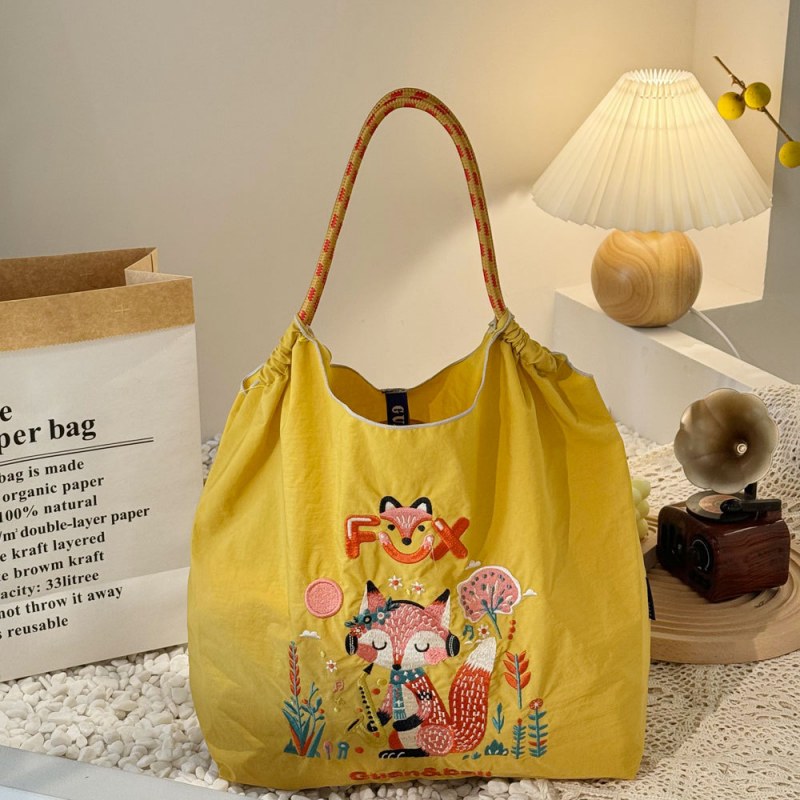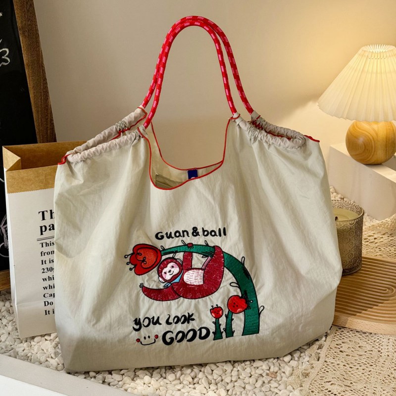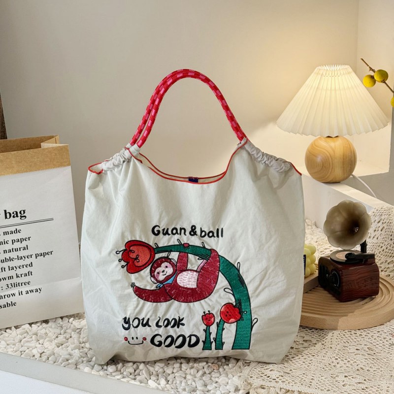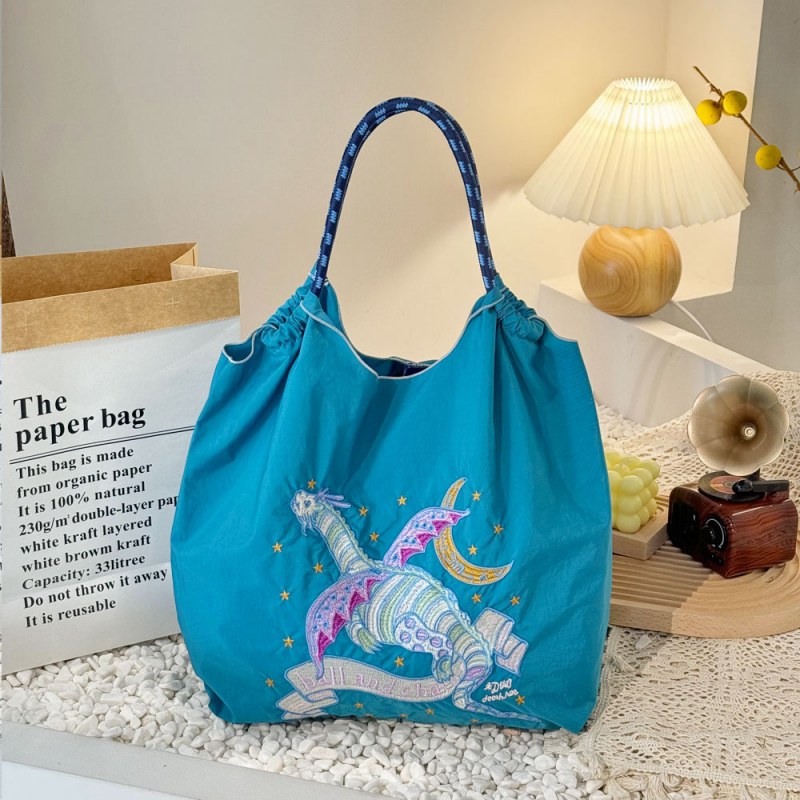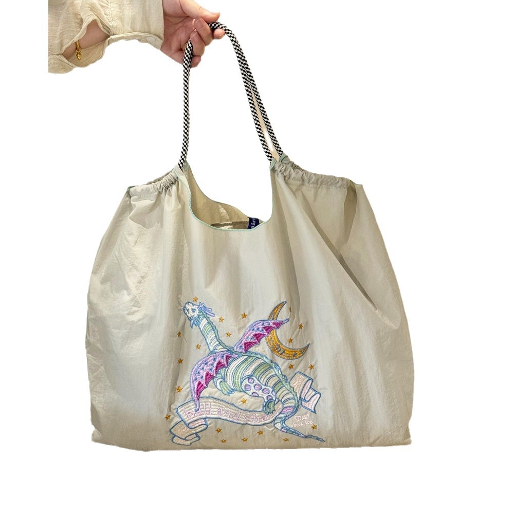 • 環境に優しいバッグ、絶妙な刺繍入りナイロンショッピングバッグ、手持ちの女性用ショルダーバッグ
