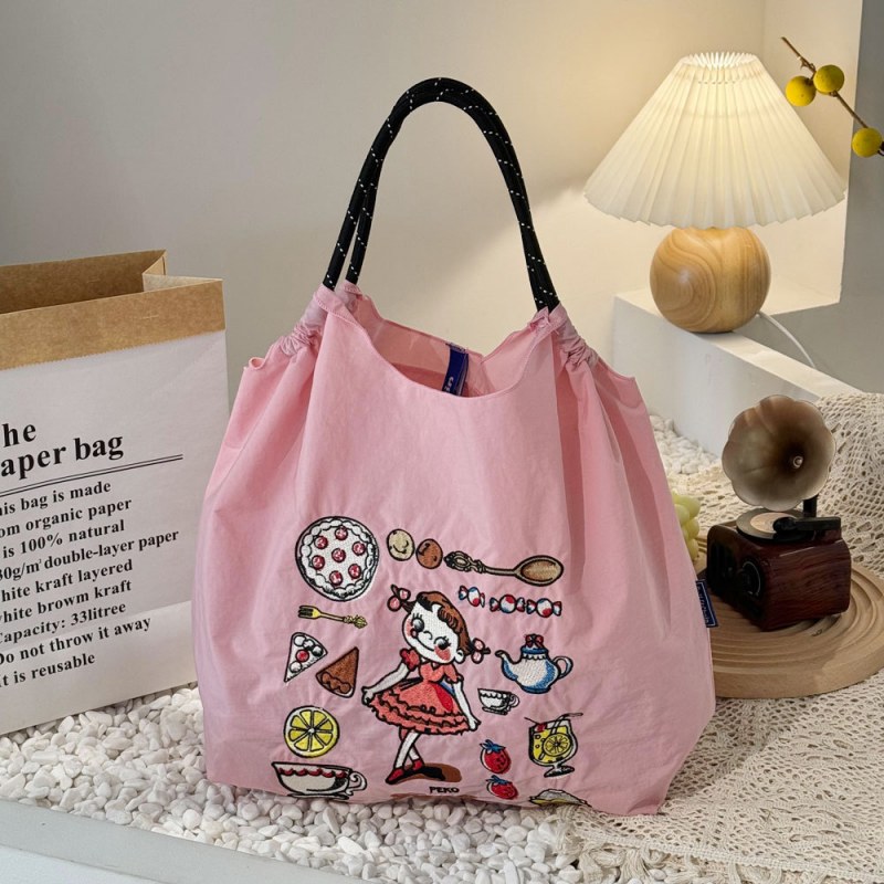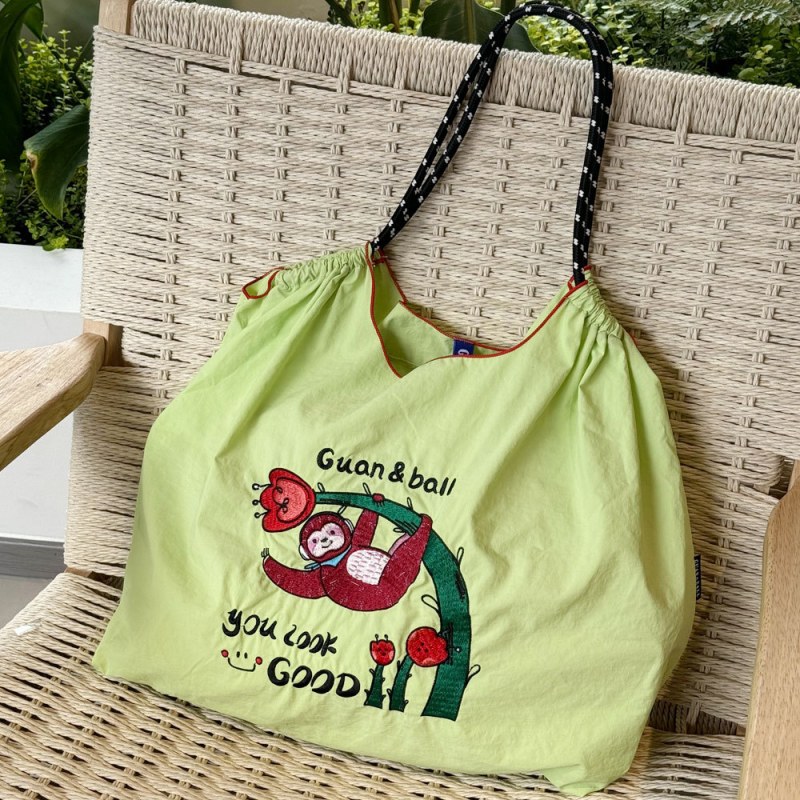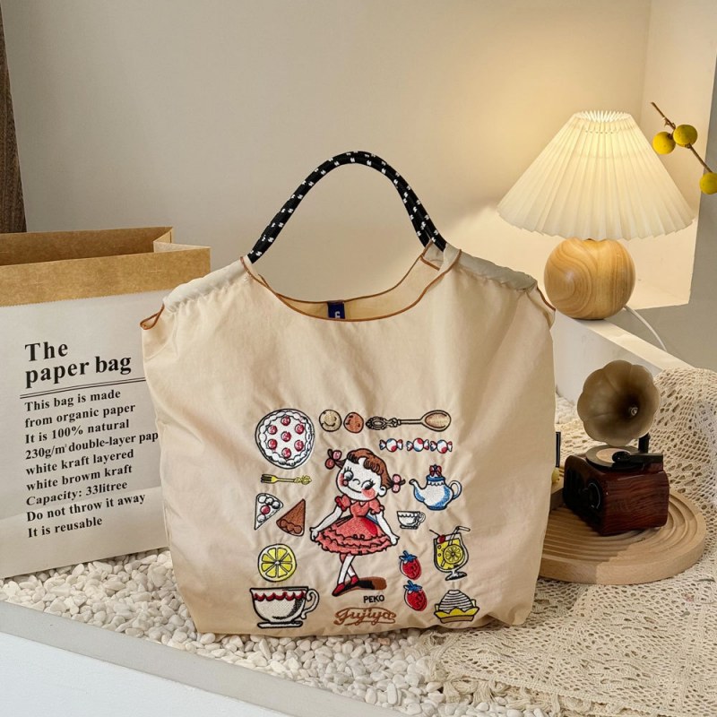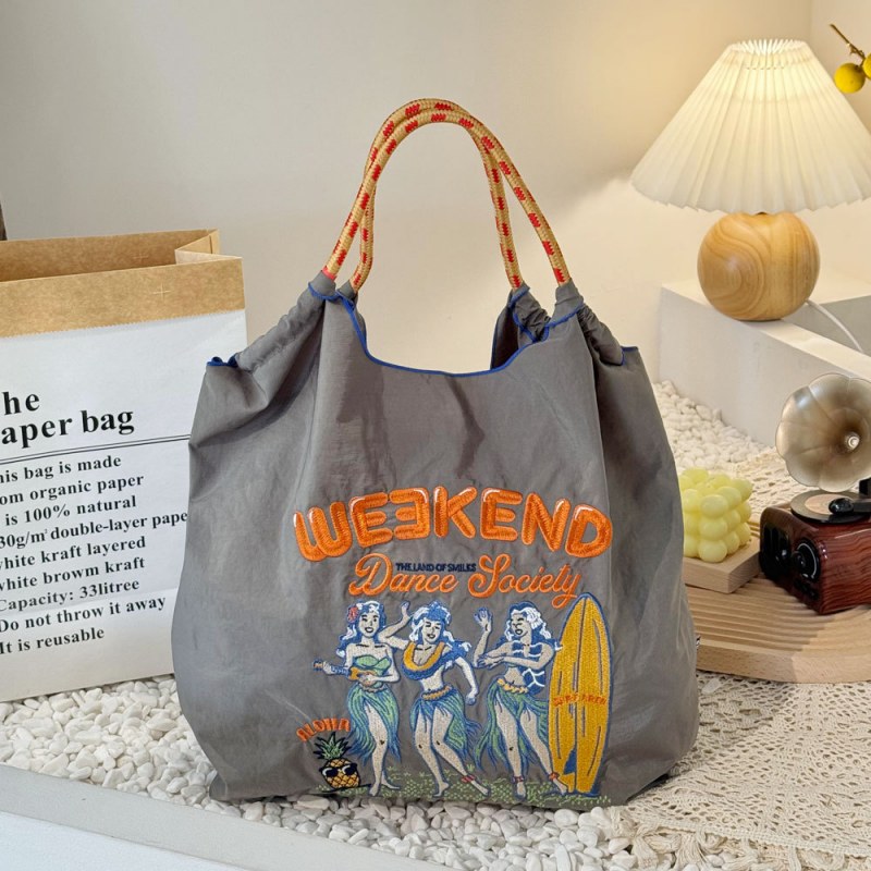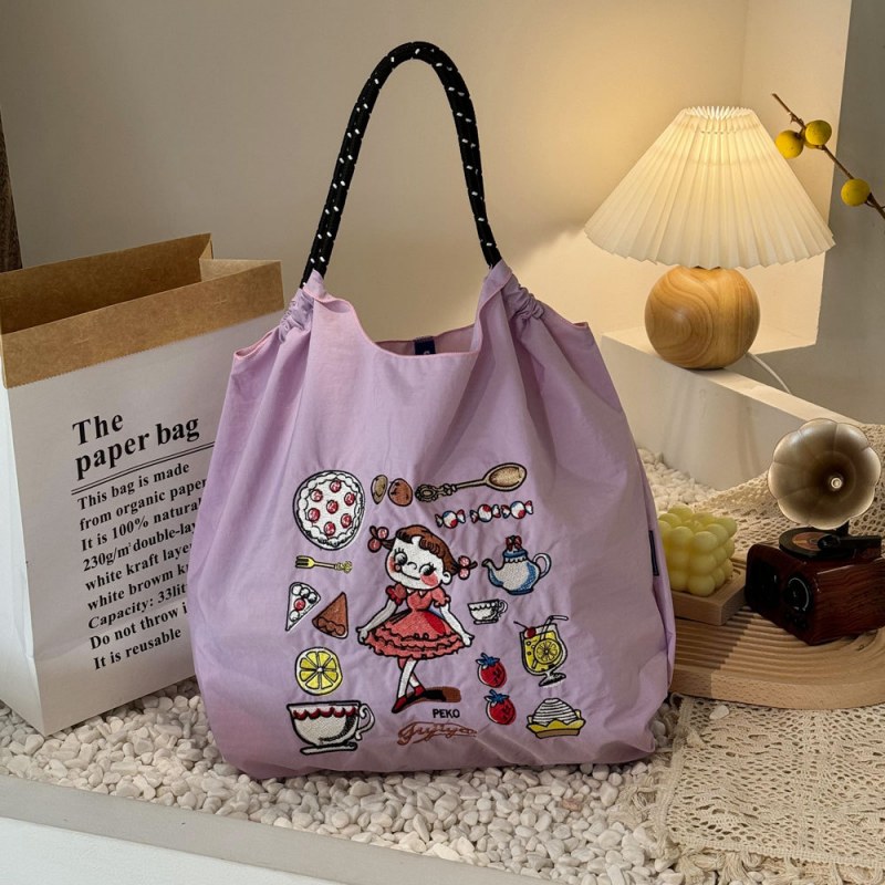• 環境に優しいバッグ、絶妙な刺繍入りナイロンショッピングバッグ、手持ちの女性用ショルダーバッグ