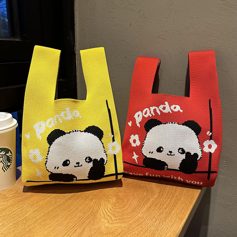 • ニットベストバッグ夏の新しいかわいいパンダギフトバッグベストバッグトレンディなハンドバッグ多用途ショルダーバッグ