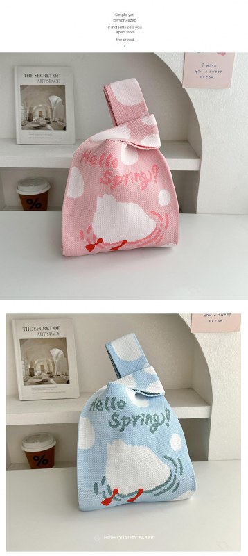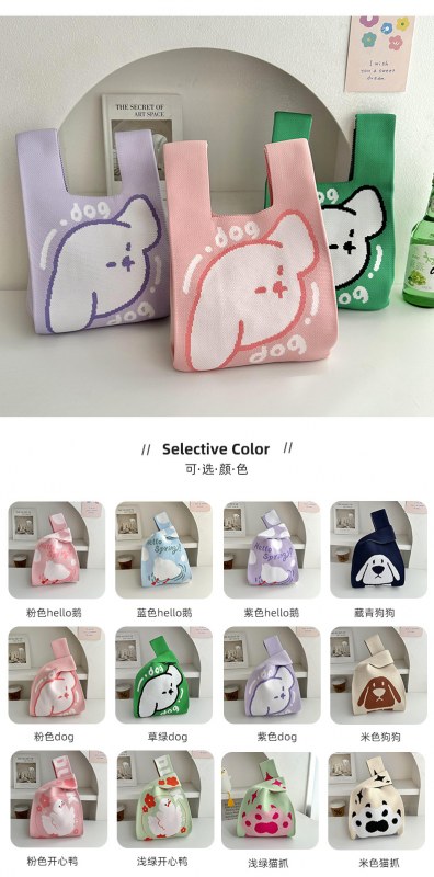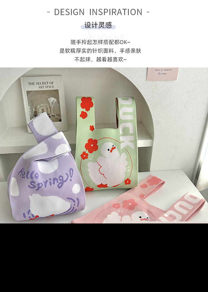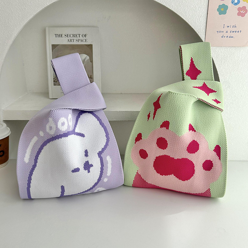 • 女性のためのニットバッグ漫画パターン織りバッグハンドバッグ大容量トートバッグリストバッグ