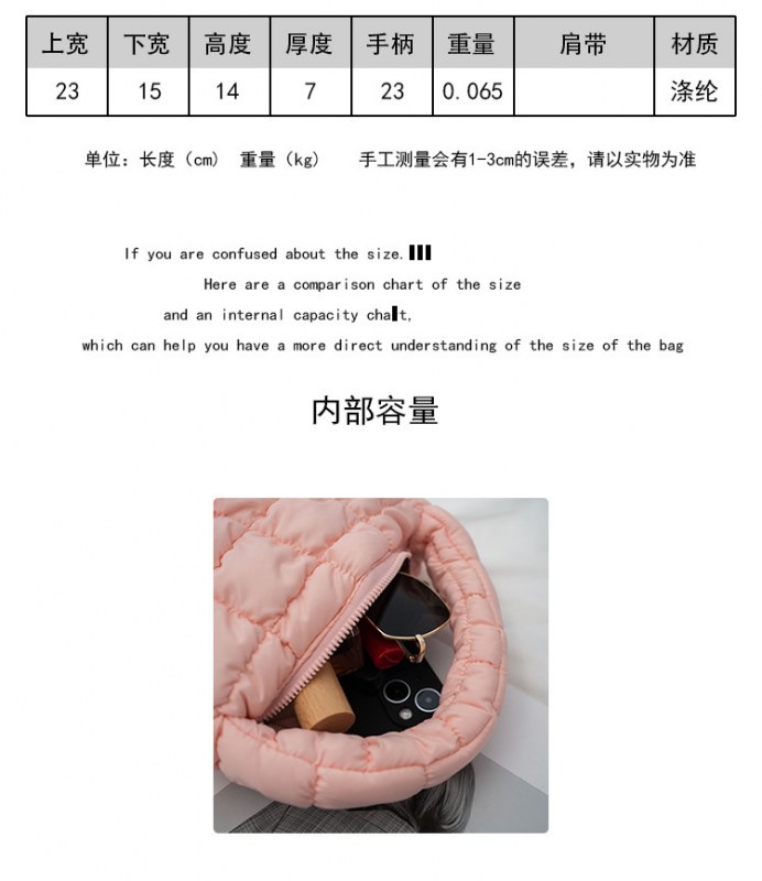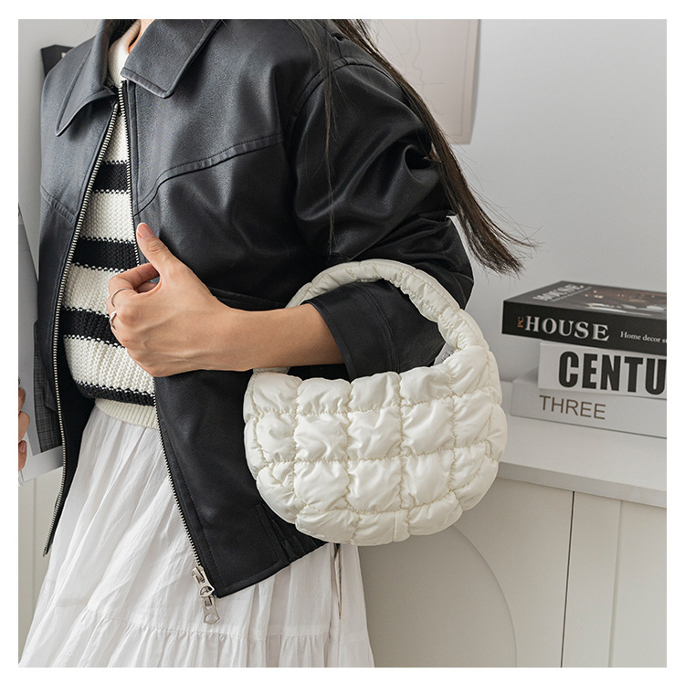 • 女性のためのバッグ 2024 新ニッチクラウドバッグ韓国スタイルプリーツバブルハンドバッグダウンコットンジャケット団子ハンドバッグ